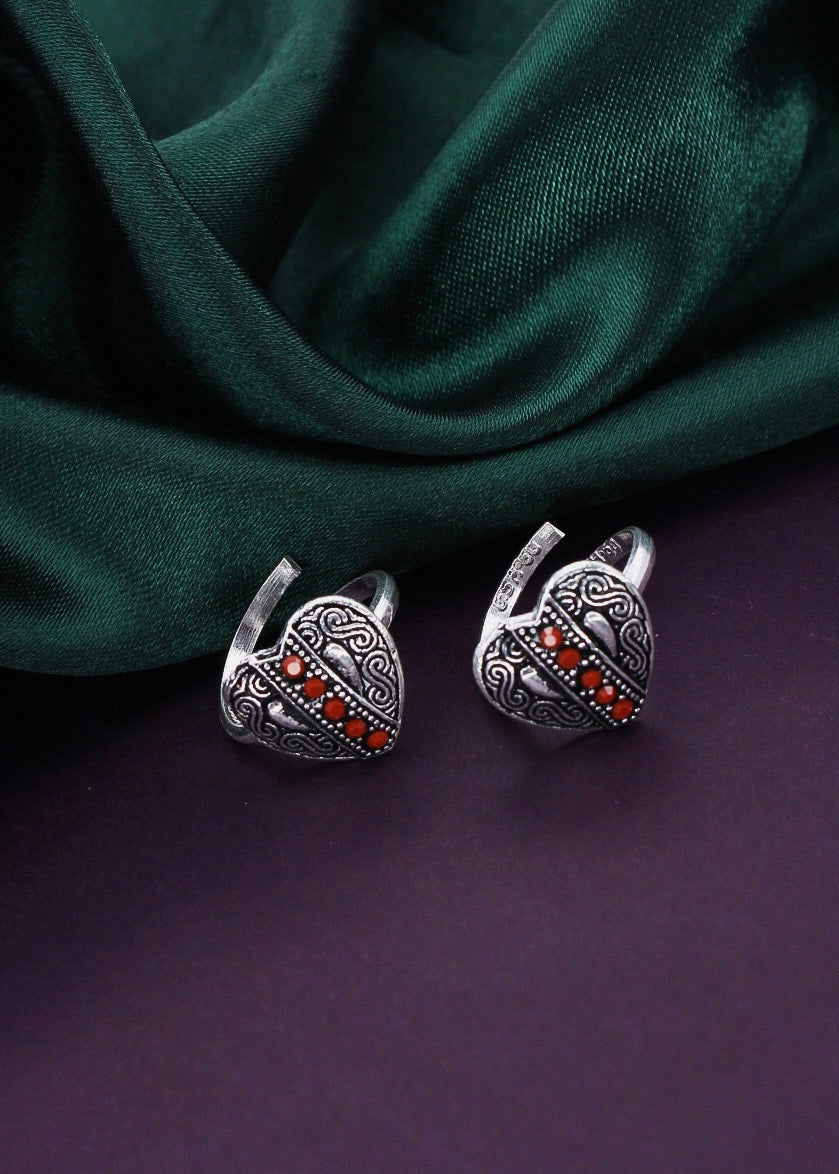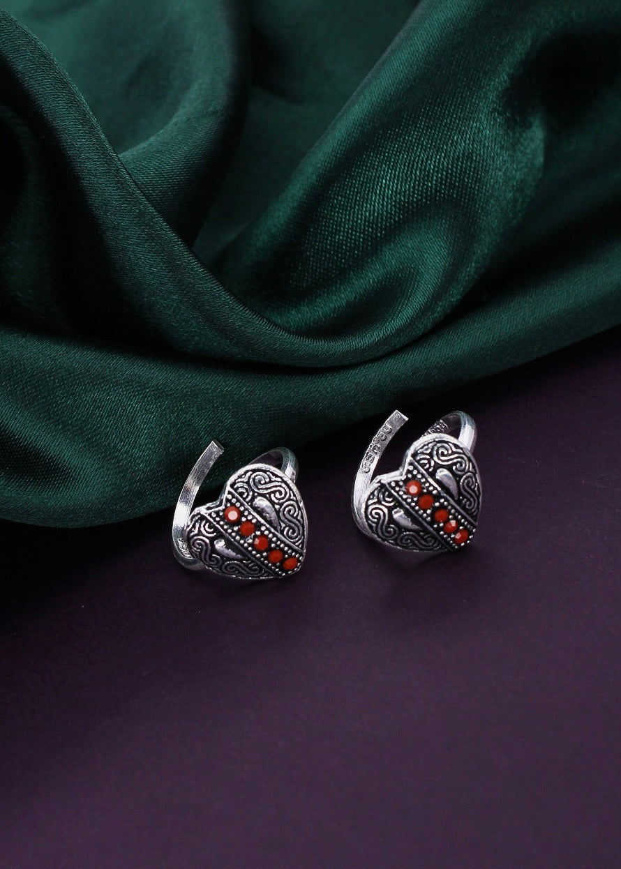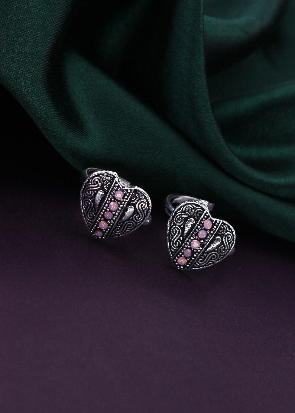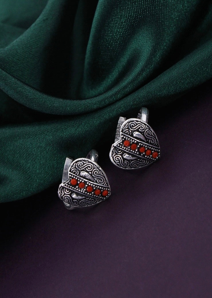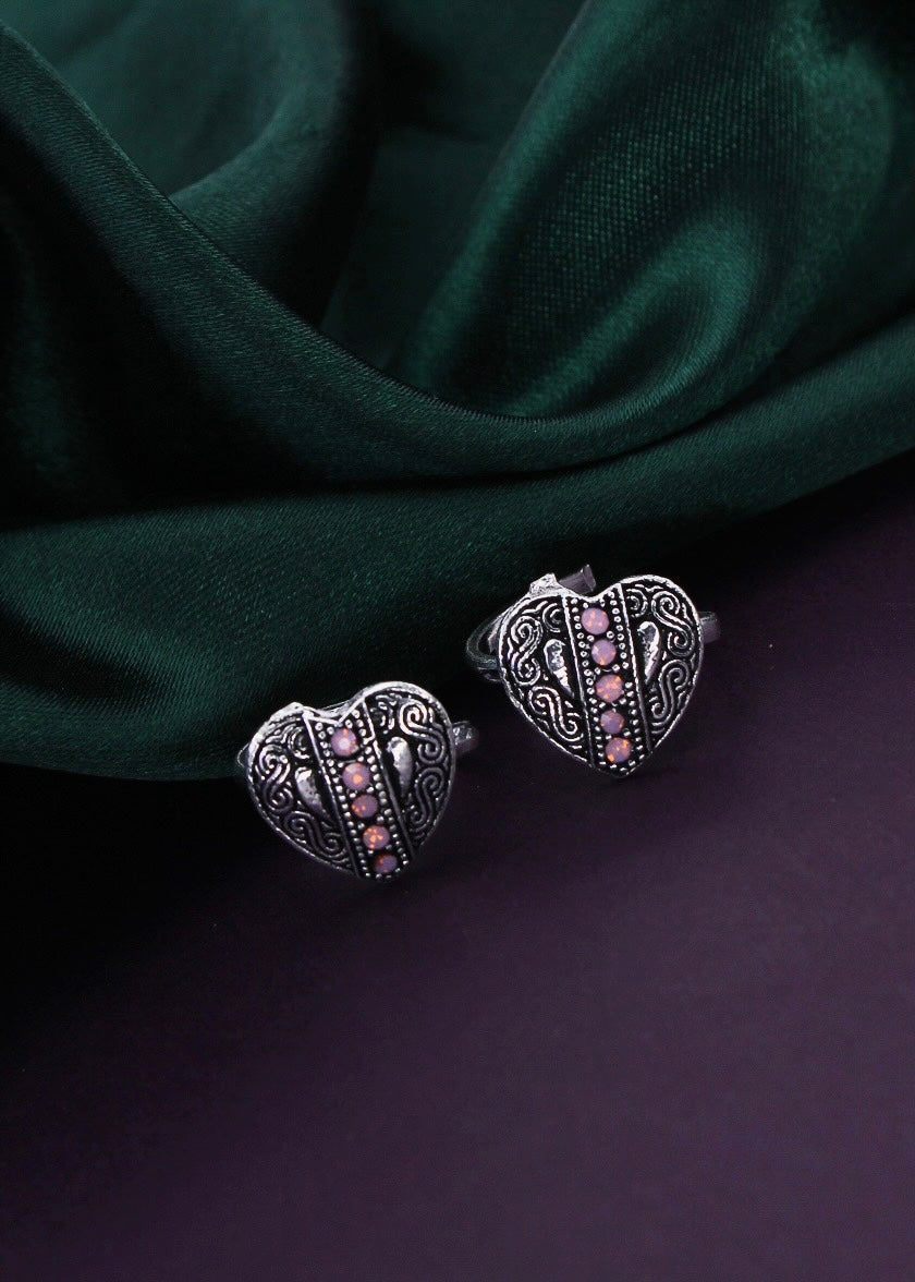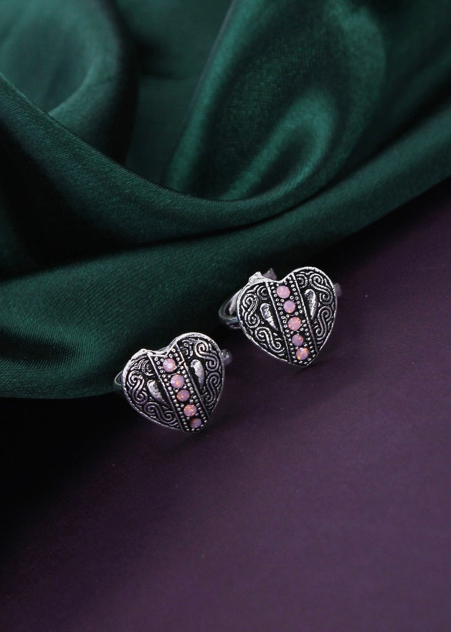Checkout this all new silver finish heart shape jodavi embedded with pink, red stone by sonchafa Jewellery. This earrings made from silver finish metal and encrusted with precious stone.
