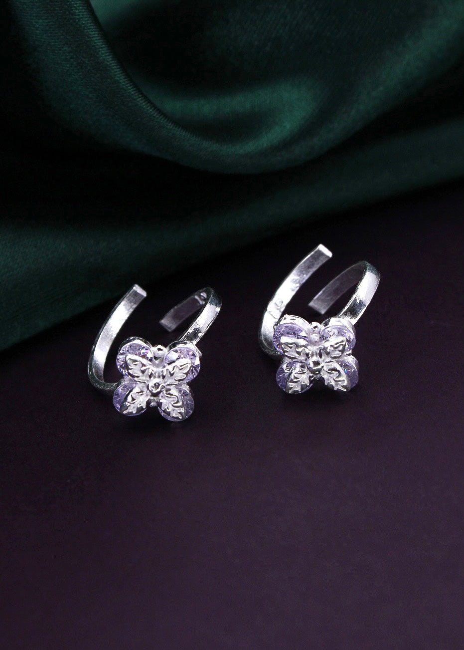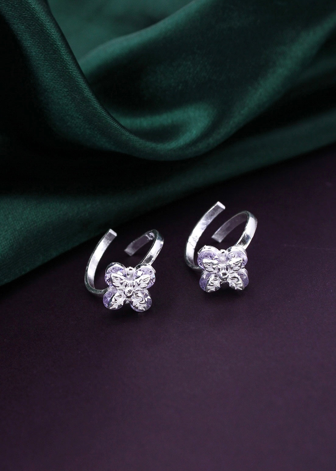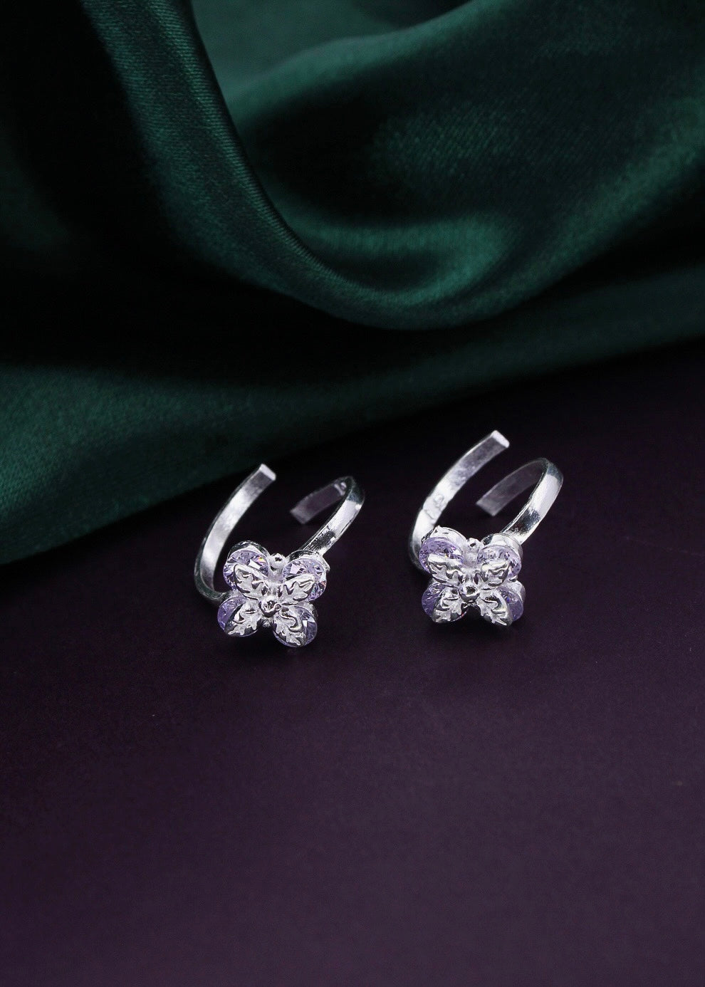 Get a distinct stylish look by clubbing these leaf design Silver jodavi from Sonchafa Jewellery. They are integrated with white stones. Crafted from Silver finish metal.
