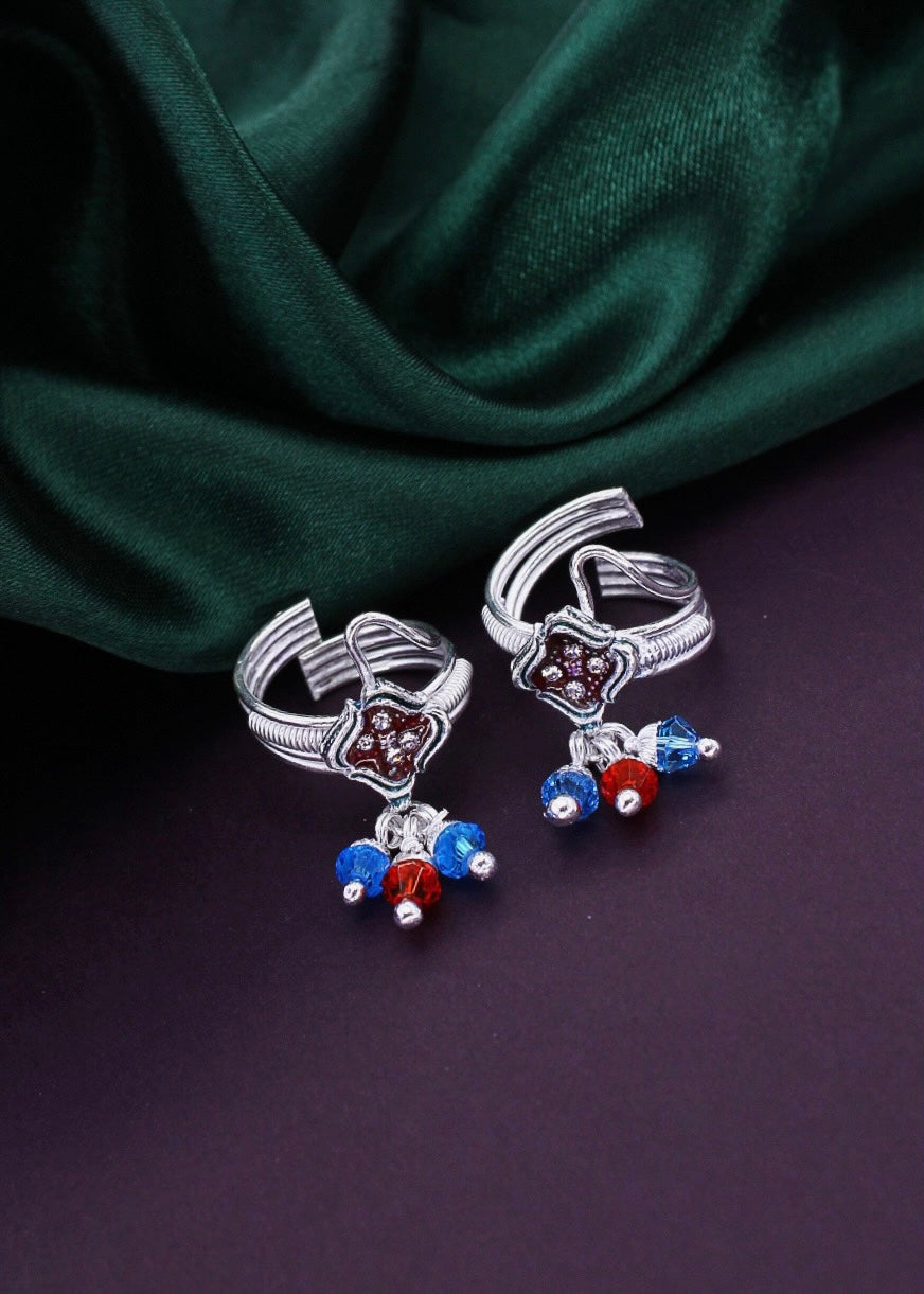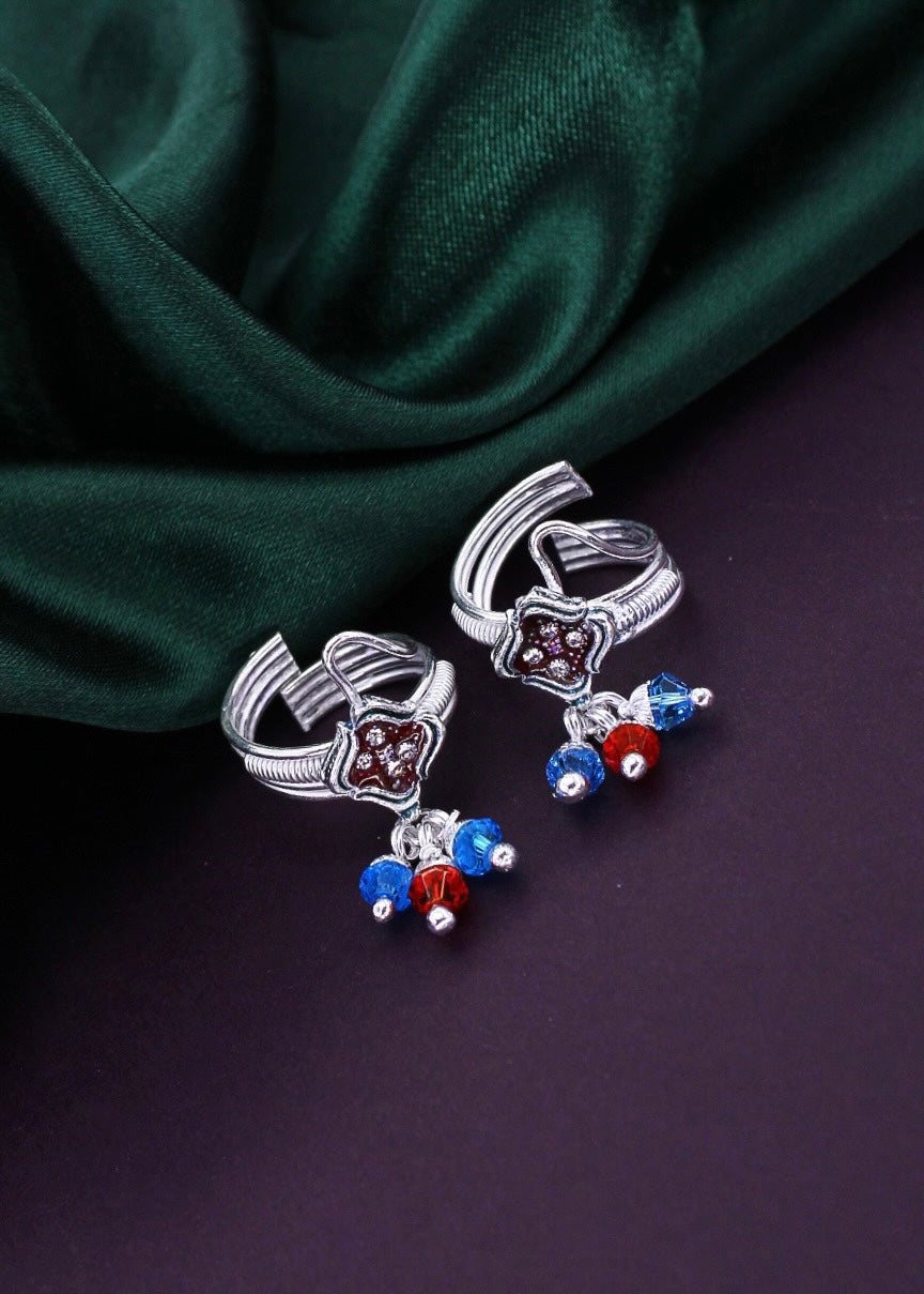 This pair of Square designer marron, white stone along with multi colour beads droplet combination wonderful pair of jodavi from Sonchafa Jewellers will appeal to you at very first look. Crafted from Silver finished metal.