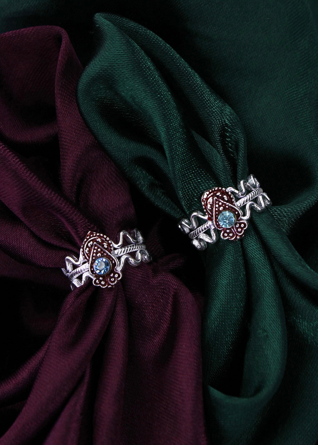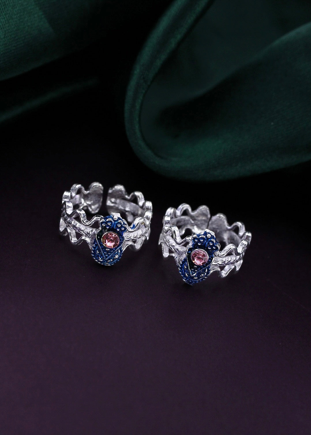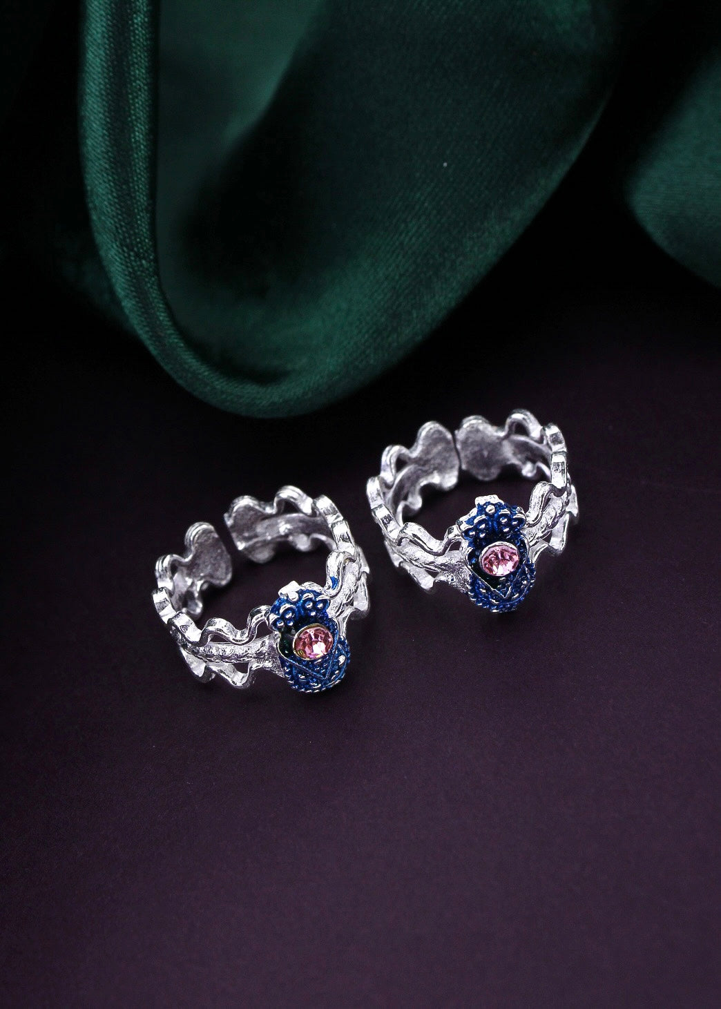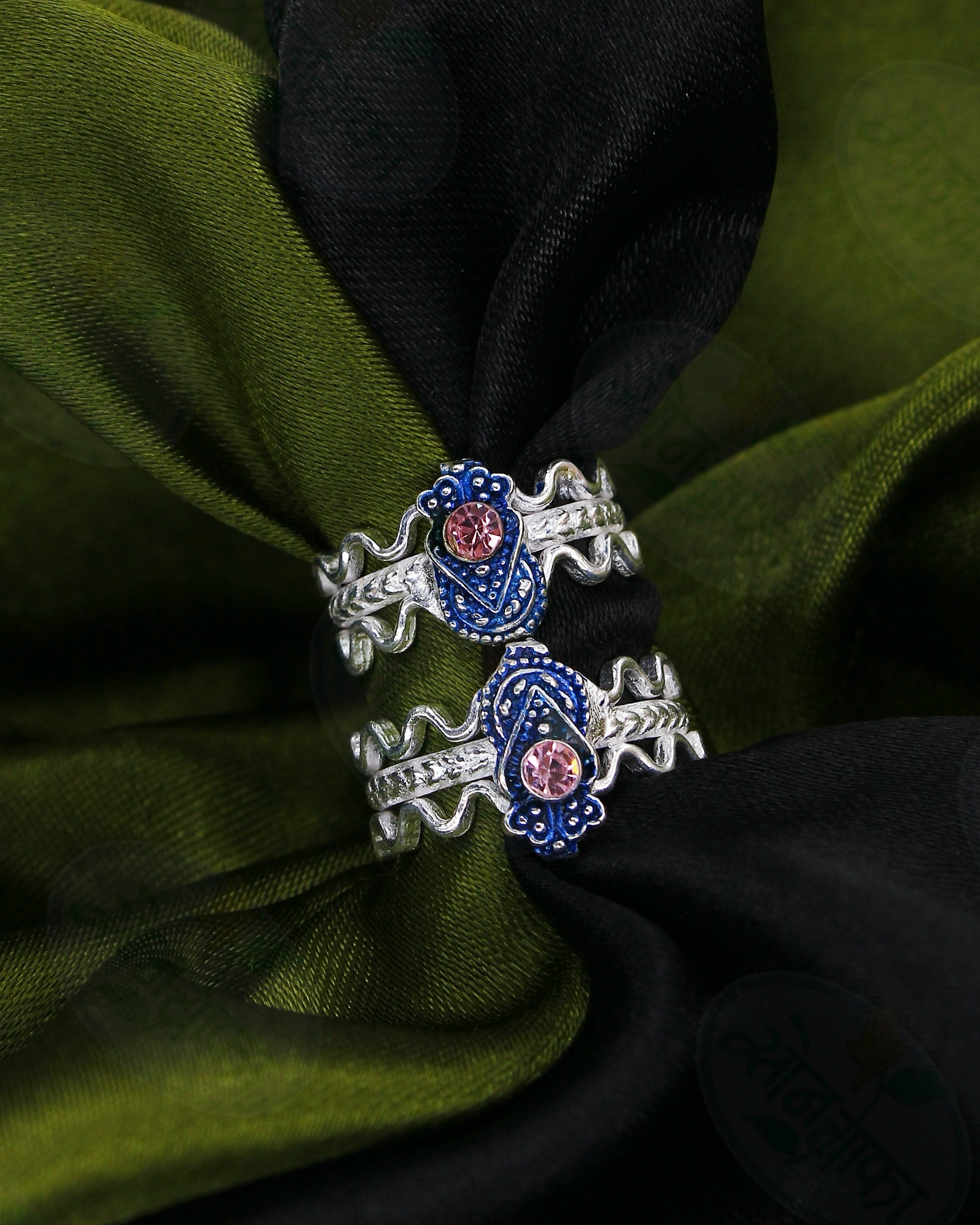 Look absolutely gorgeous by clubbing this pair of appealing floral designer jodavi from Sonchafa Jewellers. They are embedded with pink, blue, stone and made from silver finish metal. In addition you can change its stone as per your matching costume.