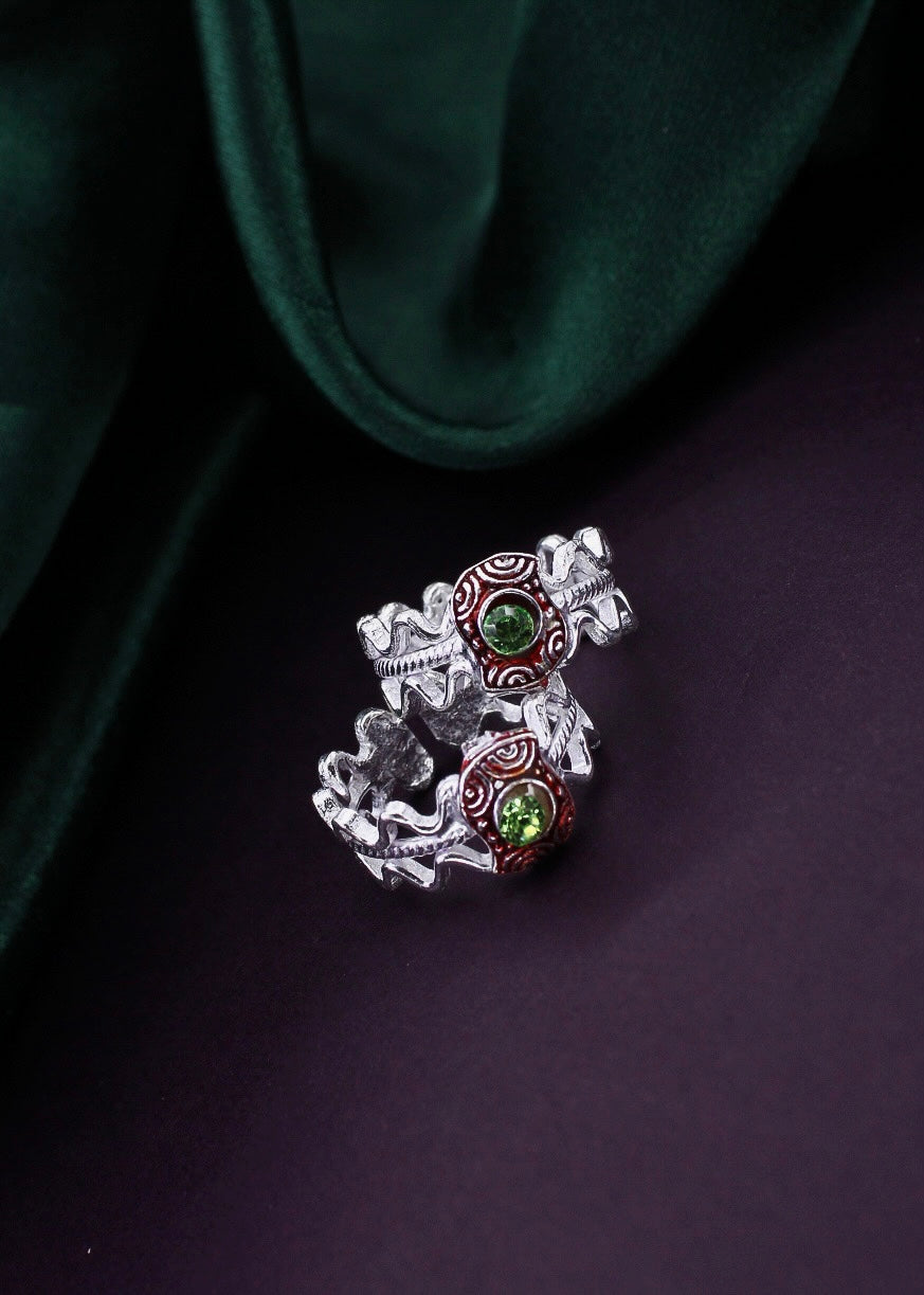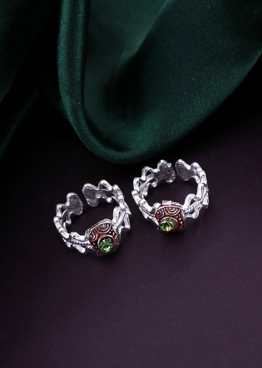 Sonchafa Jewellers brings this Elegant designer jodavi for modern married women. These are embedded with sparkling light green colour stone. They are fashioned from Silver finish metal and ensure high durability.