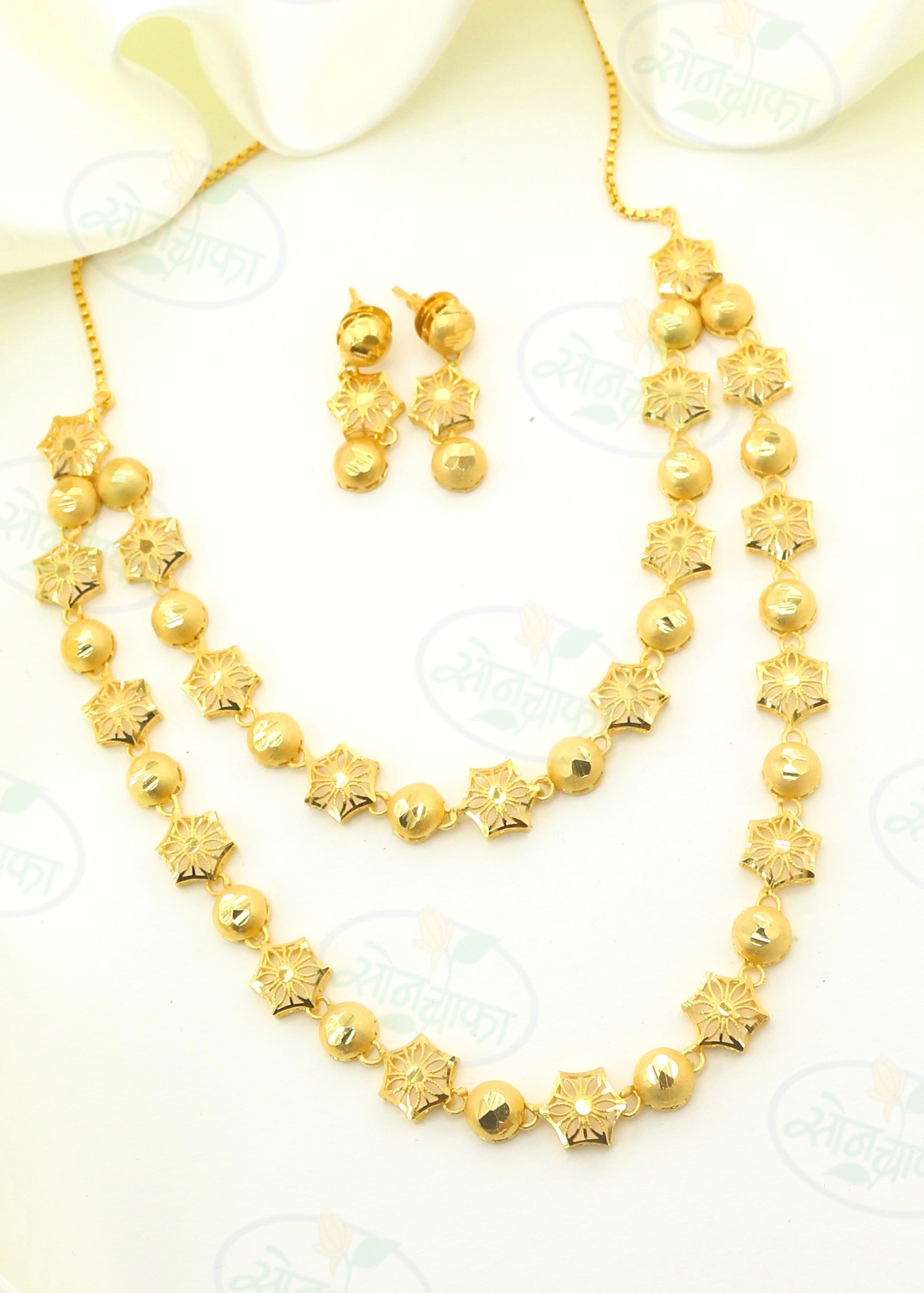 Adorn your neckline with this designer 1gram gold Plated necklace which is perfect blend of class and elegance. This designer necklace set will fetch you lots of compliments from onlookers for your amazing choice.