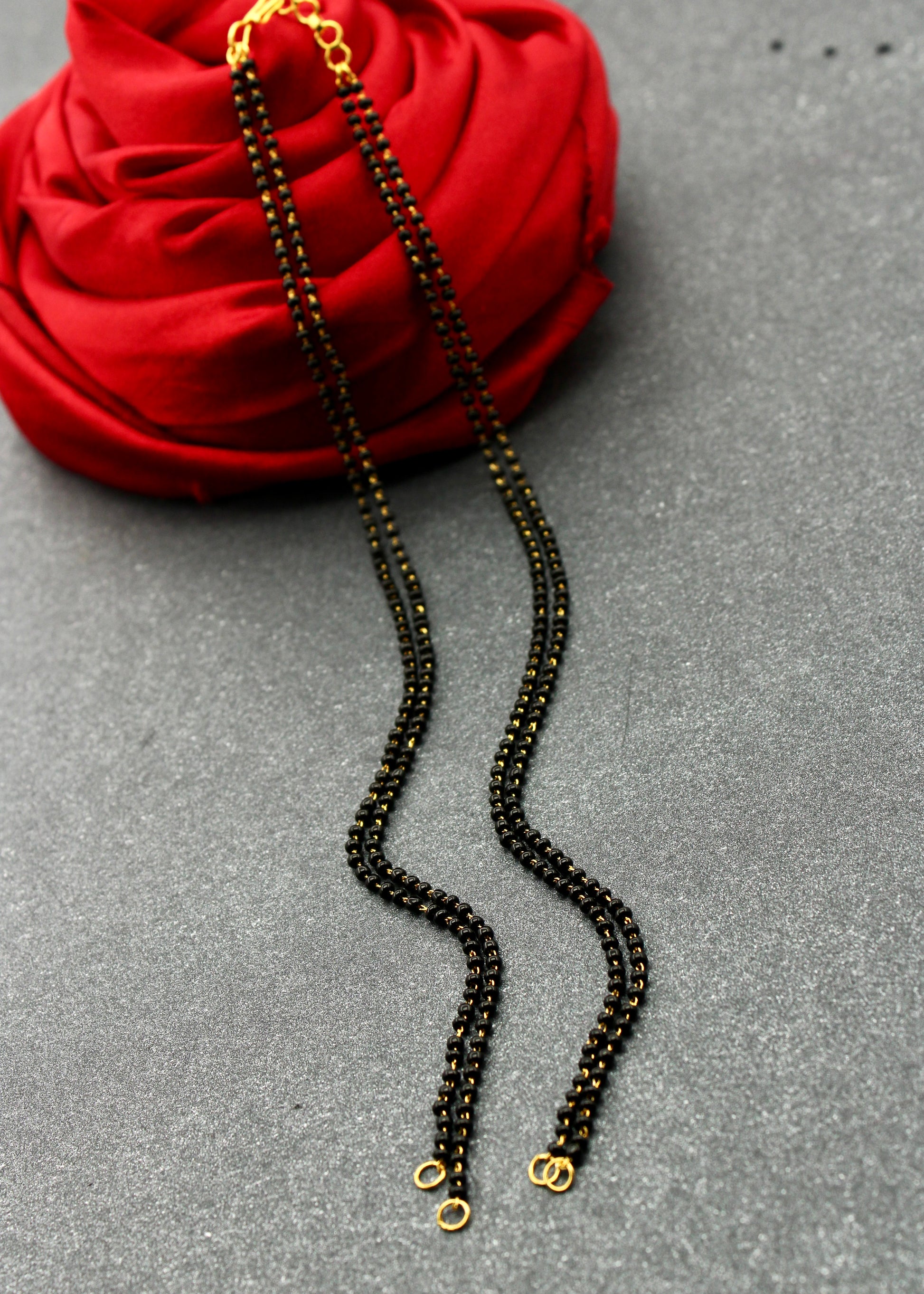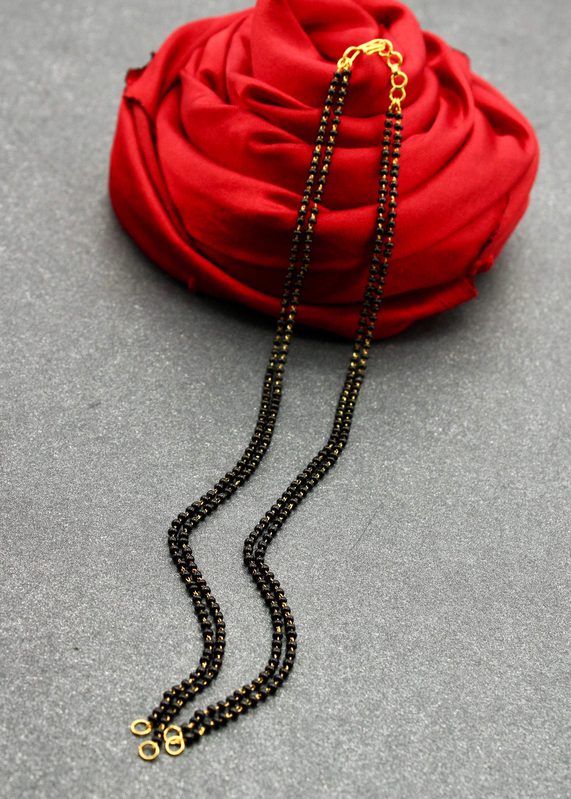 Sonchafa Jewellery brings to you this mangalsutra sar in classy look. It is made from golden finish metal. In addition the golden chain is woven with black beads. It is superior in quality and skin-friendly as well.