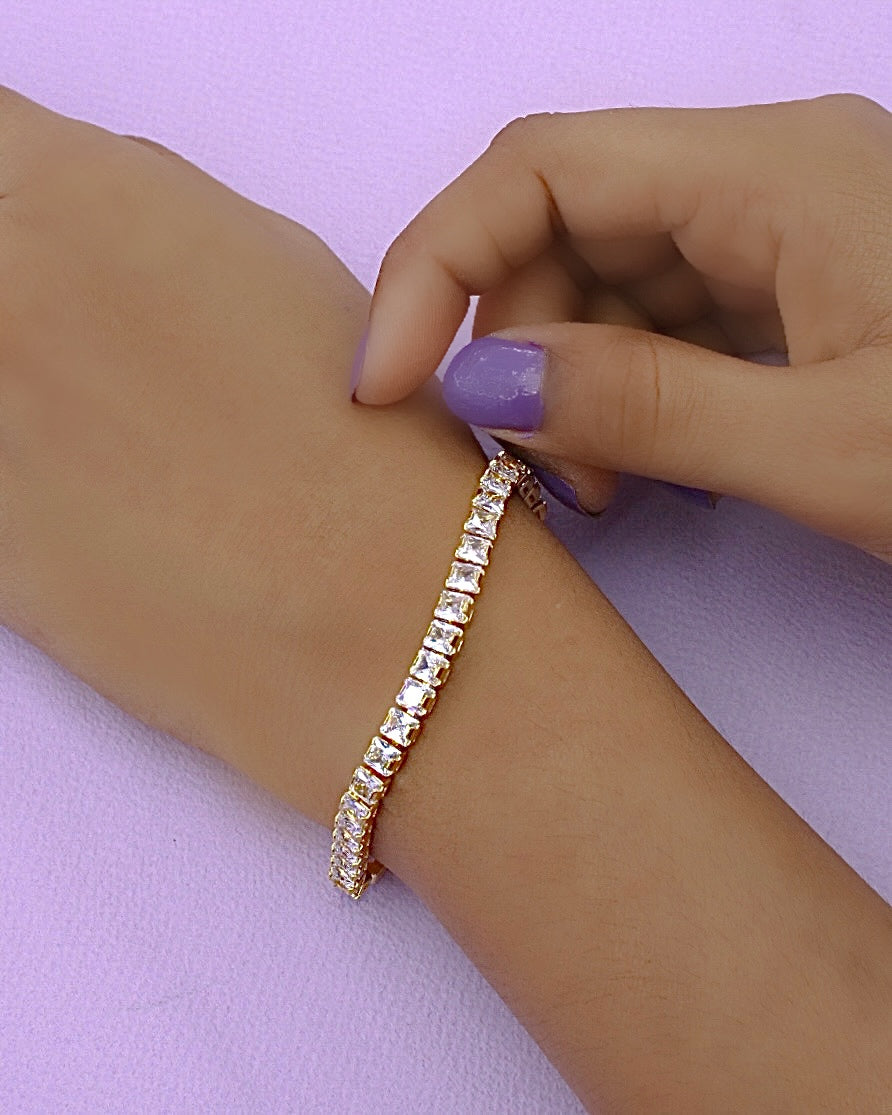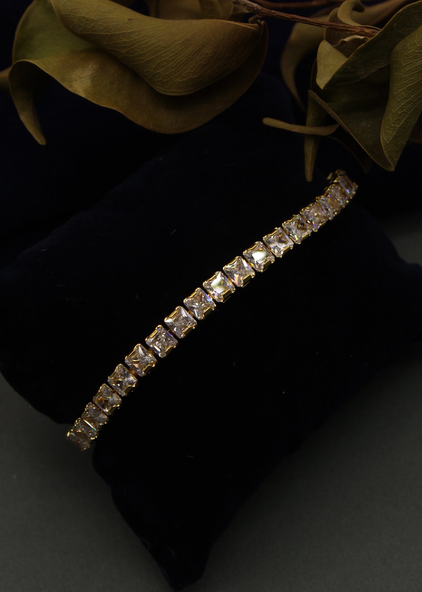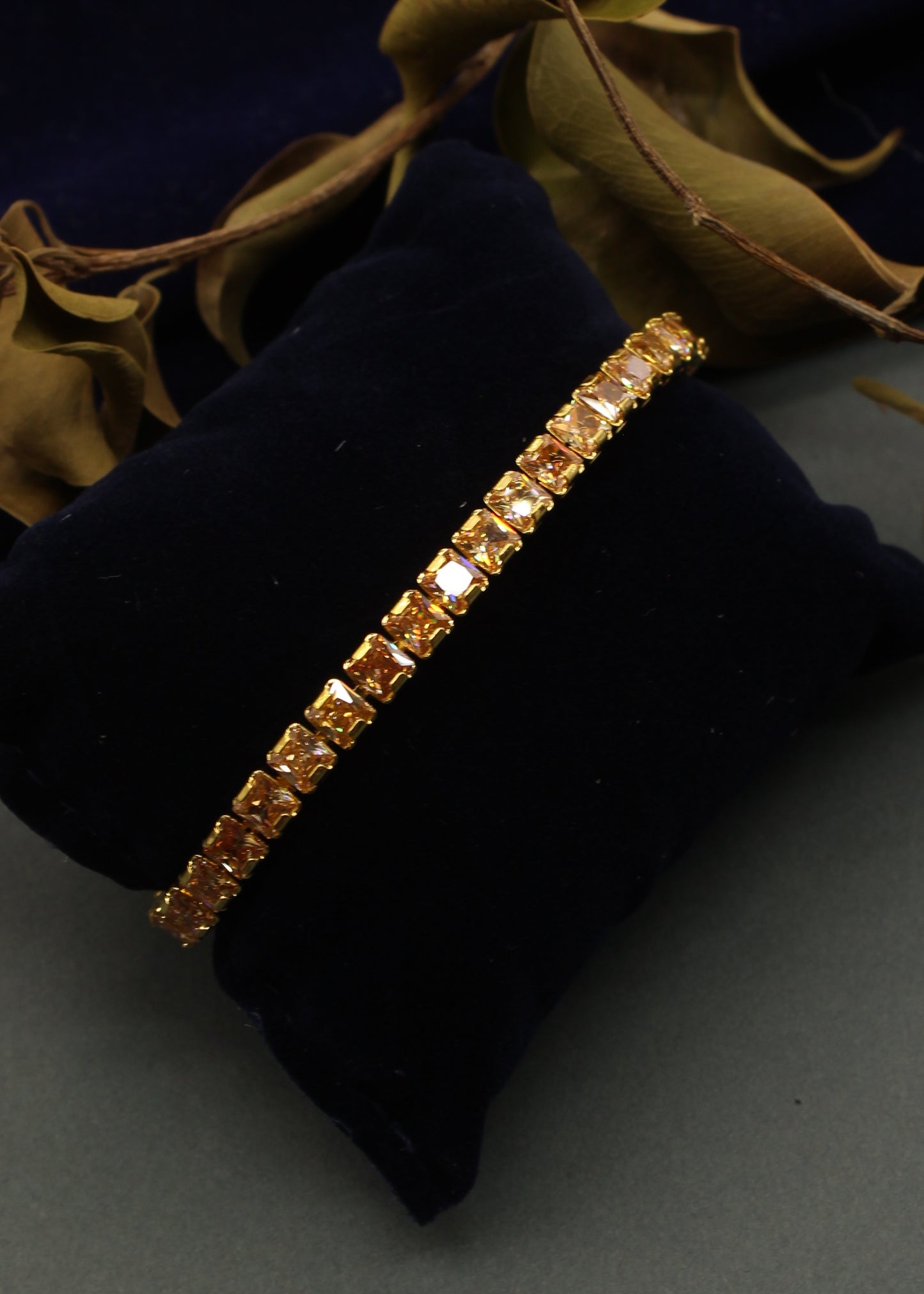 Complete your party look by clubbing this adorable bracelet from sonchafa Jewellery. It is embedder with peach-white stone along with gold finish metal and crafted from superior quality metal. This fancy bracelet is easy to wear and comfortable to hold.