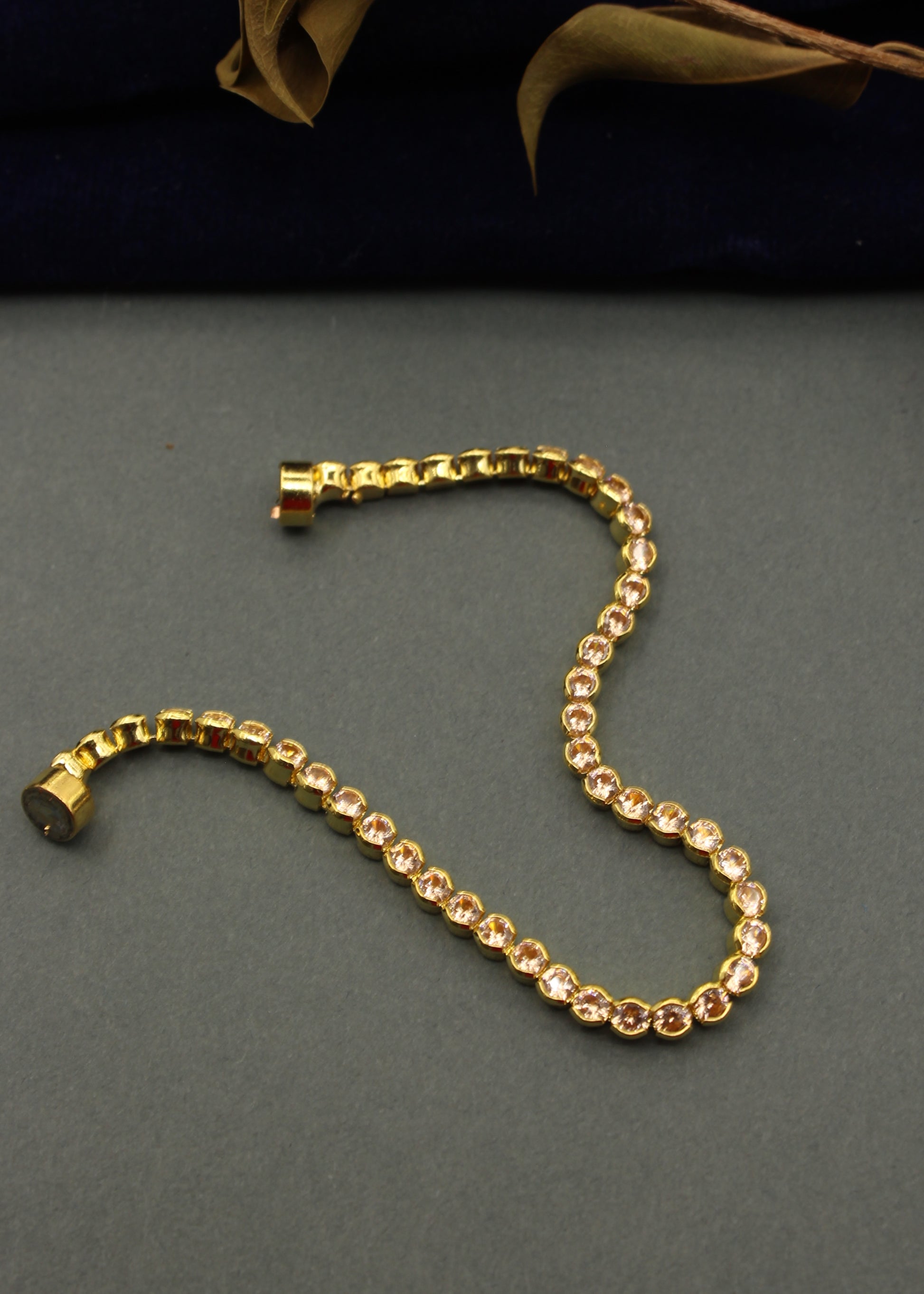 Adorn your wrist with this amazing gold finish bracelet from sonchafa Jewellery. which is perfect combination of class and elegance. It is encrusted with peach - white colour stone and made from metal. Easy to wear and comfortable to hold all day long.
