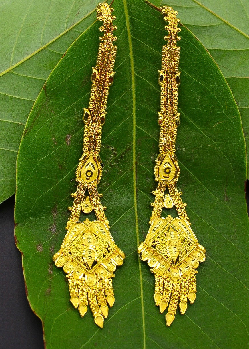 BEAUTEOUS GOLDEN EARRINGS WITH KANCHAIN