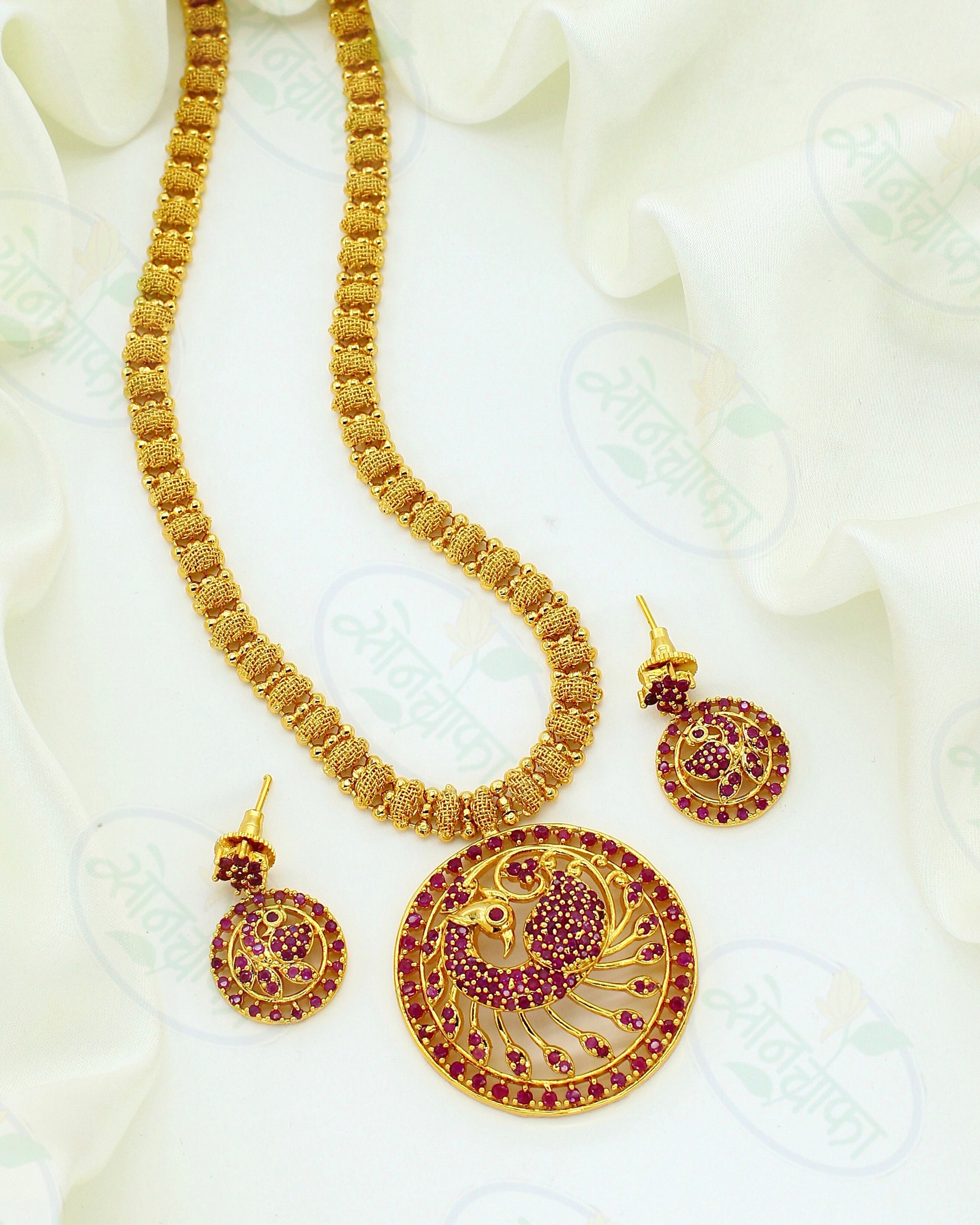 This is truly an alluring floral designer necklace set from Sonchafa Jewellery. This necklace has a flower design along with studded golden color stone. This necklace is crafted from antique golden finish metal. This necklace is decorated with white stone