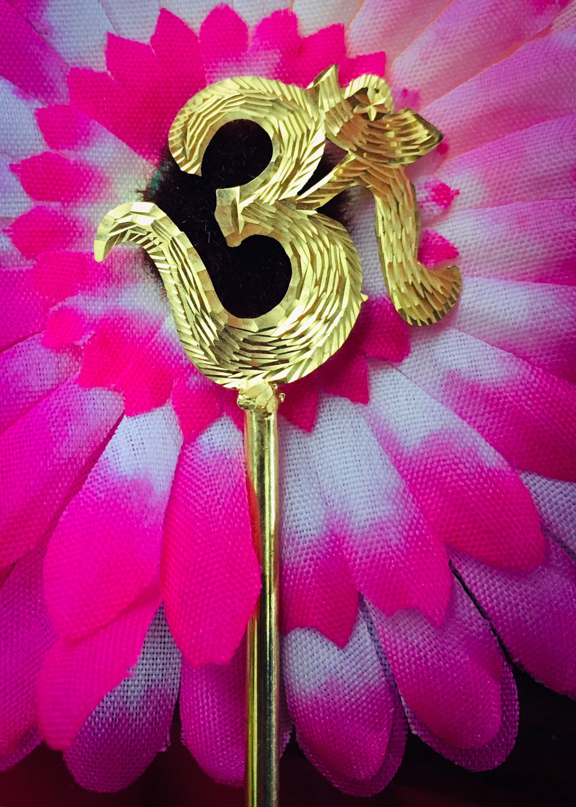 This Ganesh festival Sonchafa Jewellery offers this golden finish beautiful ‘OM’ inspired wonderful trishul for Ganpati Bappa. It is fashioned from golden finish metal and is rust-resistant as well.