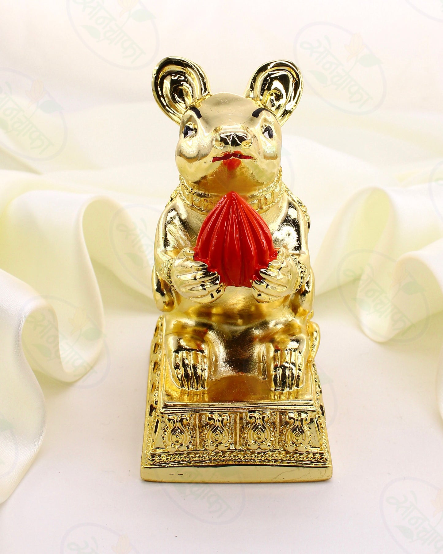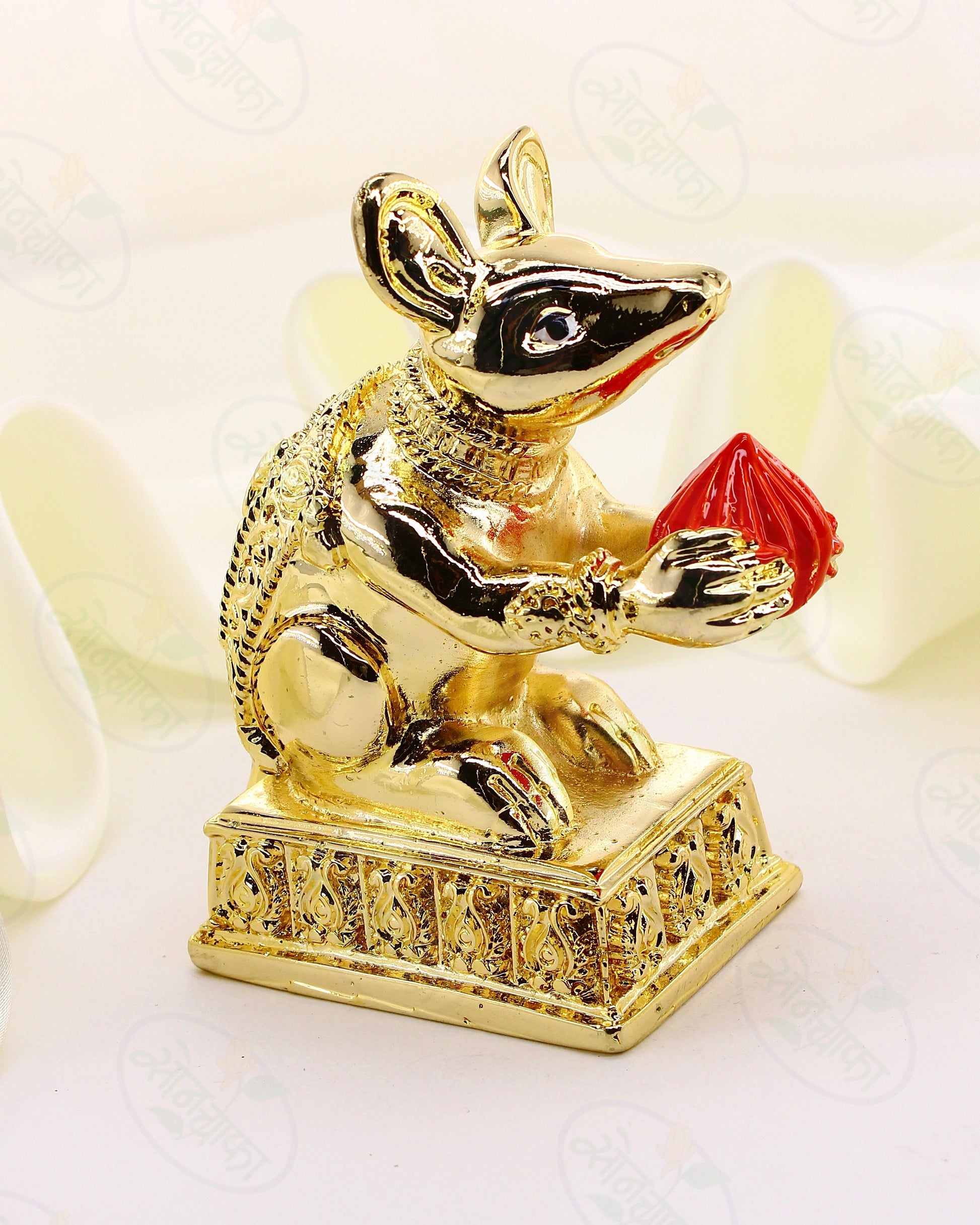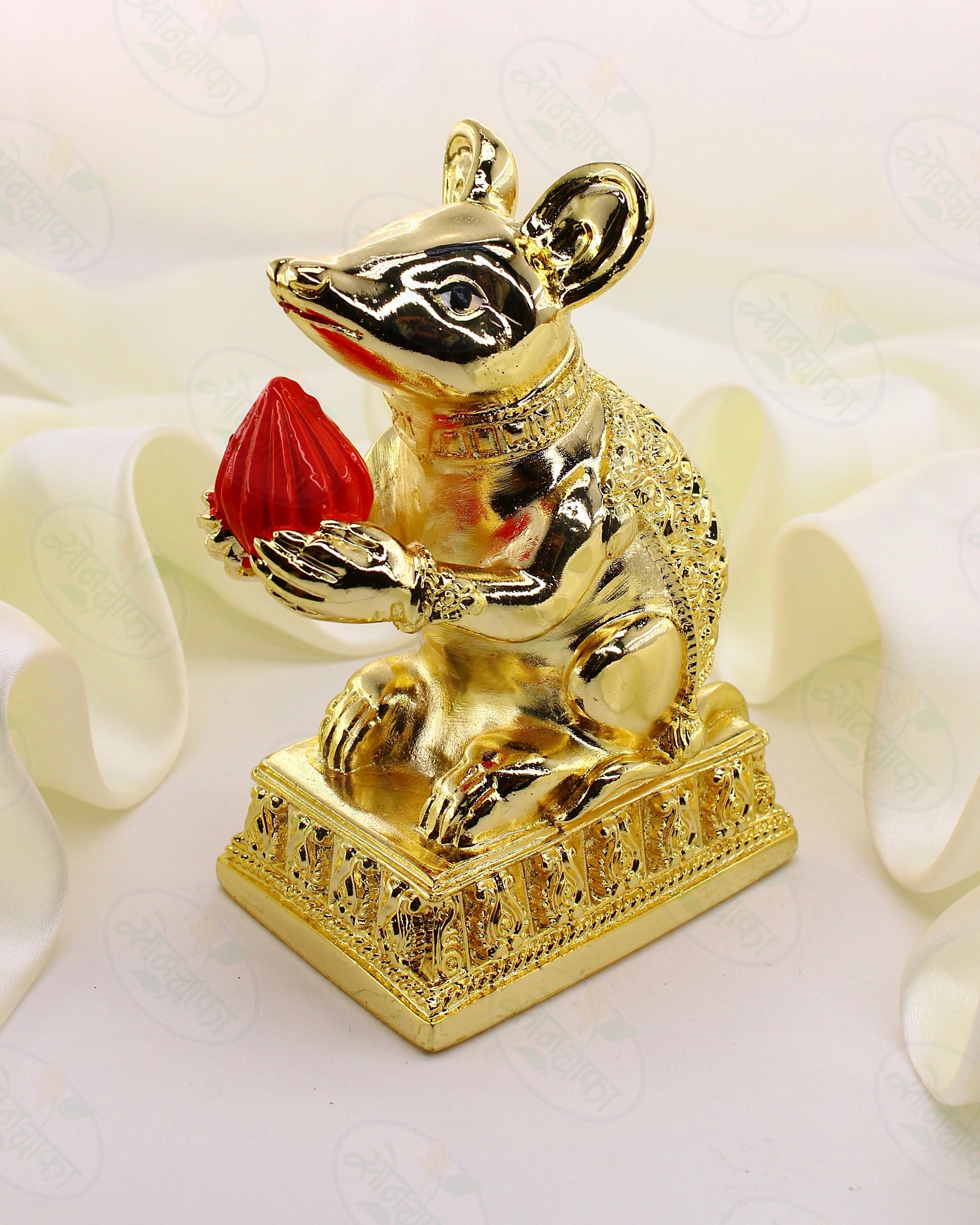 This ganpati festival sonchafa jewellery offers attractive range of Gauri- Ganpati decoration articles. this Mushak will enhance your Ganesha decoration. this mouse is made from golden finish metal and it is rust-resistant.