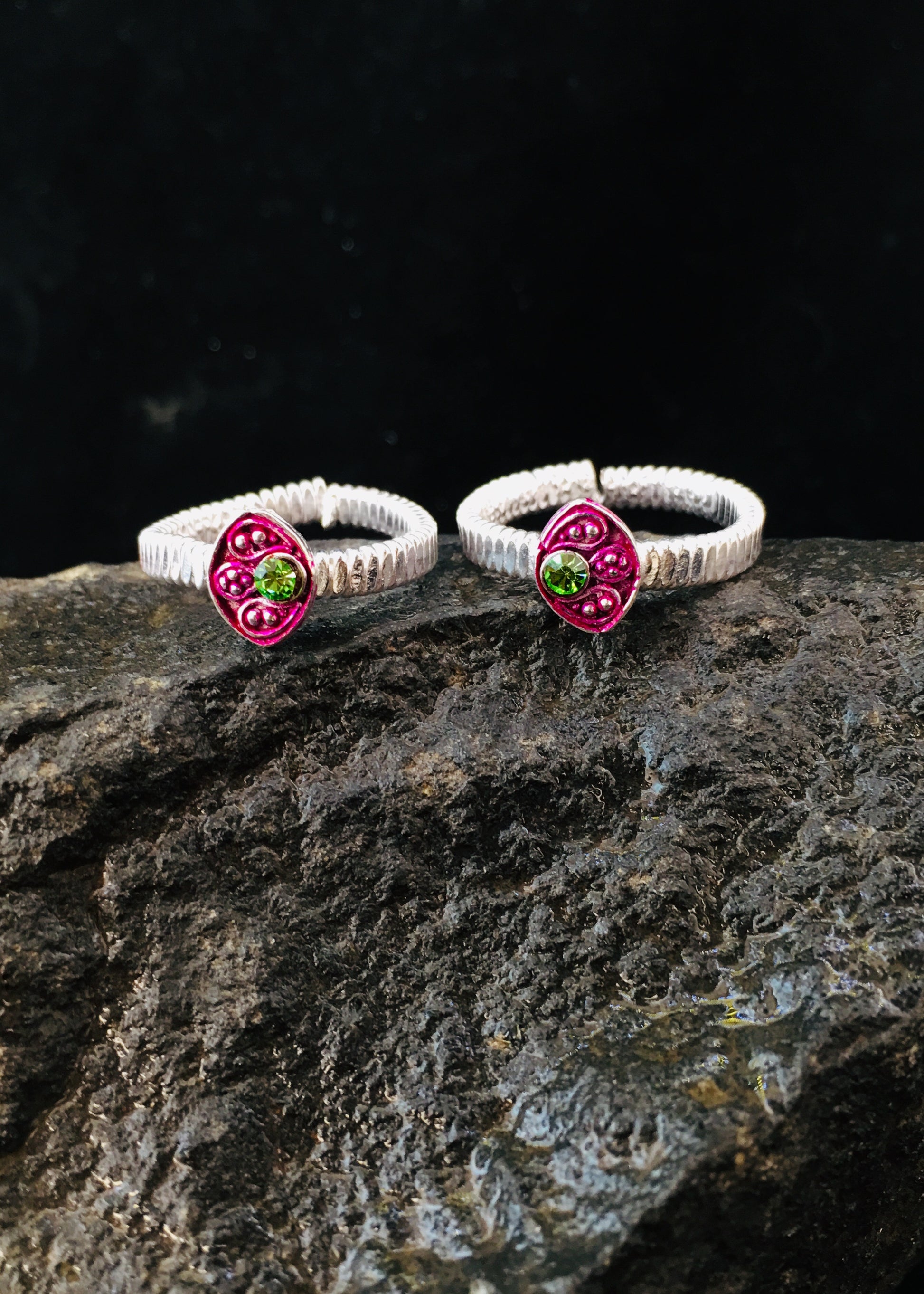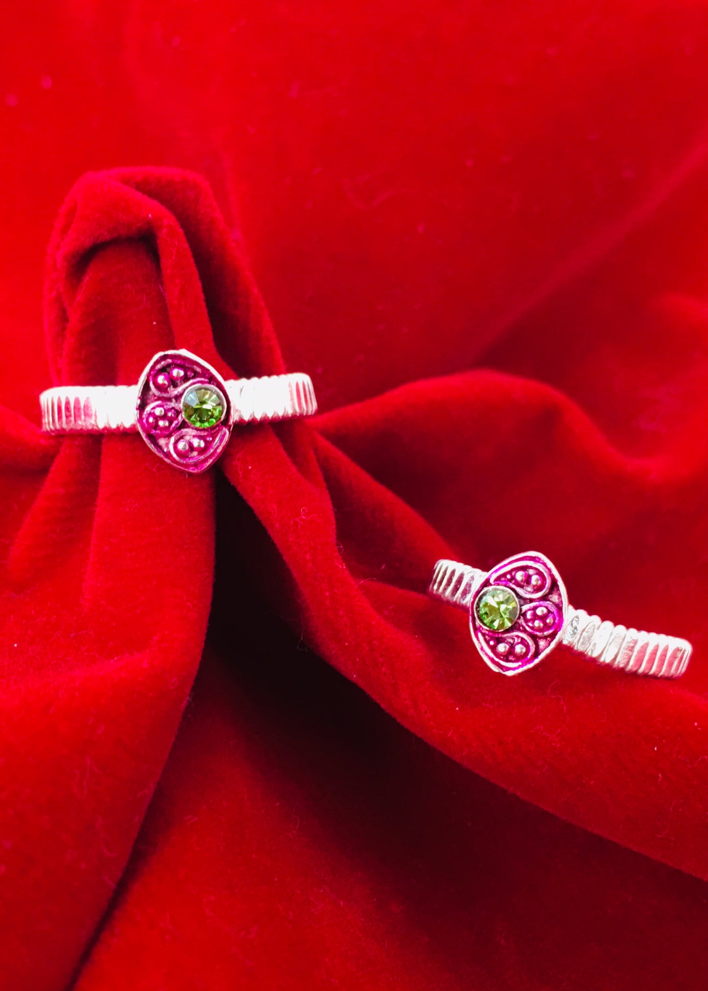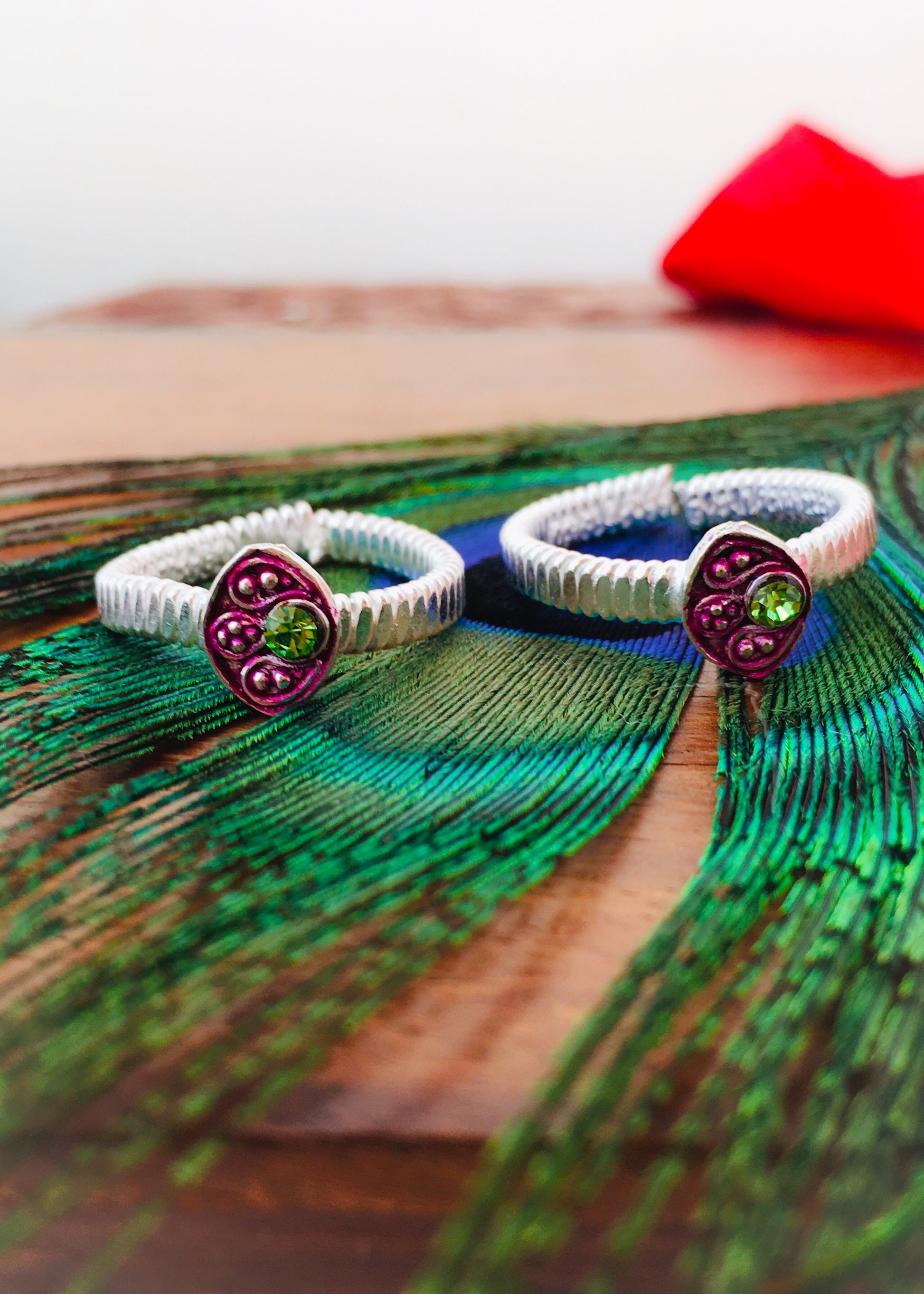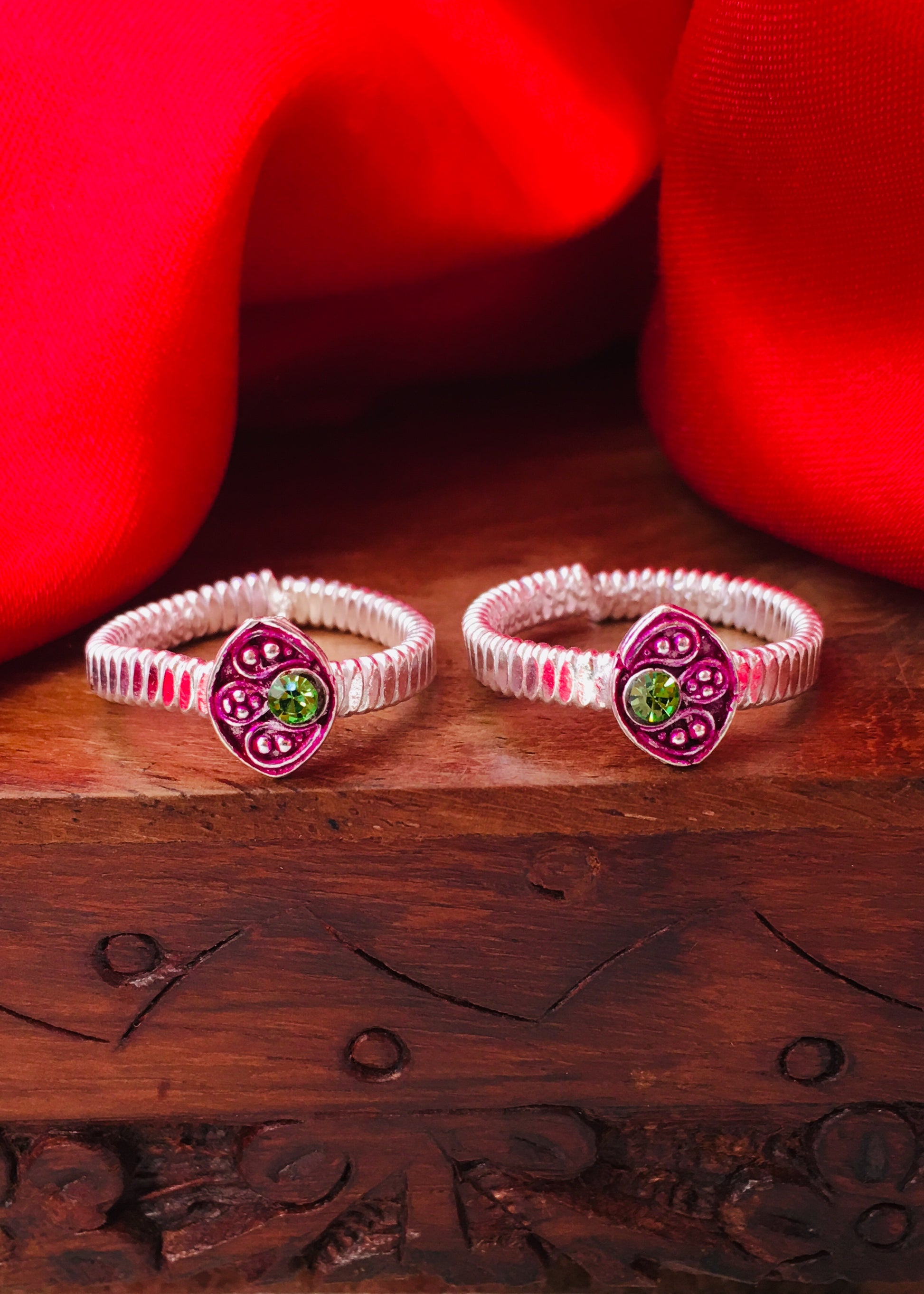 Checkout this pair of silver designer green stone pair of jodavi from Sonchafa Jewellery. They are wonderful carving design.
