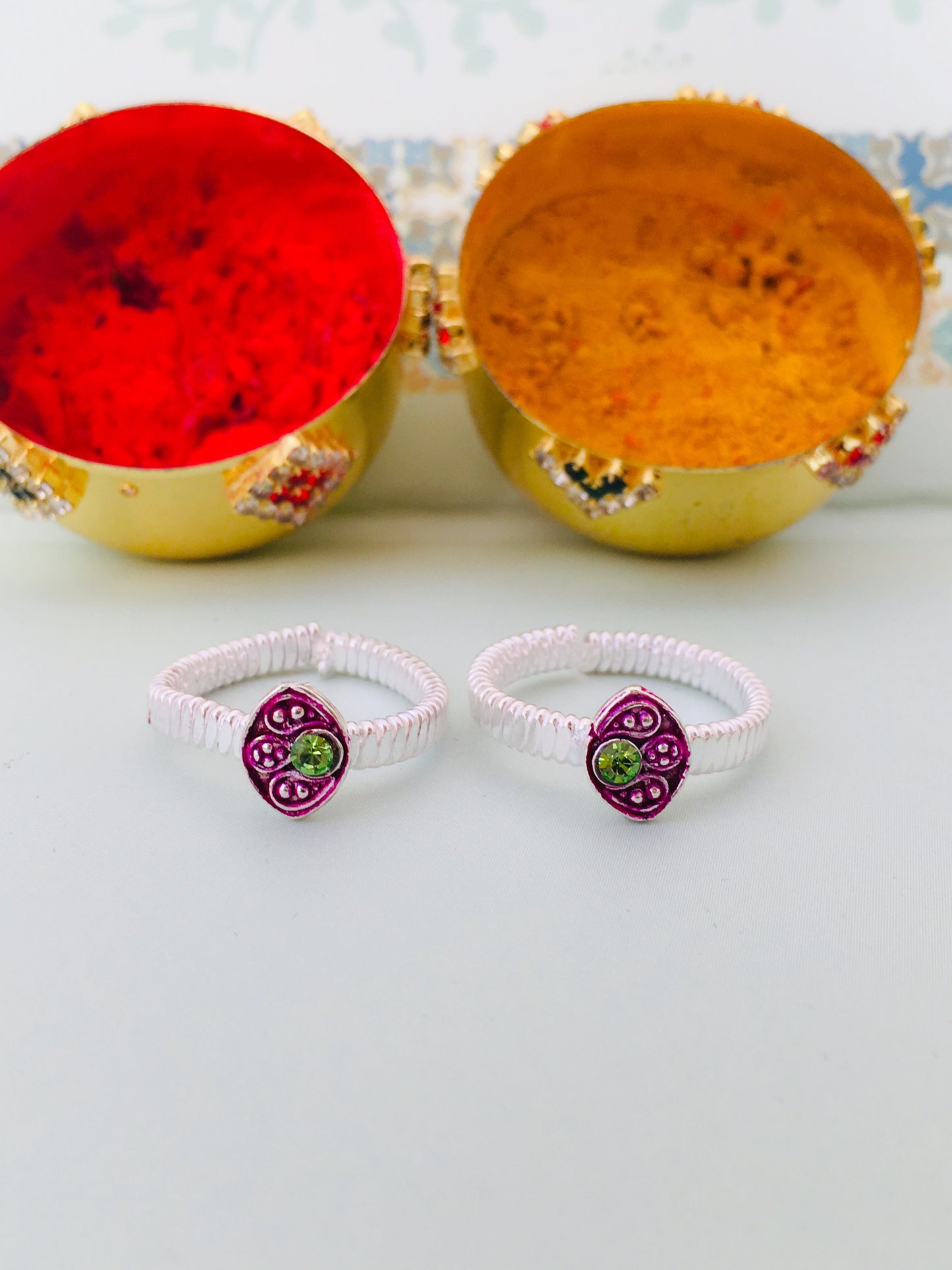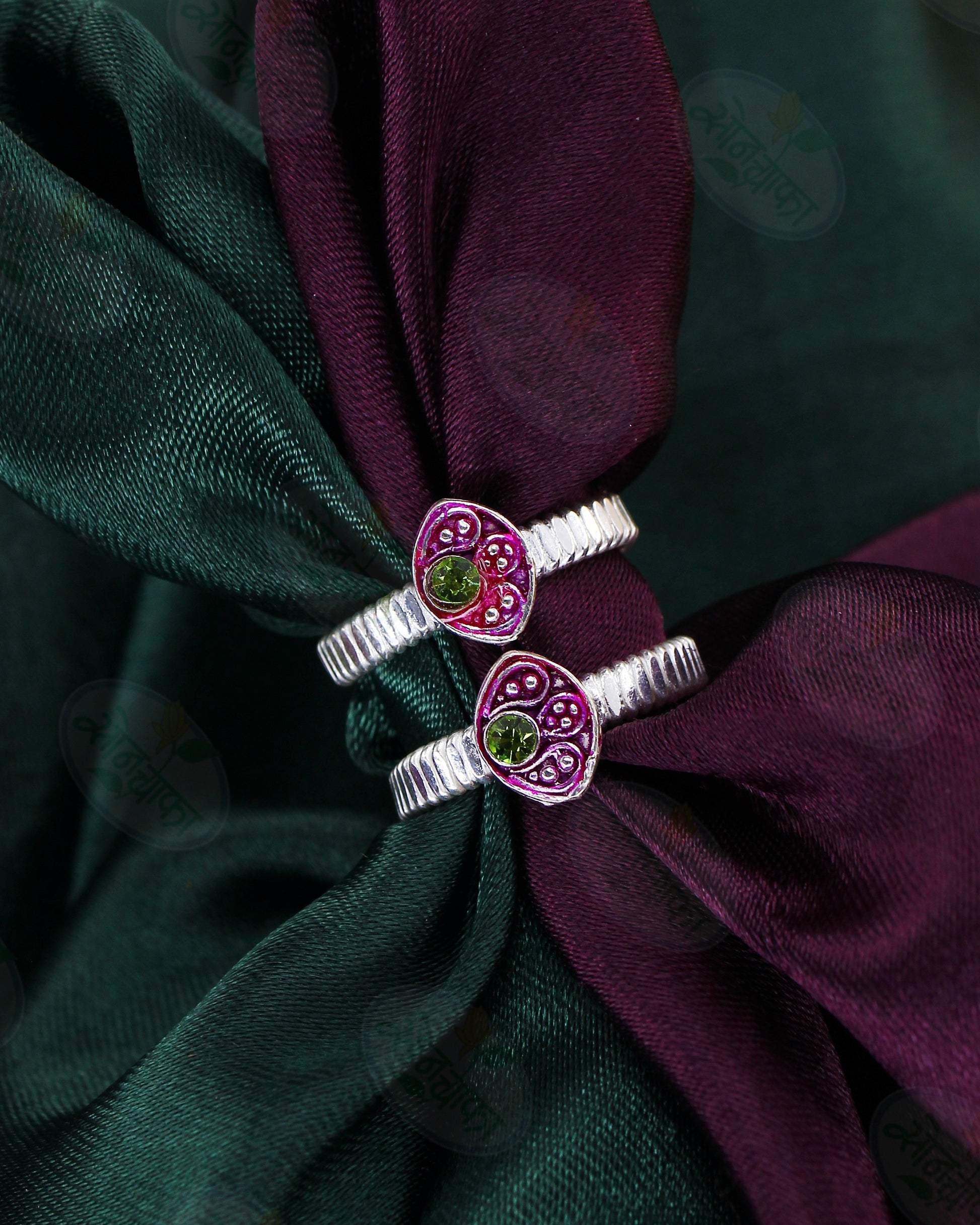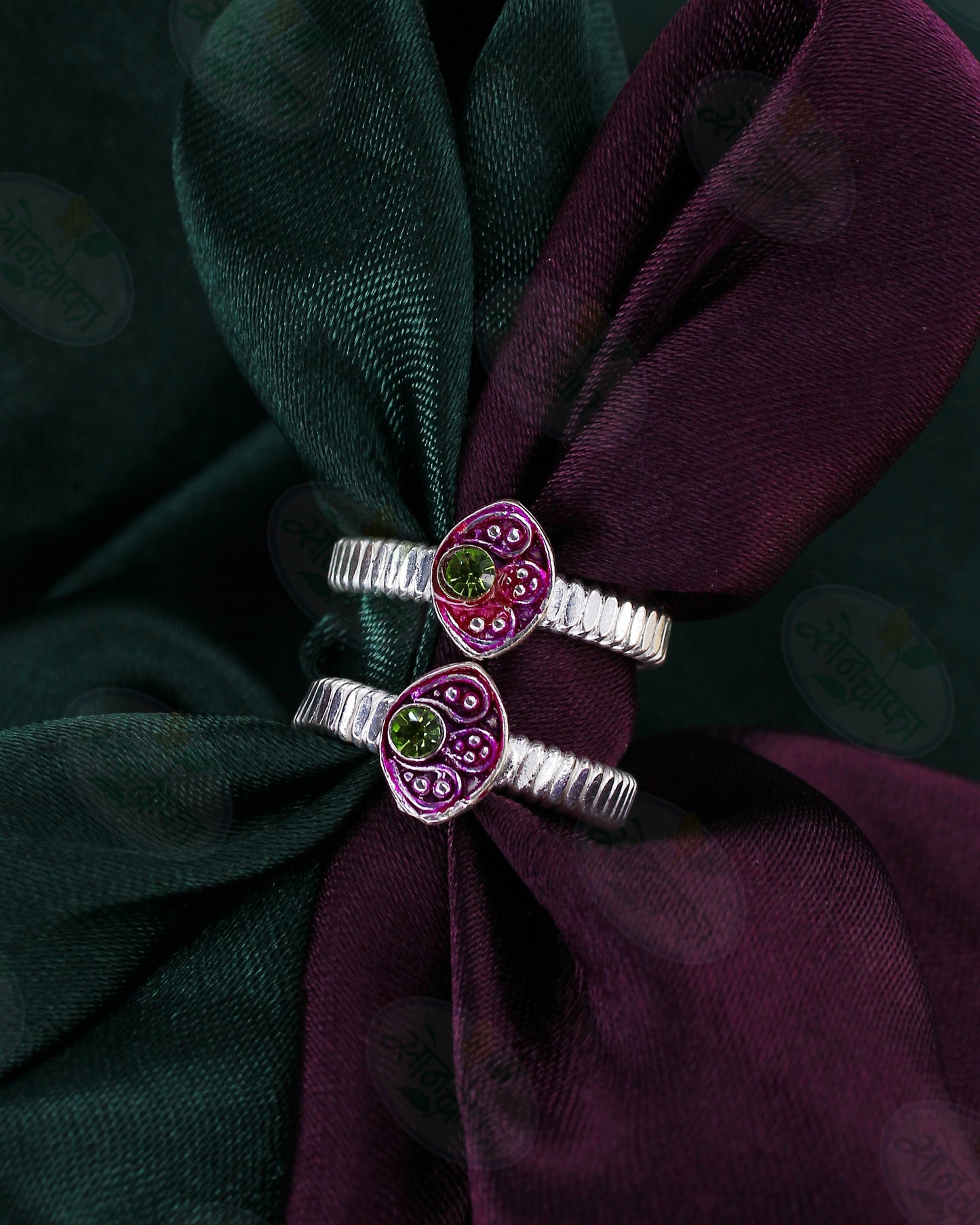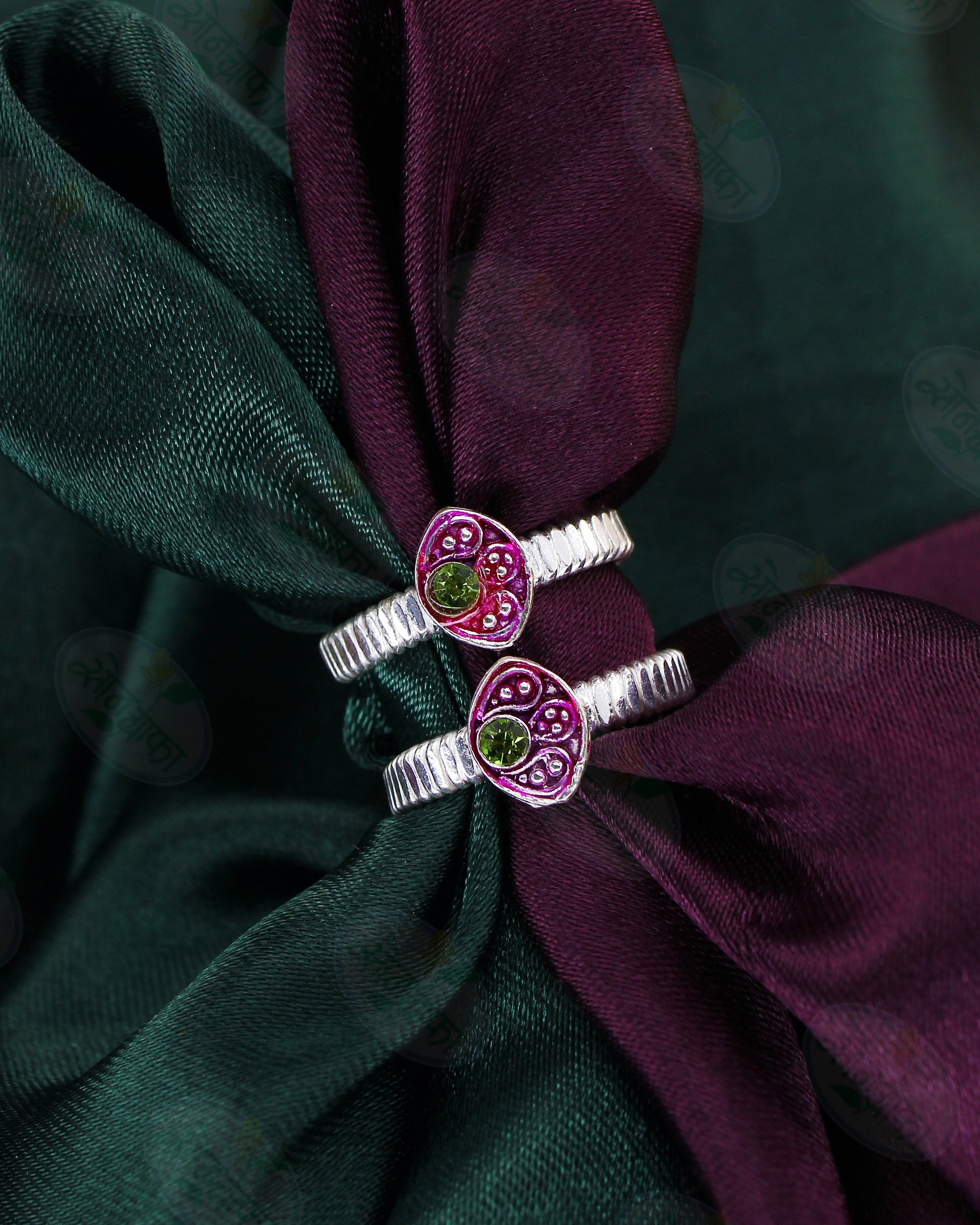 Checkout this pair of silver designer green stone pair of jodavi from Sonchafa Jewellery. They are wonderful carving design.