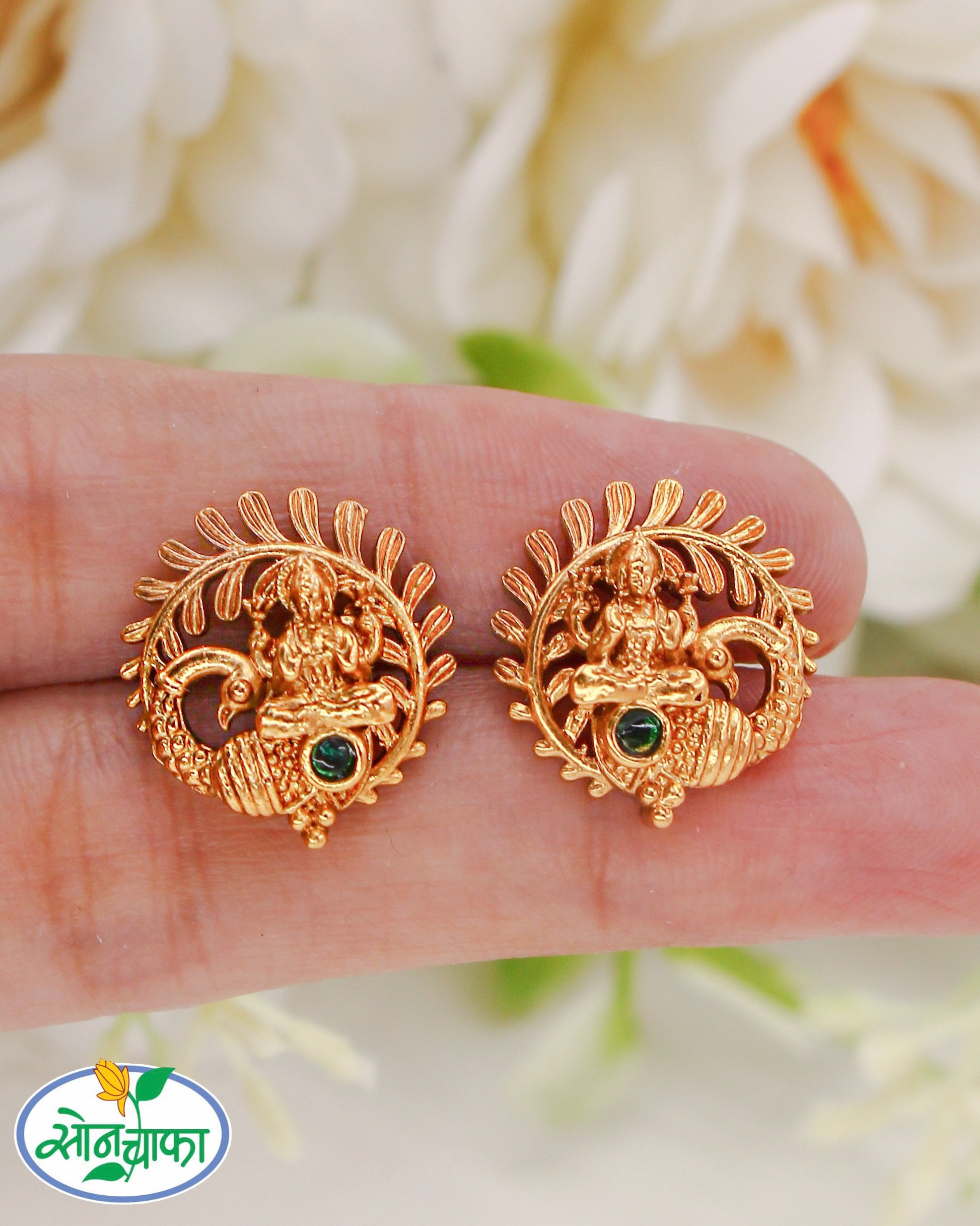 TEMPLE WITH PEACOCK DESIGNER EAR-STUDS