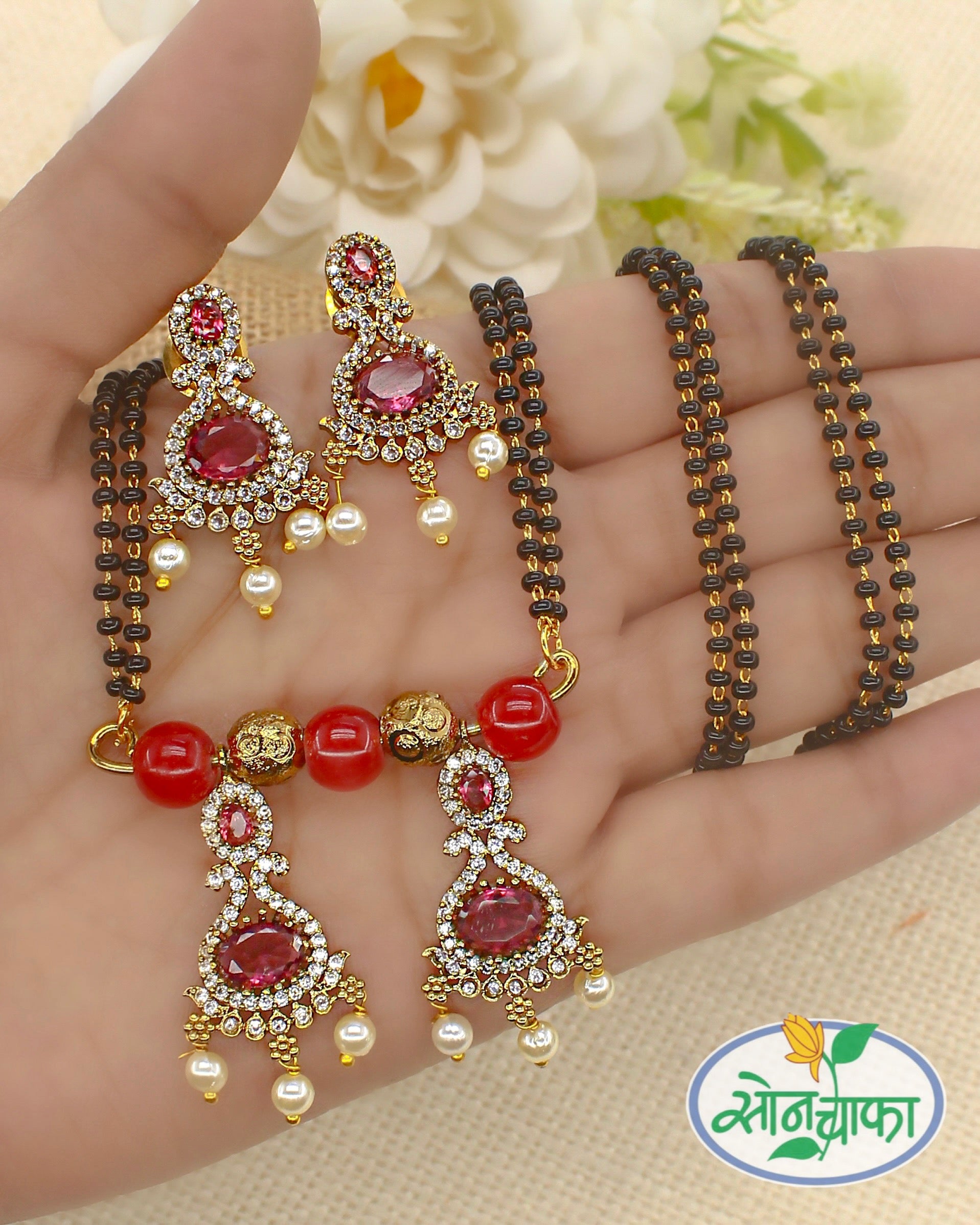 Sonchafa Jewellery presents this golden finish rajasi mangalsutra for stylish women lie you.