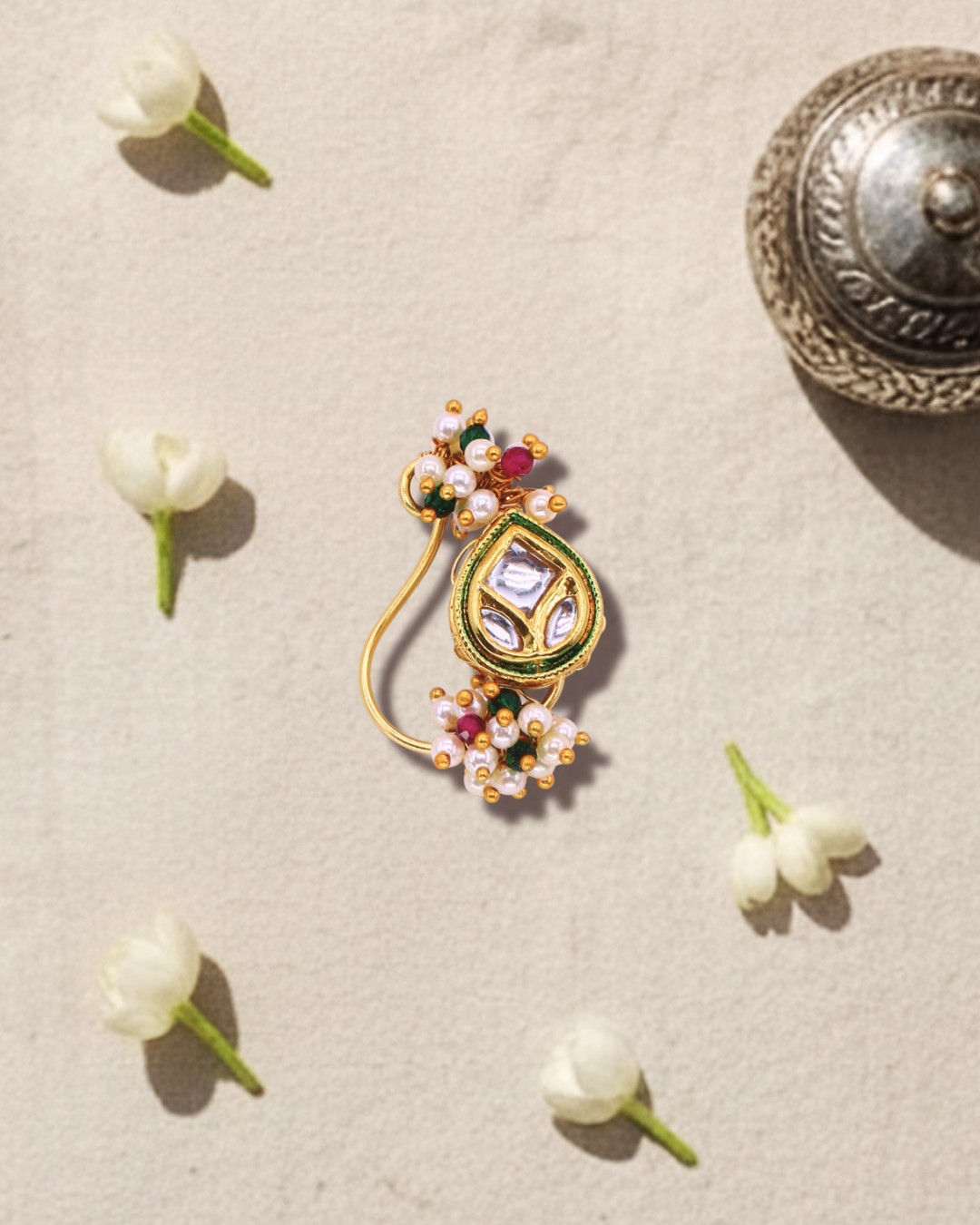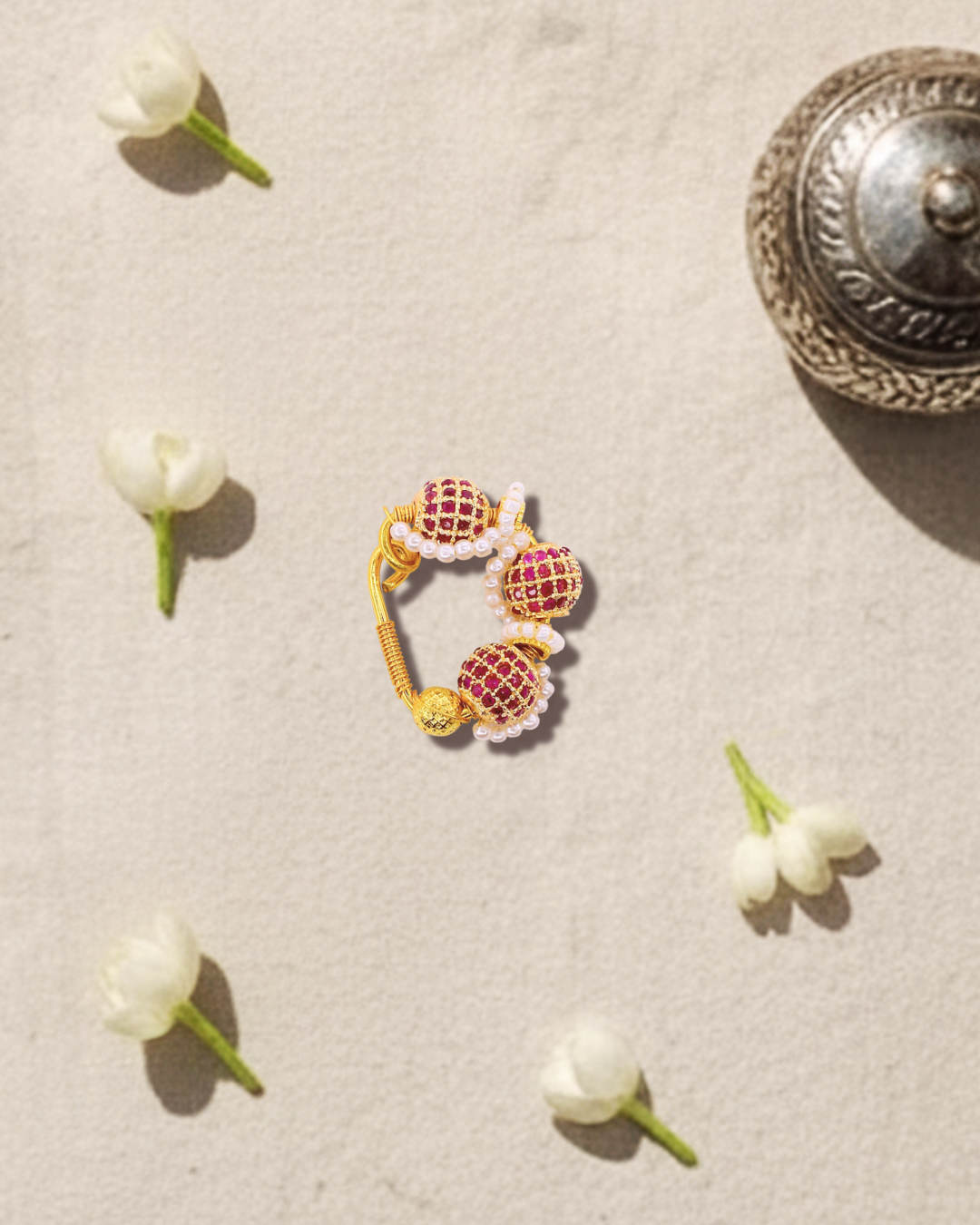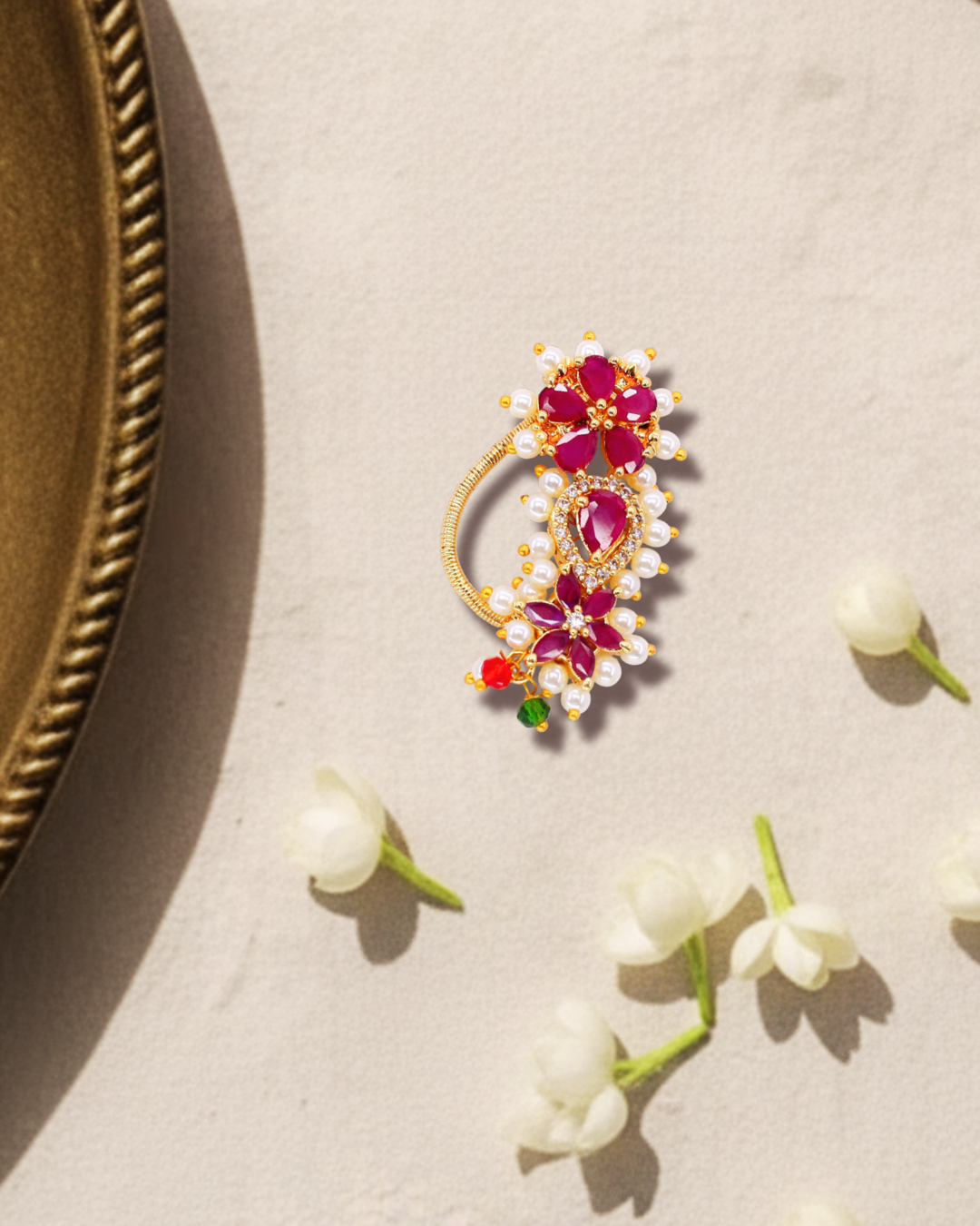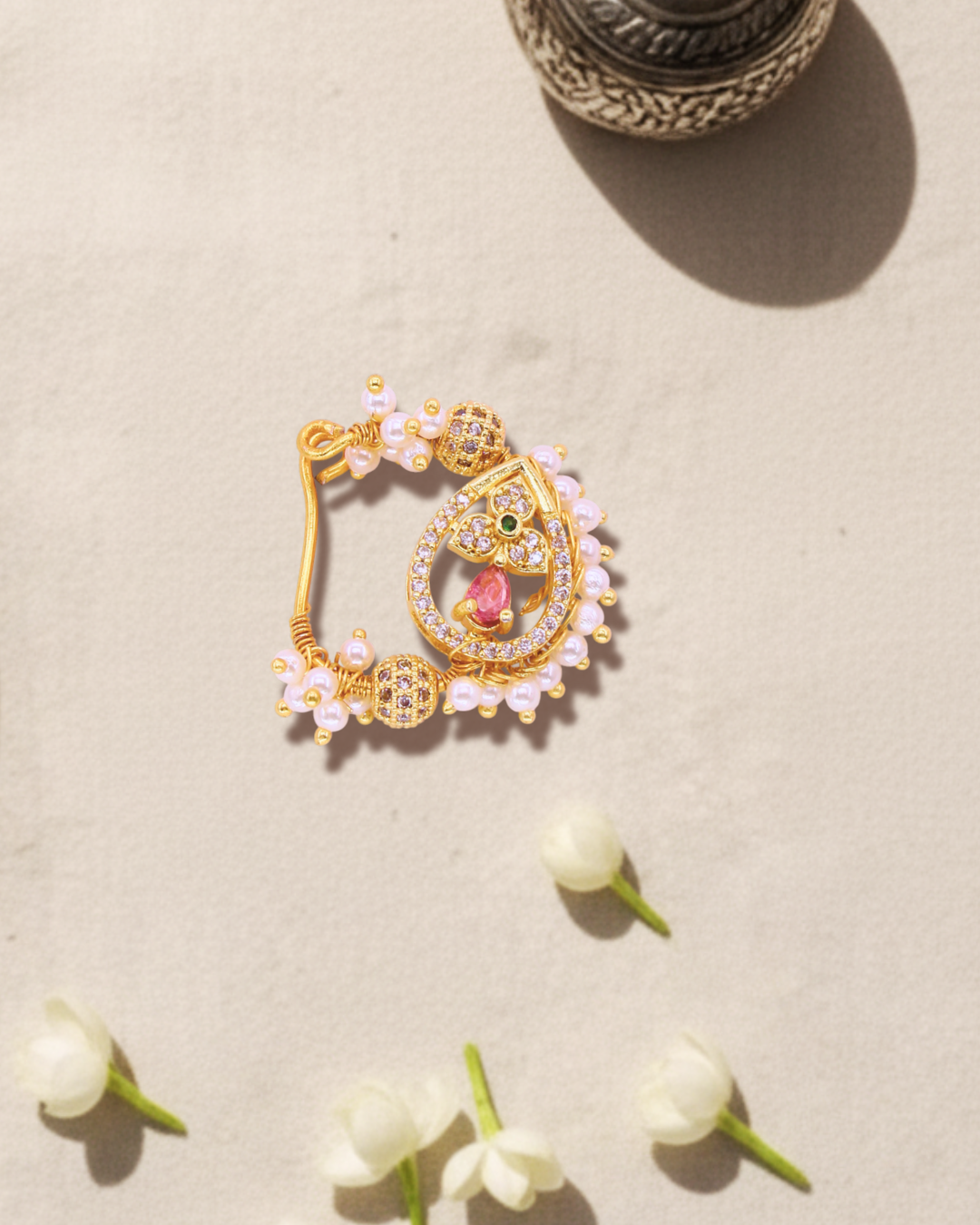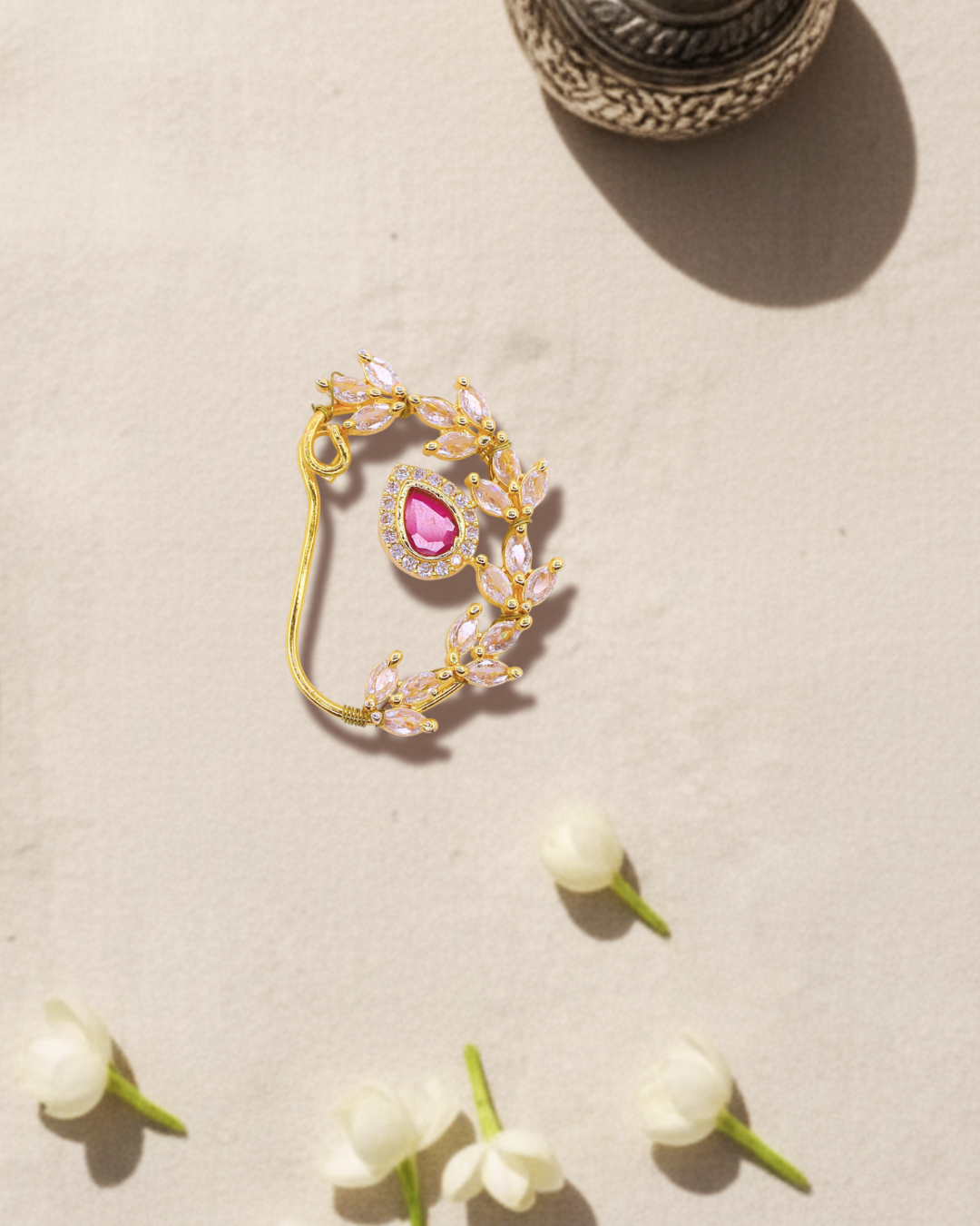 Sonchafa Jewellers offers this beautiful pink stone nath for women or girl who love to wear traditional accessory