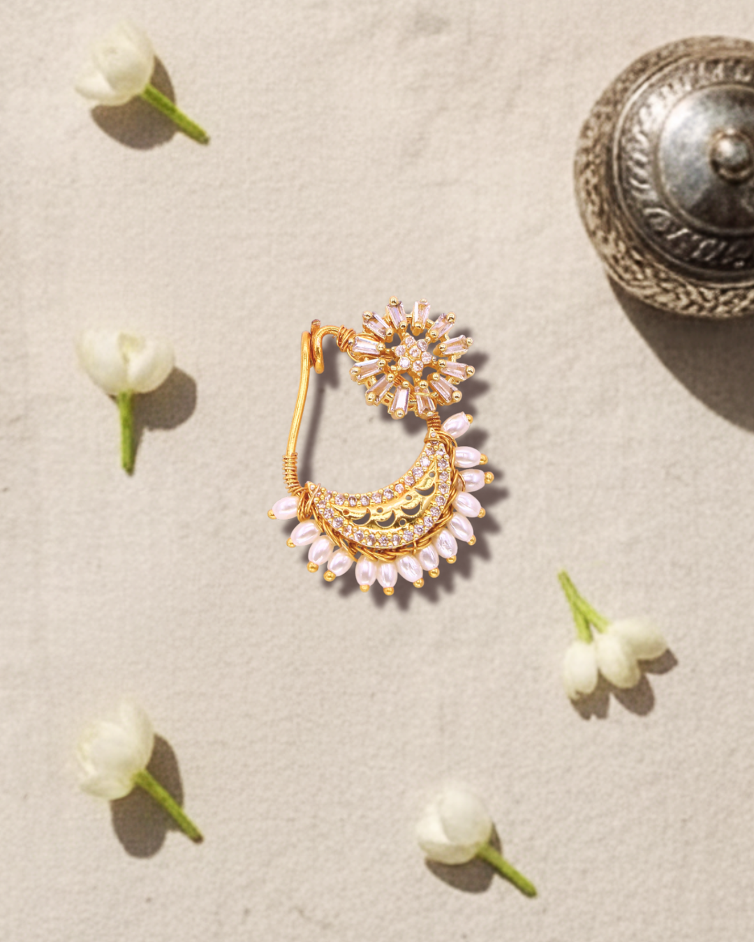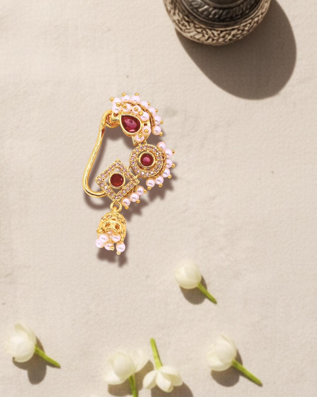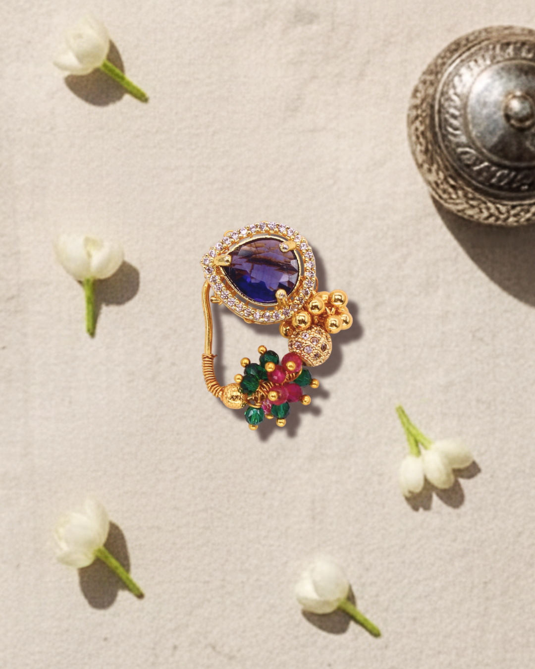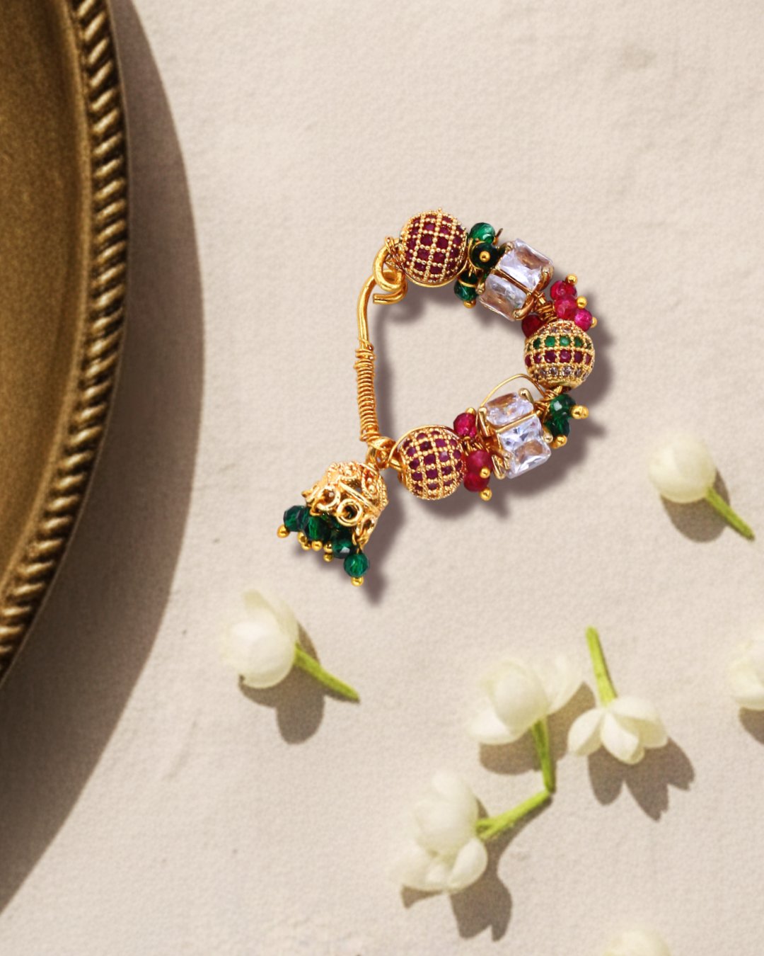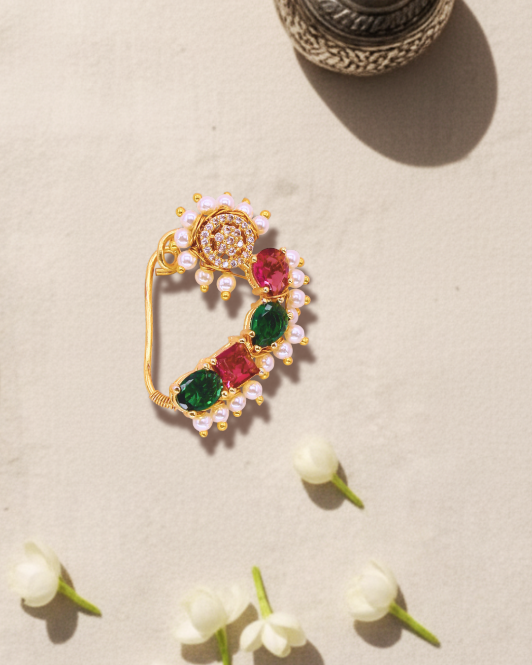 Sonchafa Jewellers offers this beautiful pink stone nath for women or girl who love to wear traditional accessory