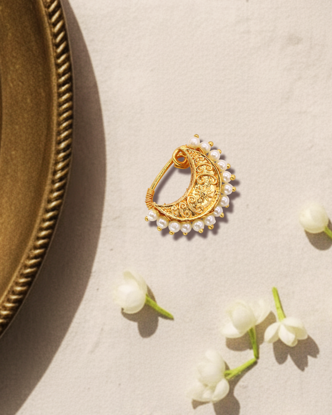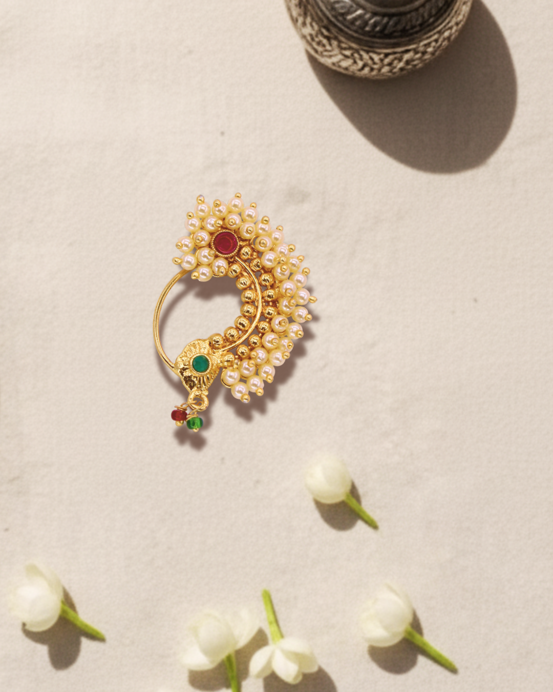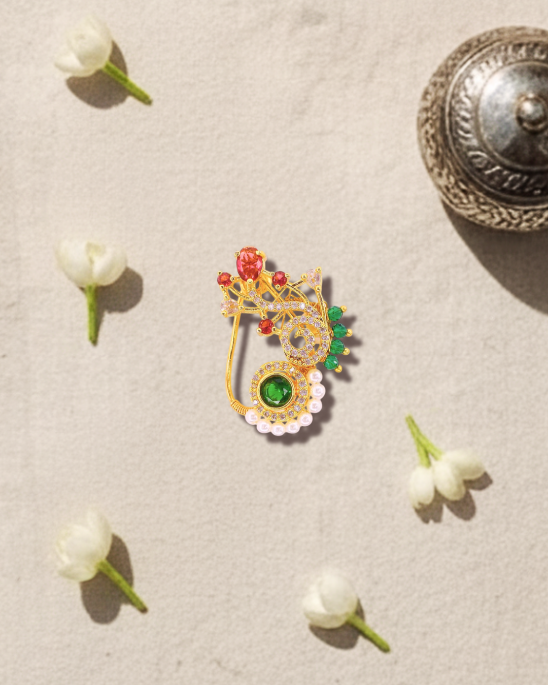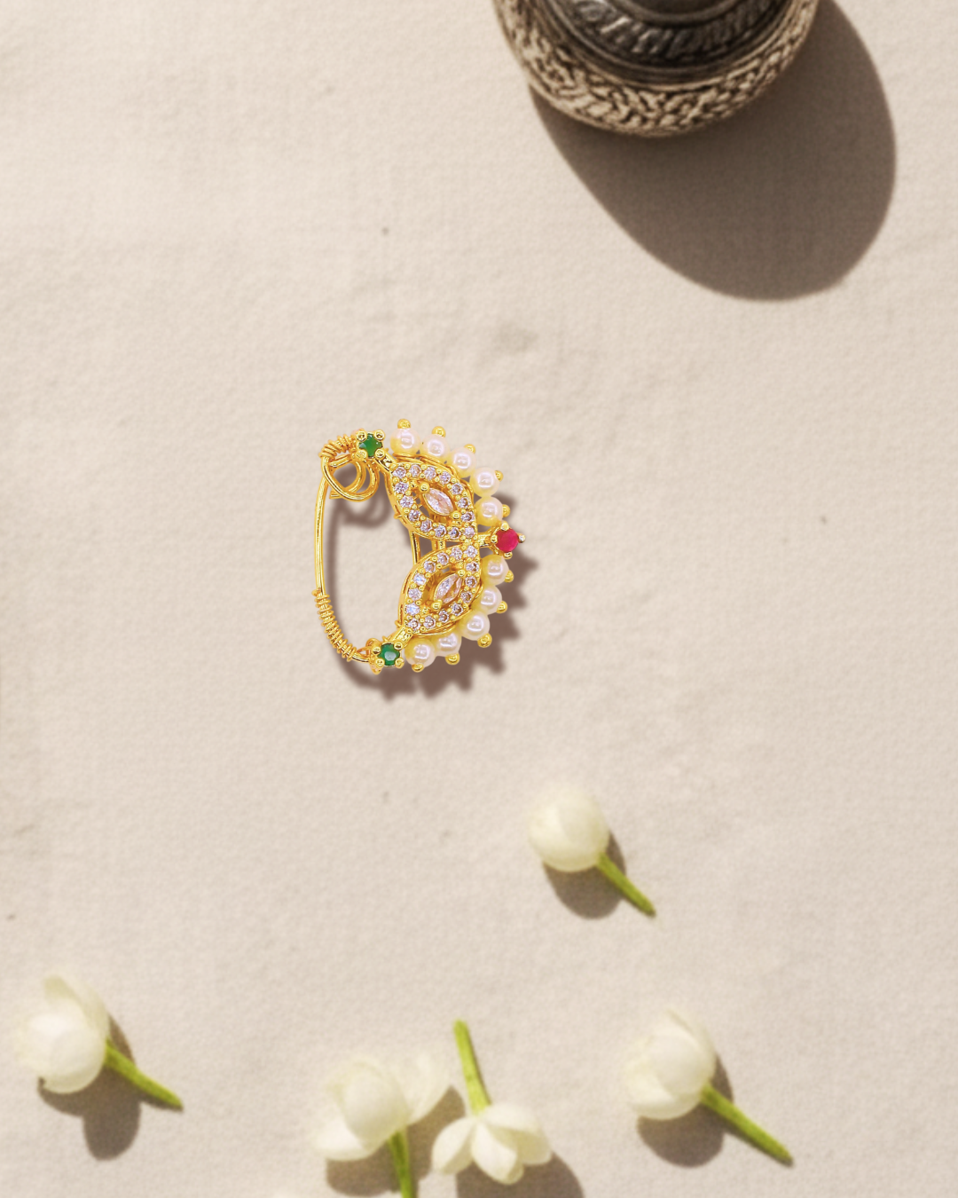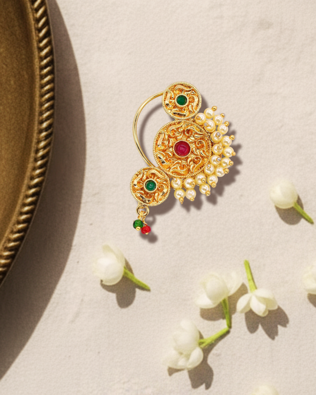Sonchafa Jewellers offers this beautiful pink stone nath for women or girl who love to wear traditional accessory