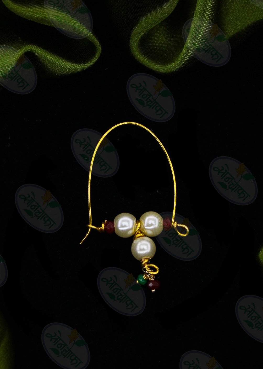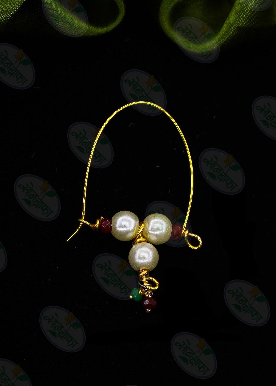 Decorate your Gajanana with this pearl beads big bali by Sonchafa Jewellery. This Ganpati Bali is woven with pearl beads in tar. It is made from superior quality golden finish metal. It is decorated with dangling beads for more attraction.
