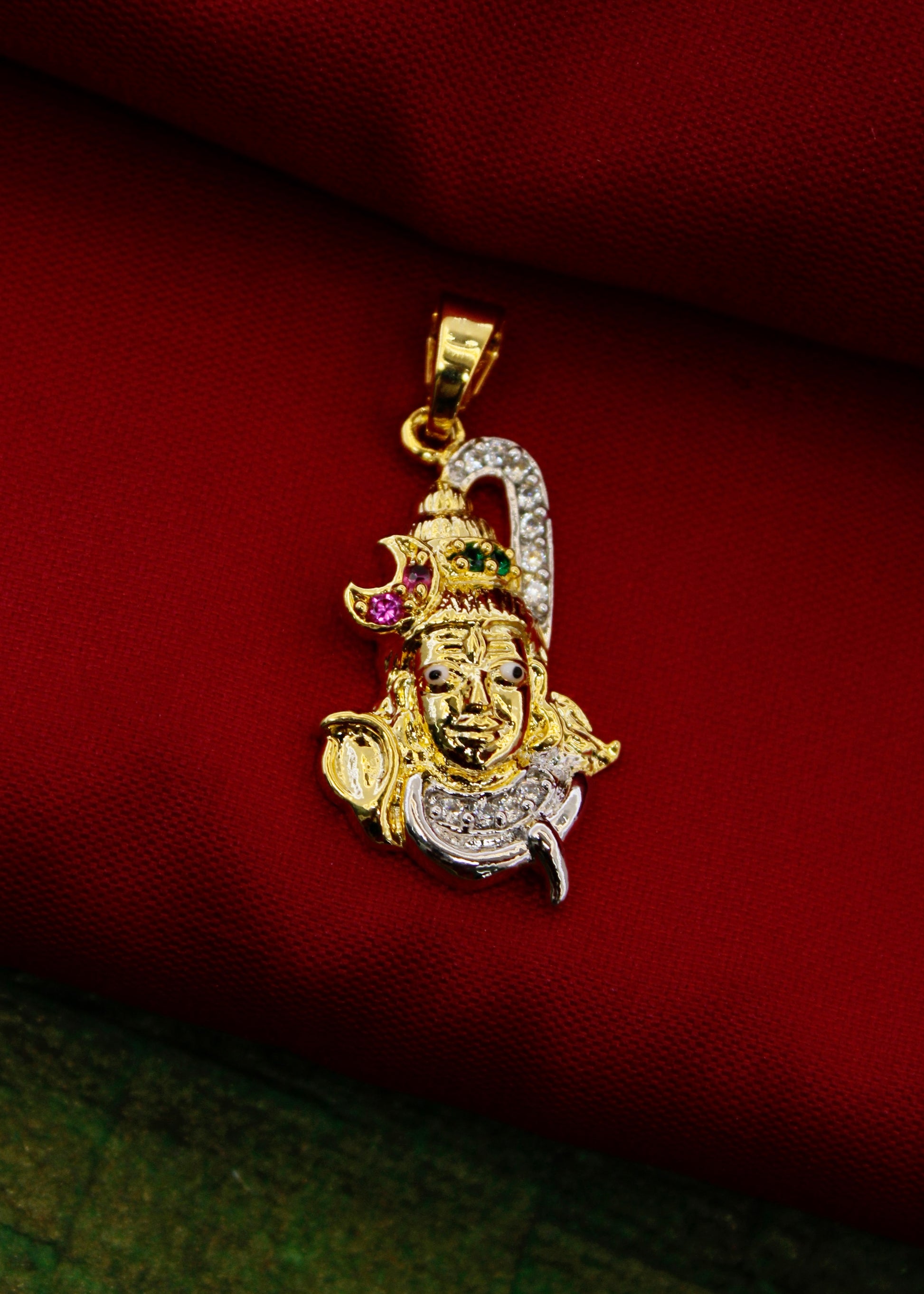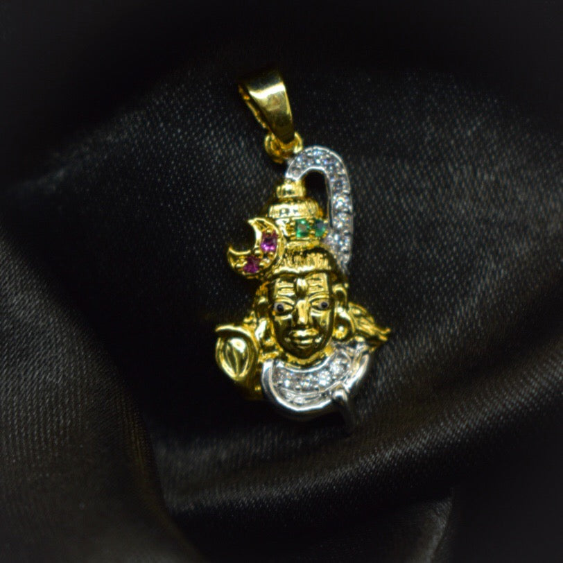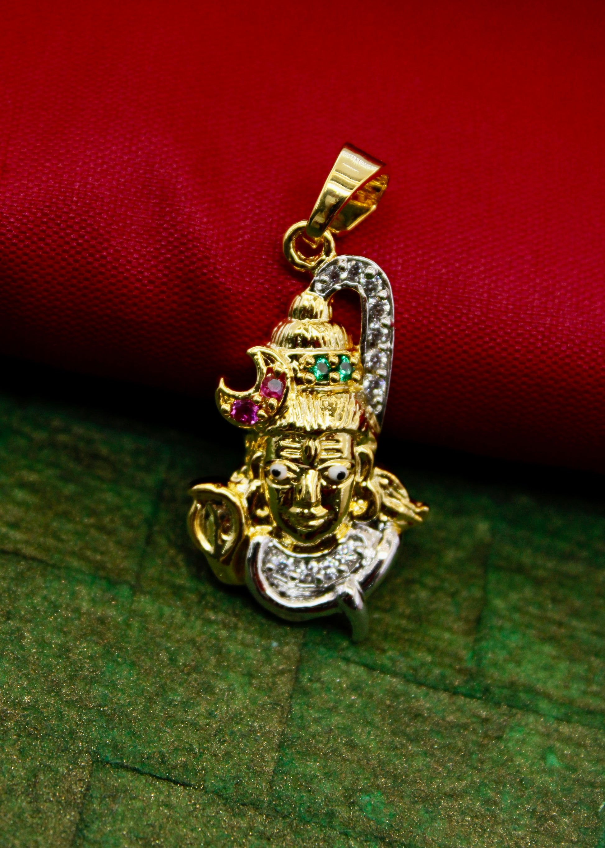 Sonchafa Jewellery presents this golden silver finish Lord Shiva pendant, which will add a lot of class and elegance to your overall appearance. This pendant will go well with ethnic outfits & fetch you lots of compliments.