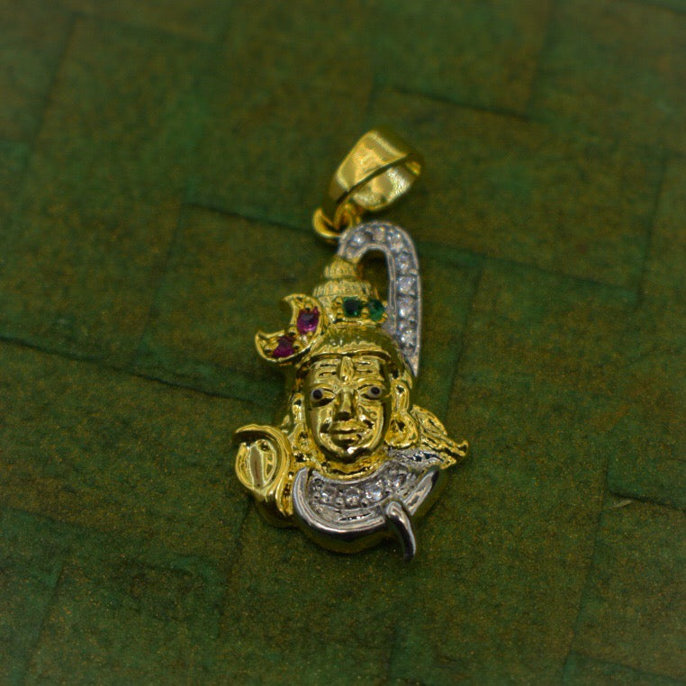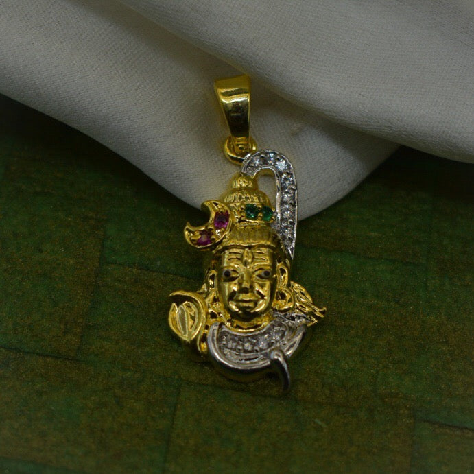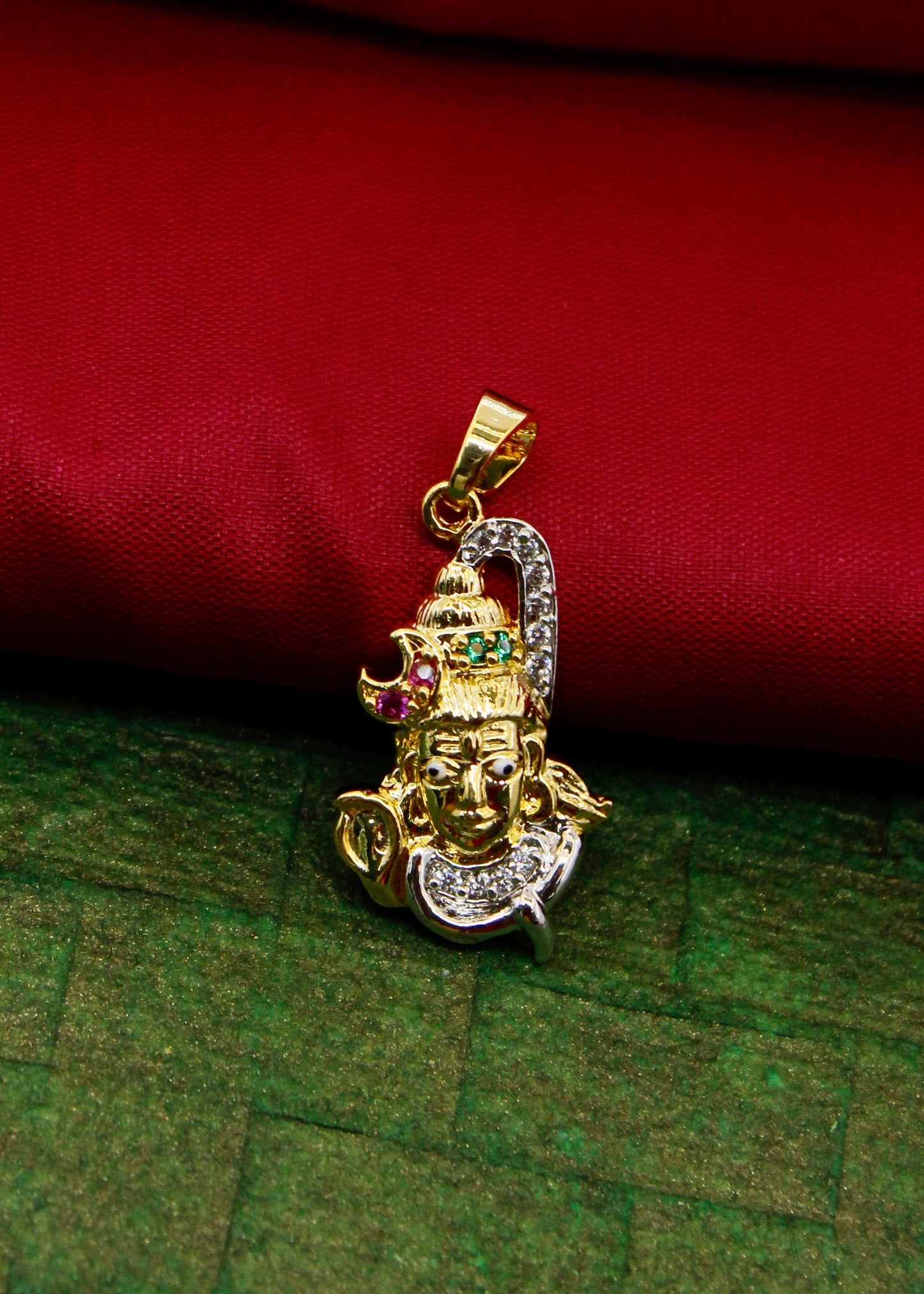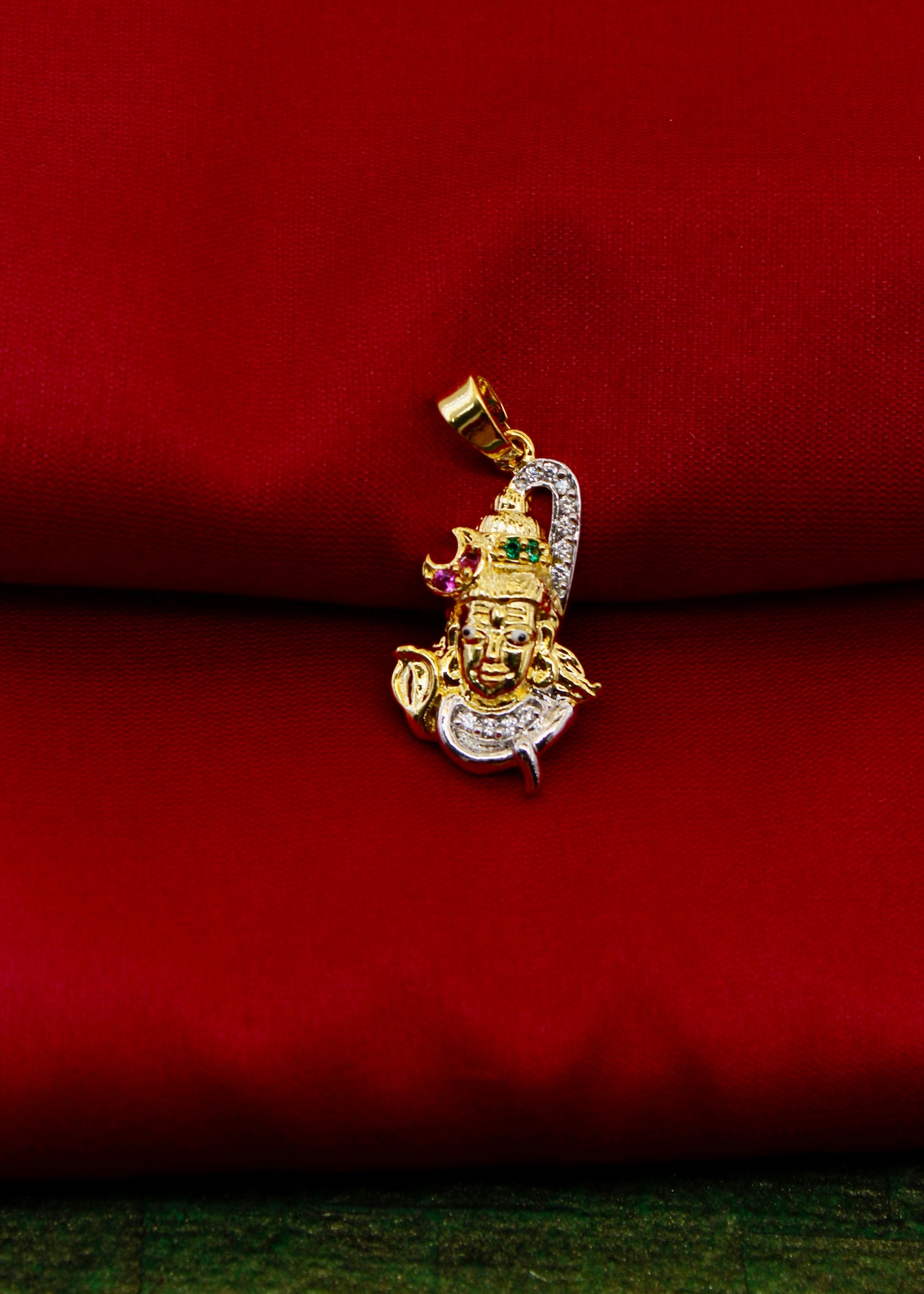 Sonchafa Jewellery presents this golden silver finish Lord Shiva pendant, which will add a lot of class and elegance to your overall appearance. This pendant will go well with ethnic outfits & fetch you lots of compliments.