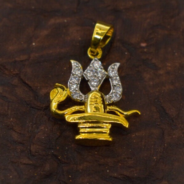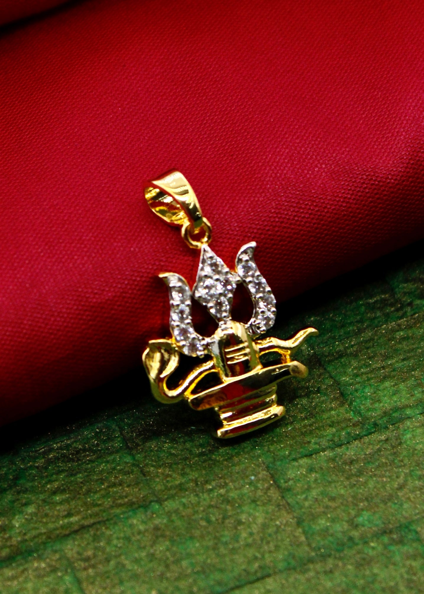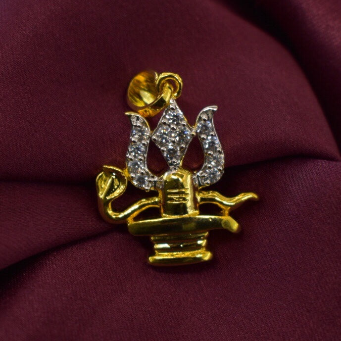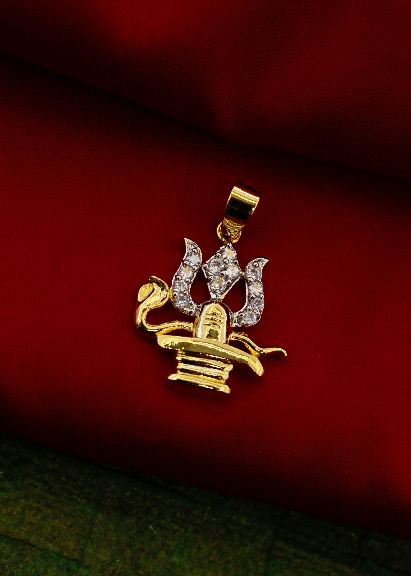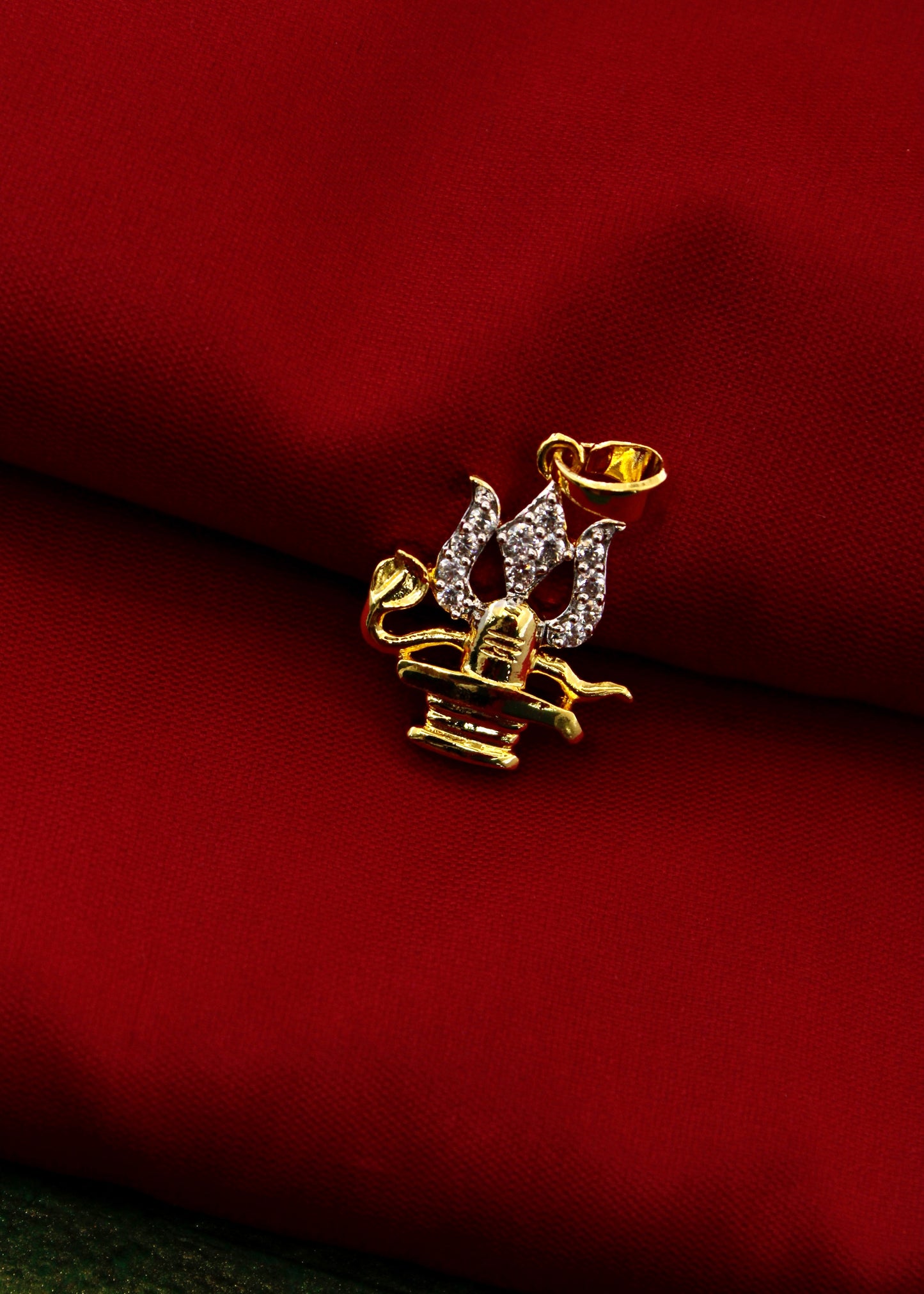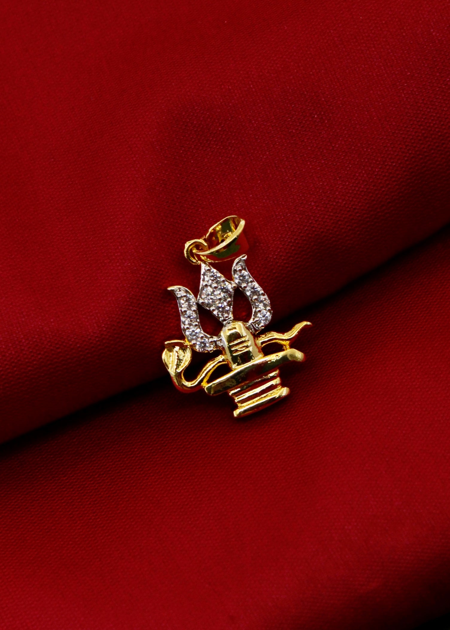 Look absolutely gorgeous by clubbing this gold silver finish beautiful pendant with your trendy look. It is styled with Shiva linga along with studded sparkling white stone Trishul and made from golden finish metal. It is easy to use and comfortable to hold all day long.