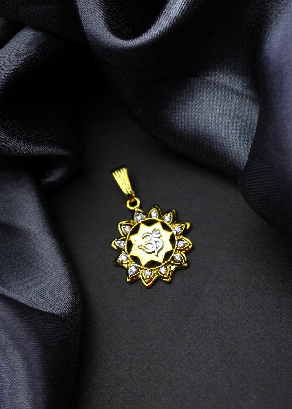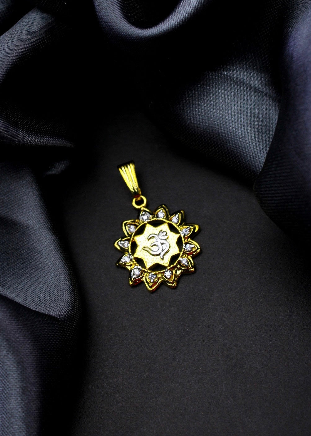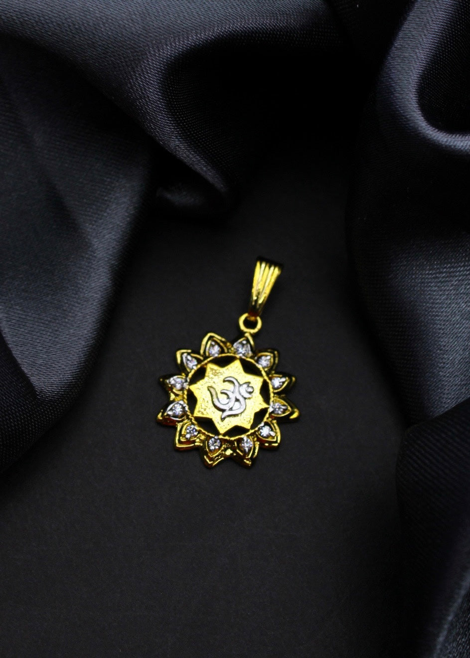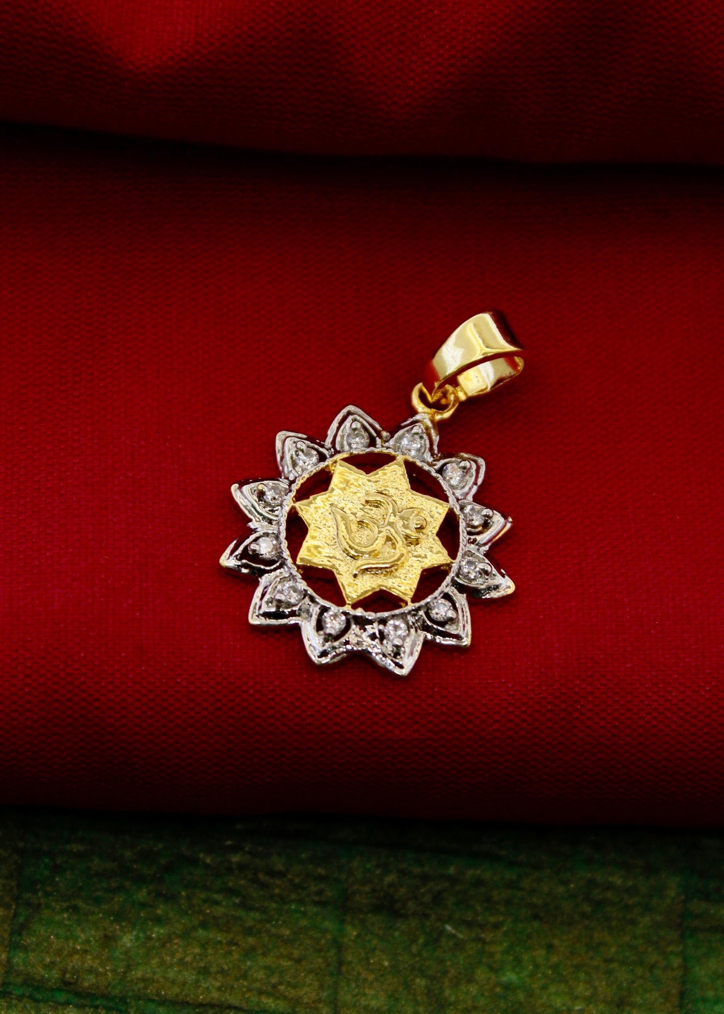 Buy something Star design for yourself in the form of this gold silver finish adorable pendant from Sonchafa Jewellery. It is styled with studded white Dia diamonds along with Om and made from golden finish metal.