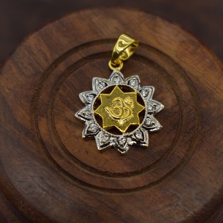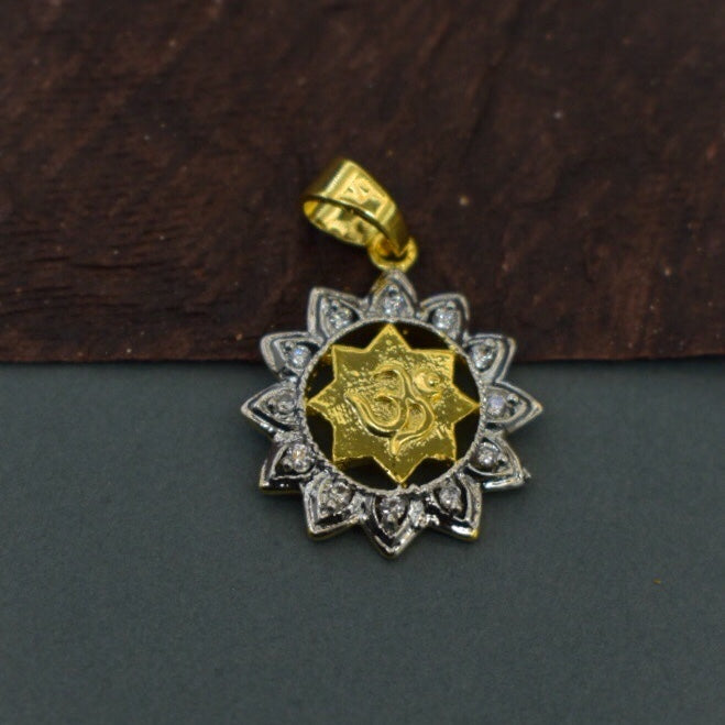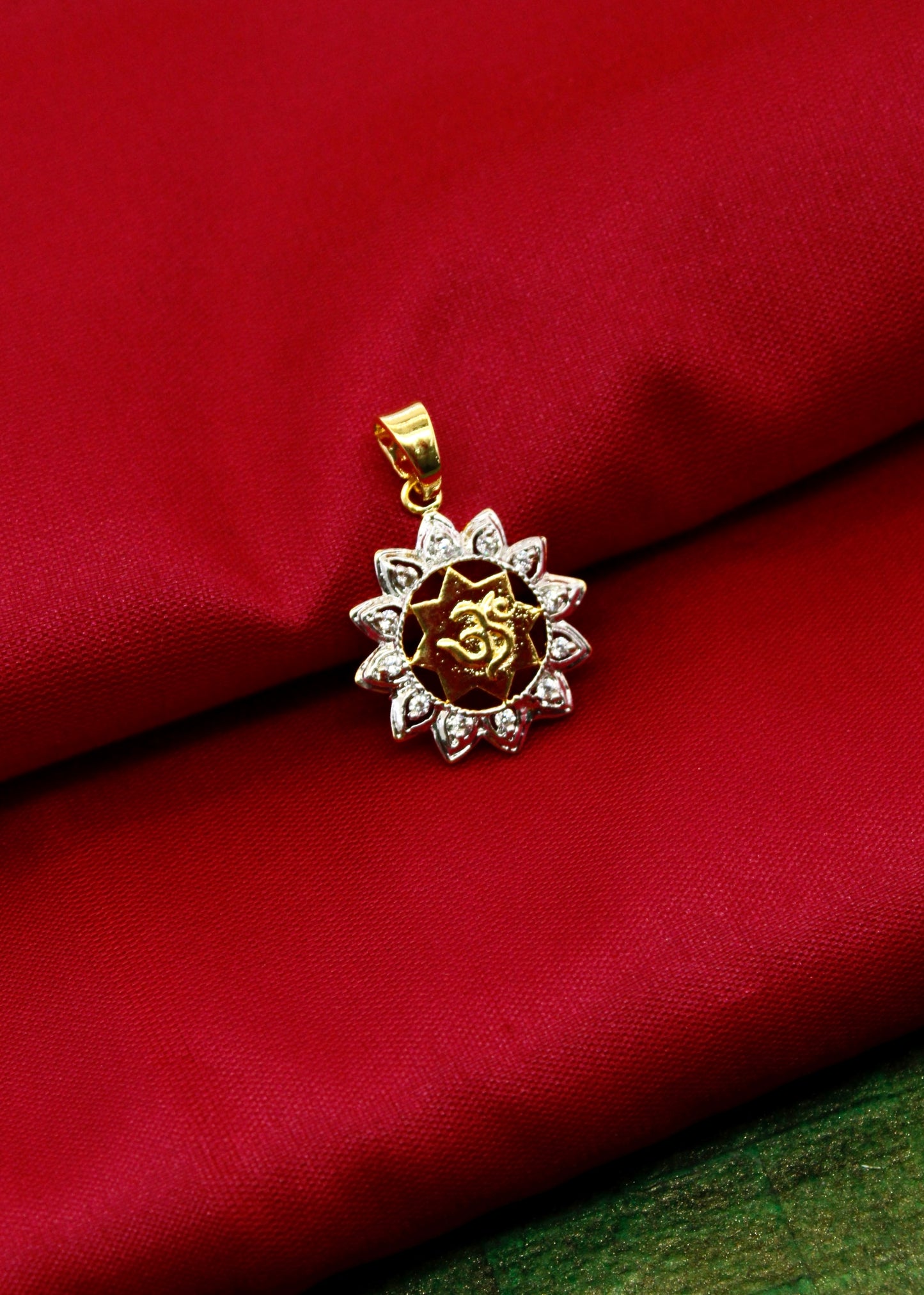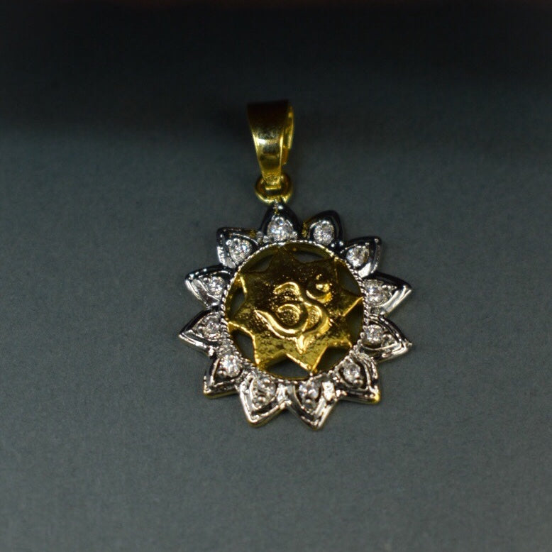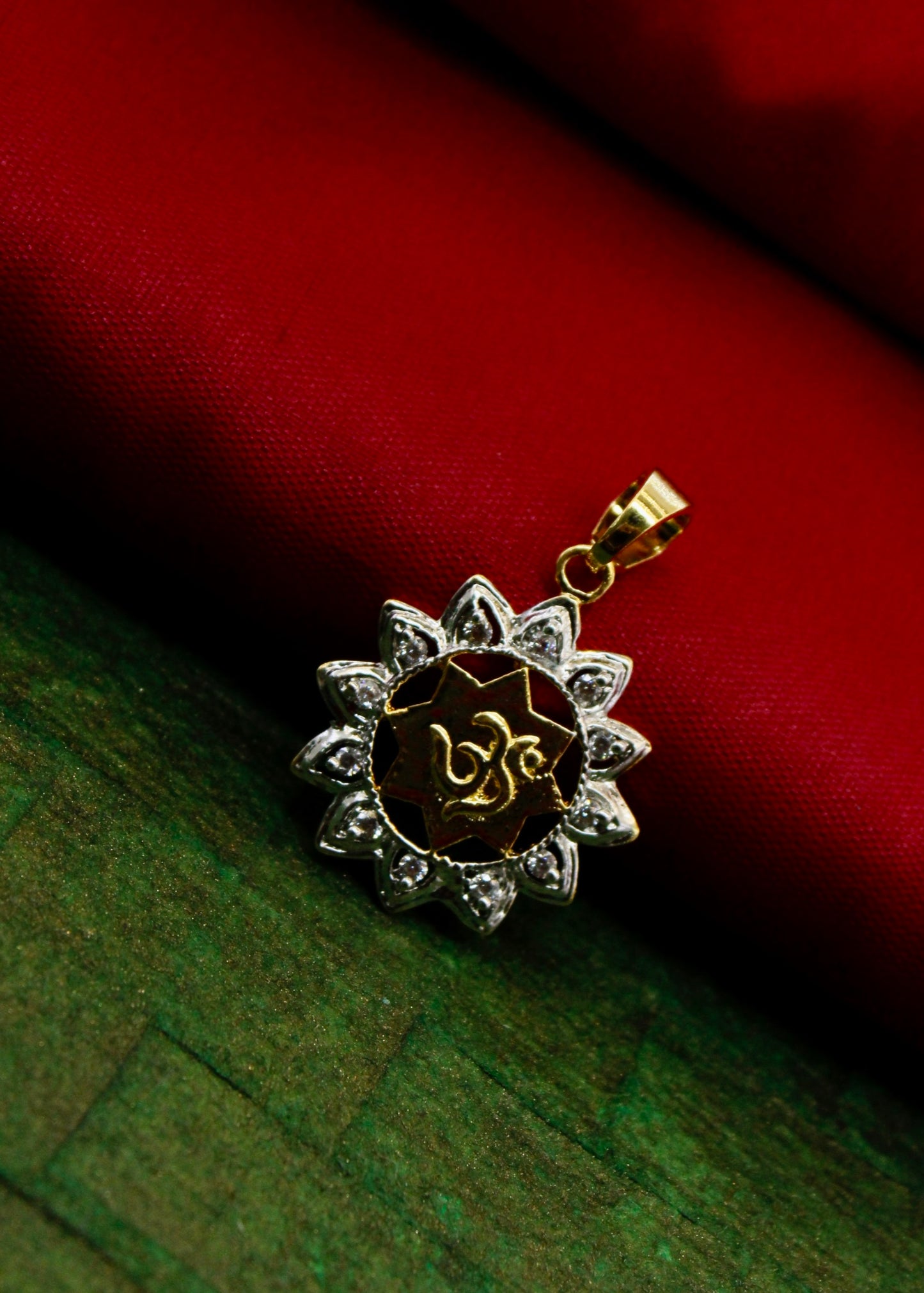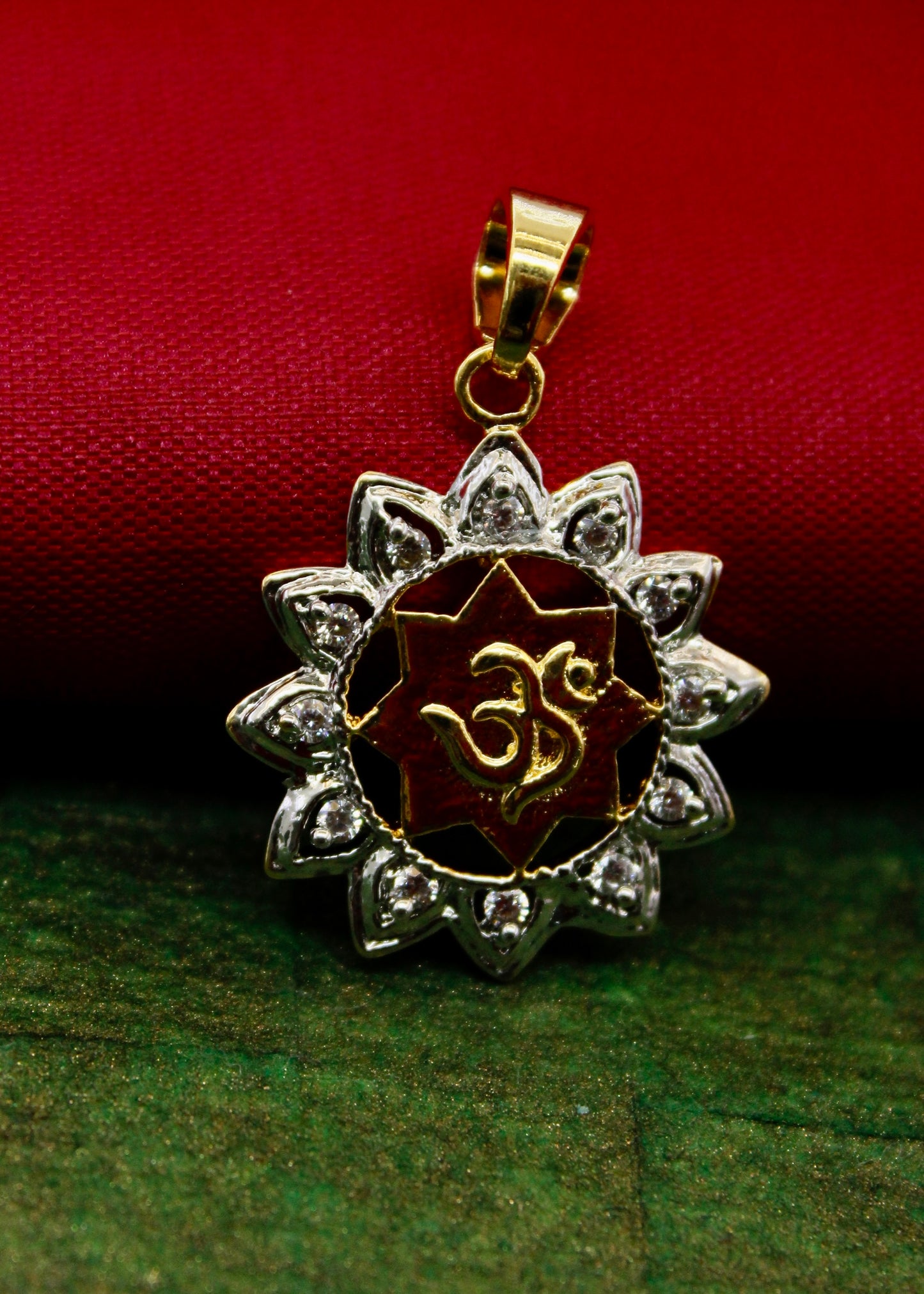 Buy something Star design for yourself in the form of this gold silver finish adorable pendant from Sonchafa Jewellery. It is styled with studded white Dia diamonds along with Om and made from golden finish metal.