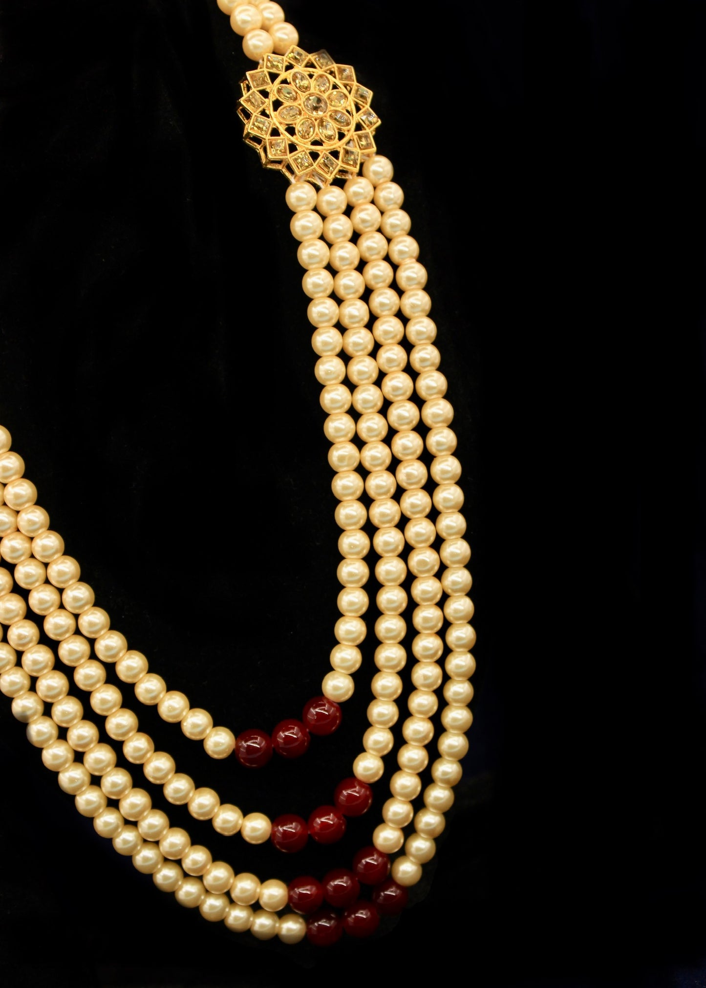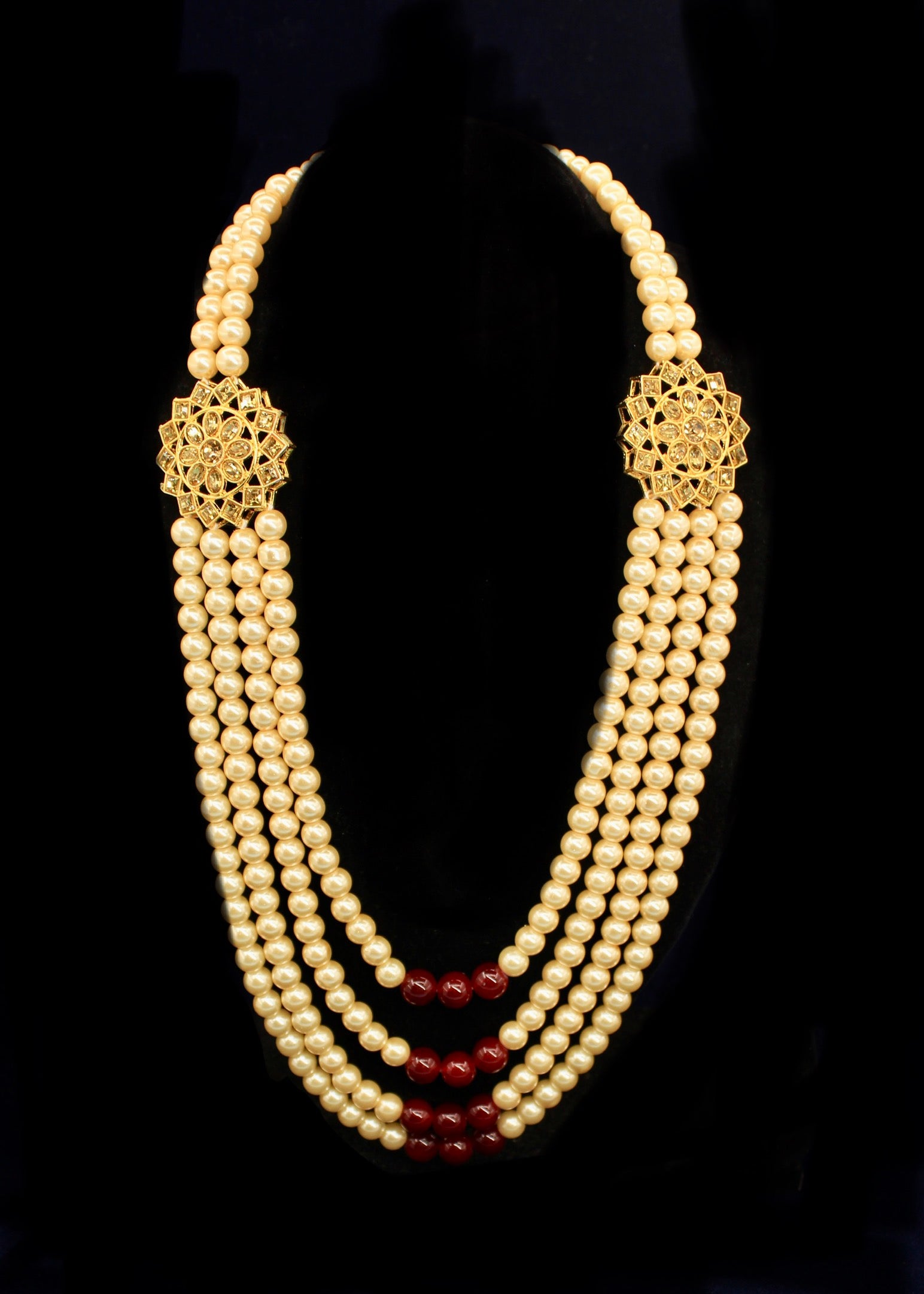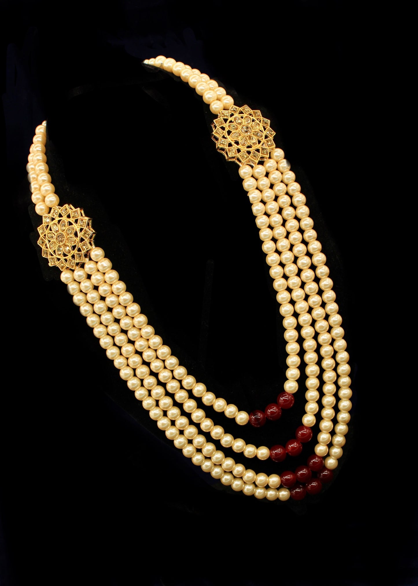 STONE : Pearl, Maroon Beads & Golden Colour Stone
