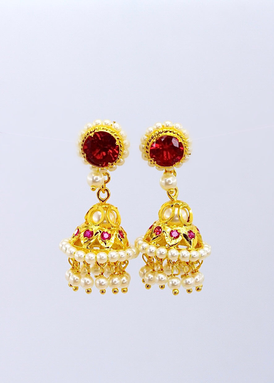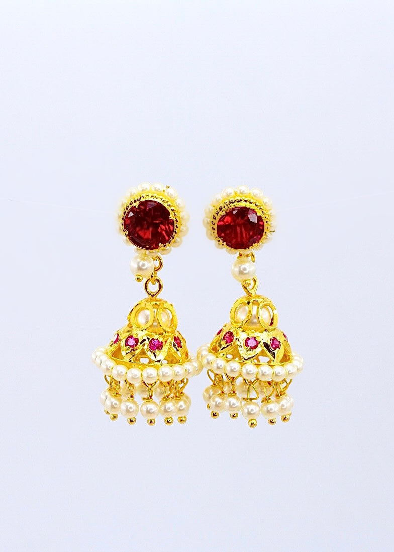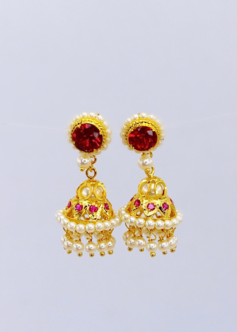 Team this pair of kemp stone designer pearl beads beautiful earrings with your traditional costume and get that perfect look. They are embedded with pearl and made from golden finish metal.