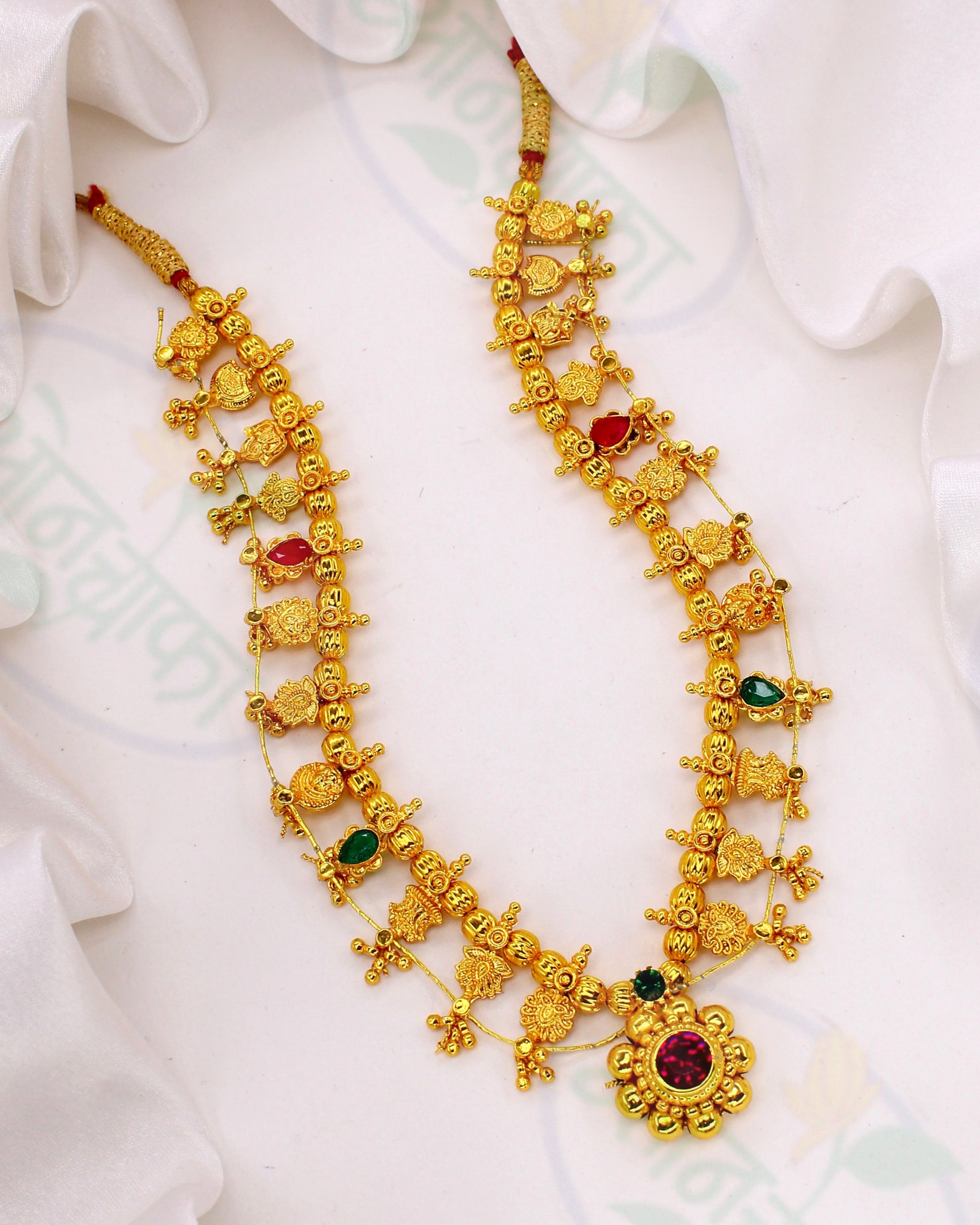 Fashionable golden beads beautiful Plain thushi for women from Sonchafa Jewellery. It is crafted from golden finish metal and it will give you attractive look.