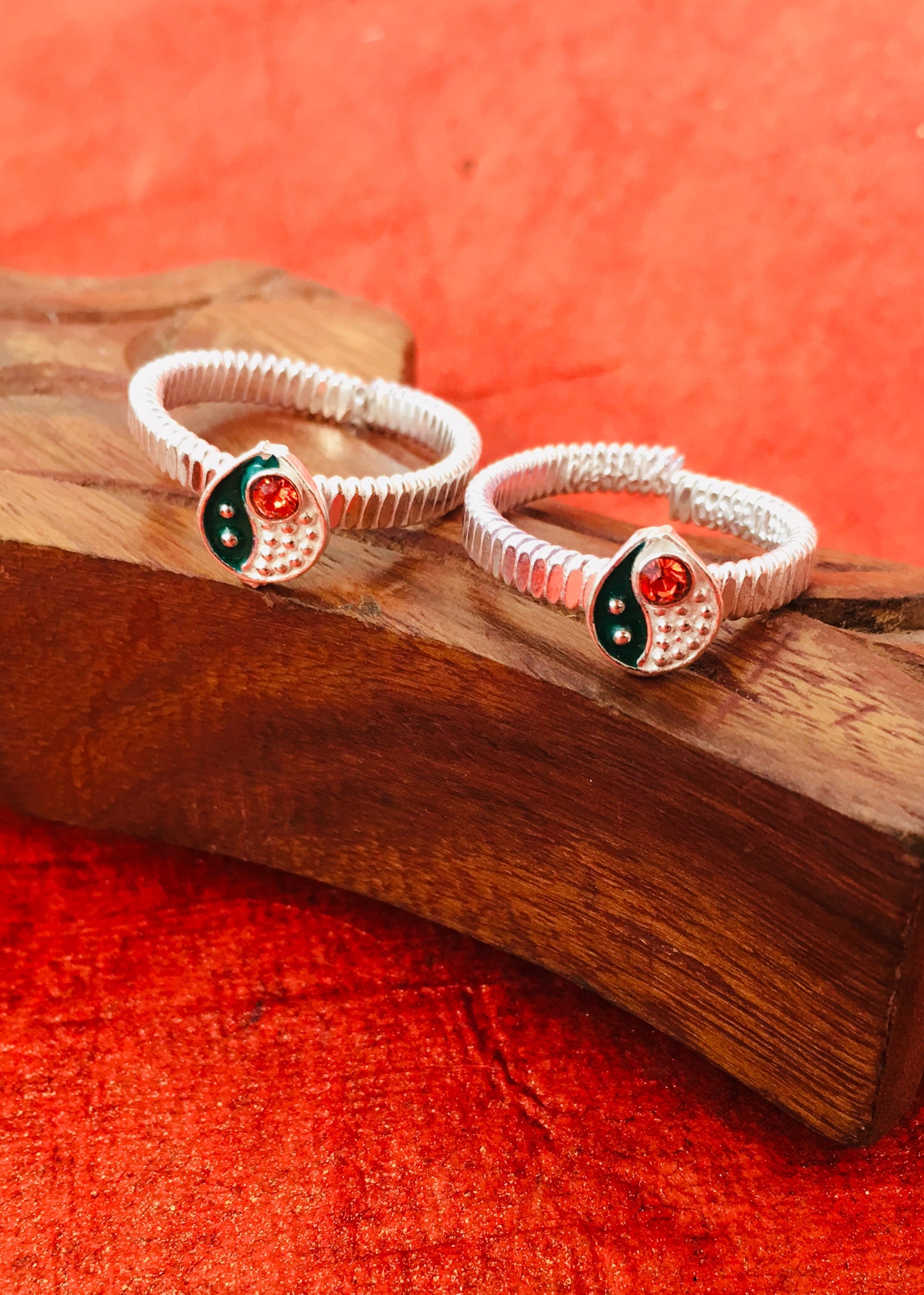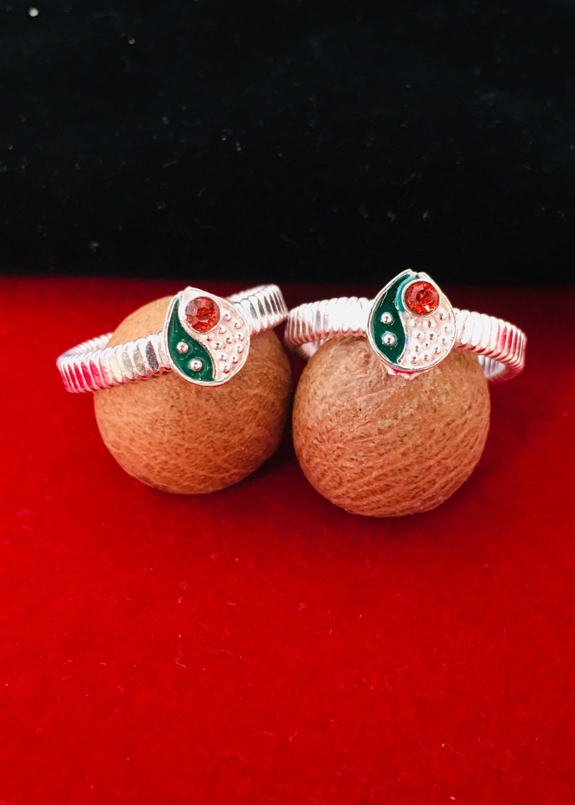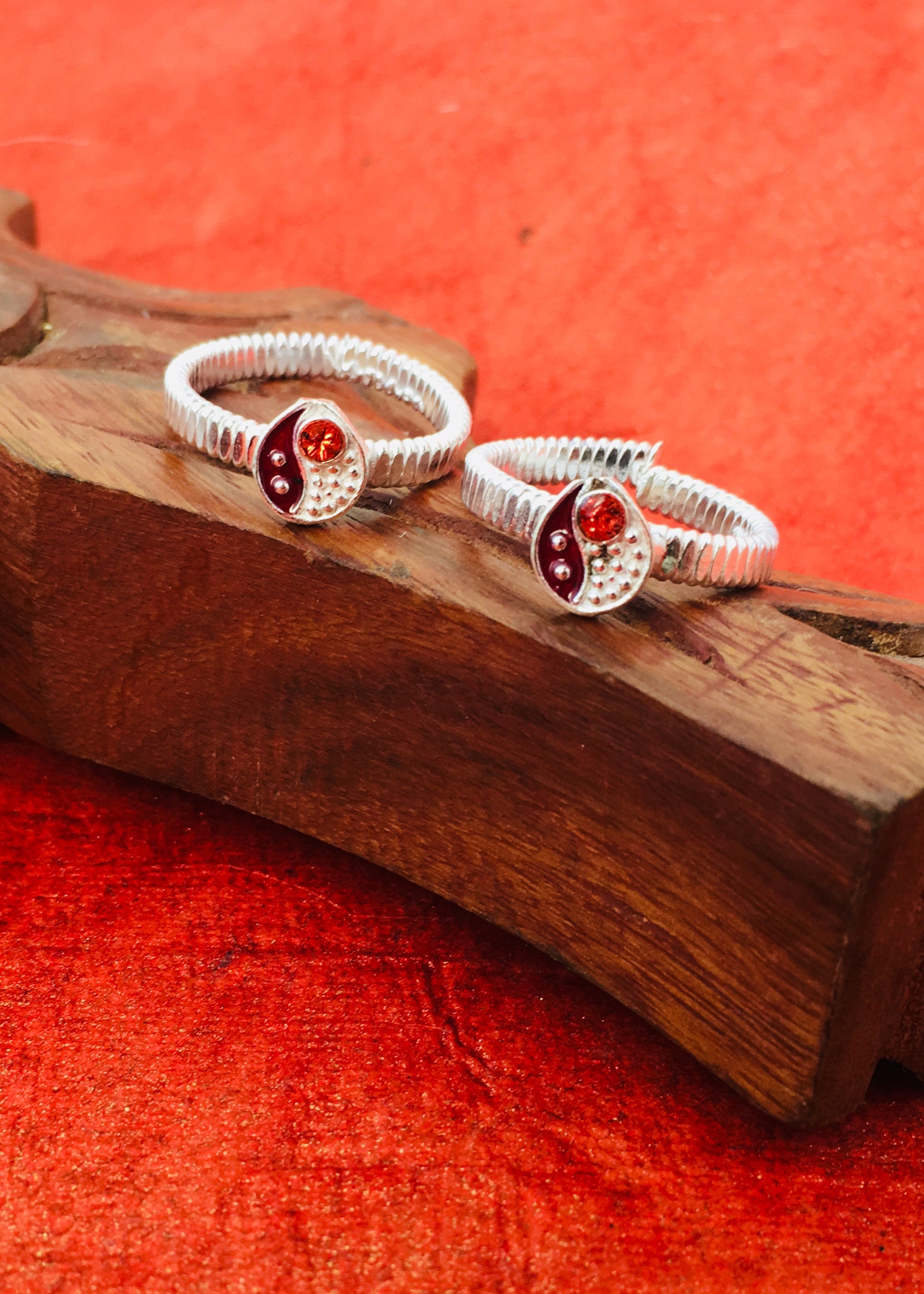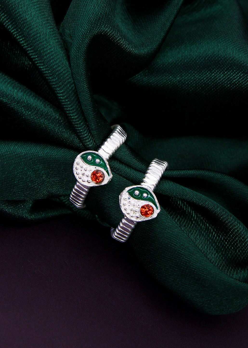 Trendy designed this pair of silver drop shape appealing pair of jodavi decked with orange stone is best pick for modern married women. They are fashioned from Silver metal and ensure high durability.