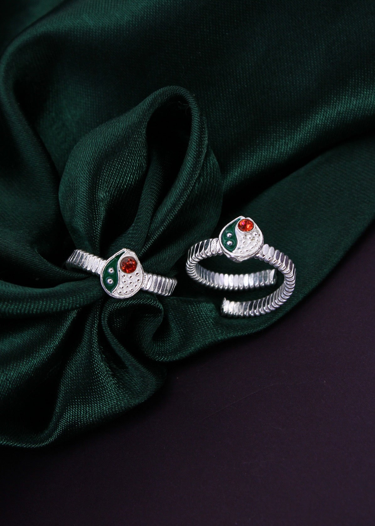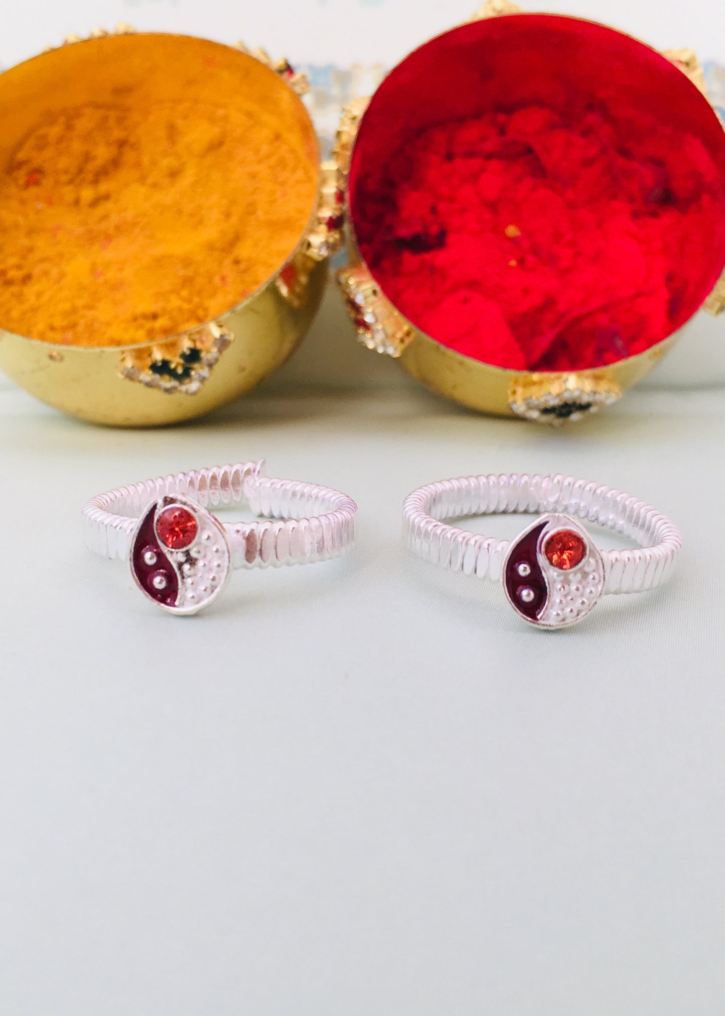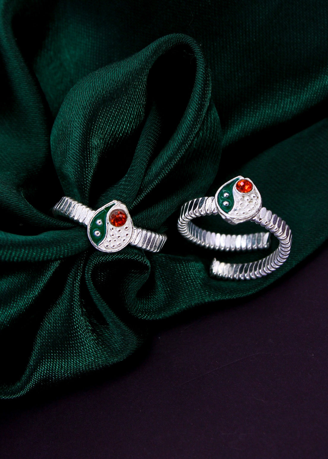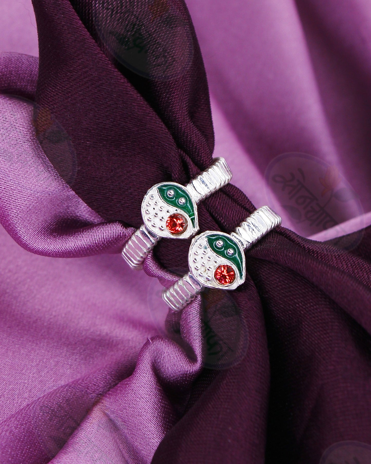 Trendy designed this pair of silver drop shape appealing pair of jodavi decked with orange stone is best pick for modern married women. They are fashioned from Silver metal and ensure high durability.