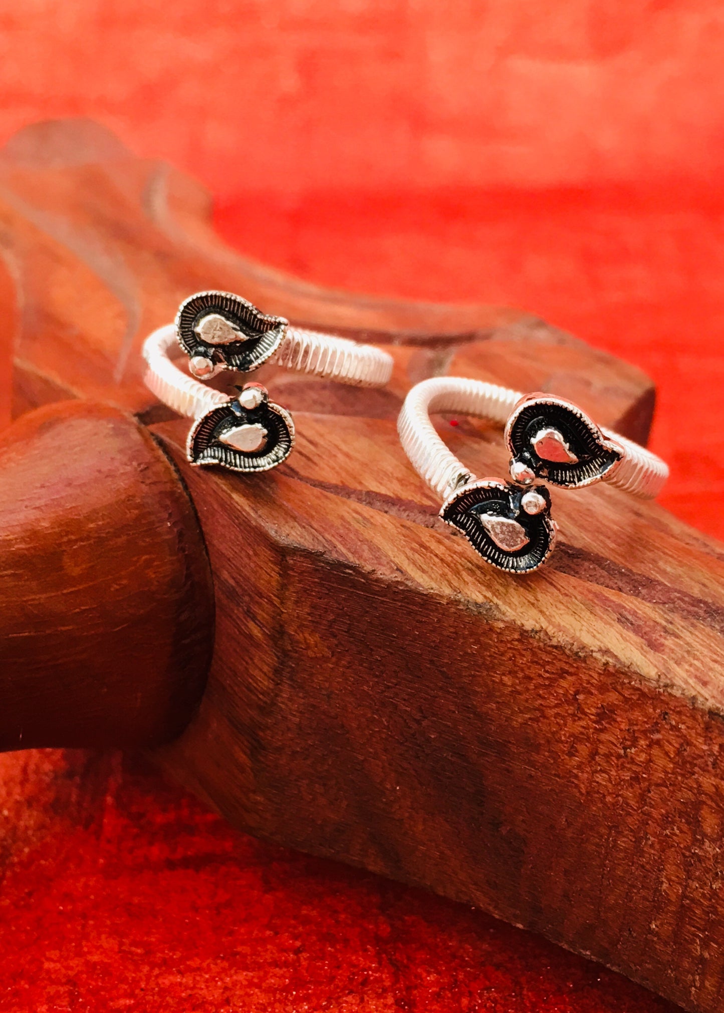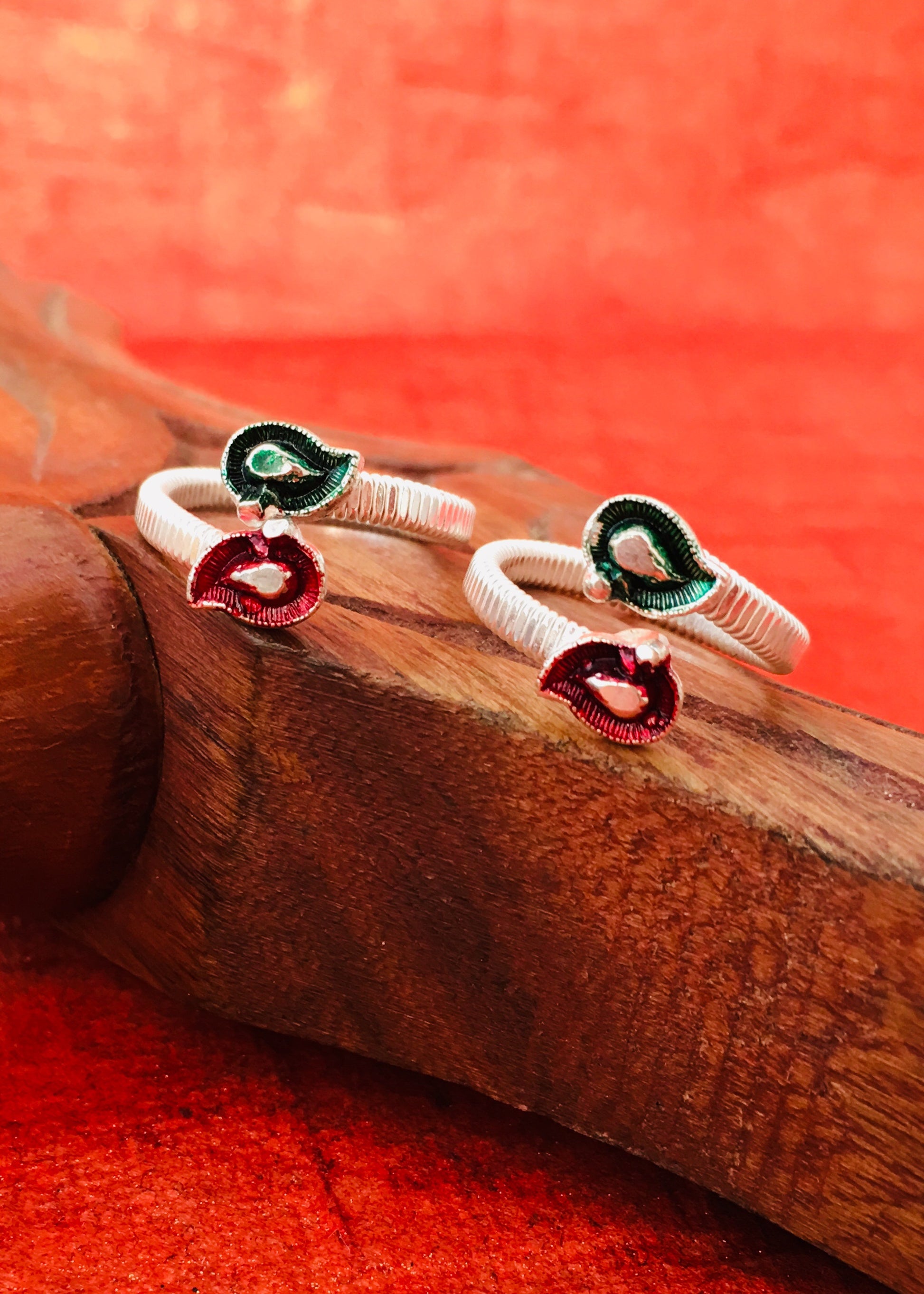 Kuyri shape designer Silver jodavi from Sonchafa Jewellery your amazingly choice. It is wonderfully crafted with silver metal along with maroon - green, Black colour. These jodavi are fashioned from silver metal and ensure high durability.