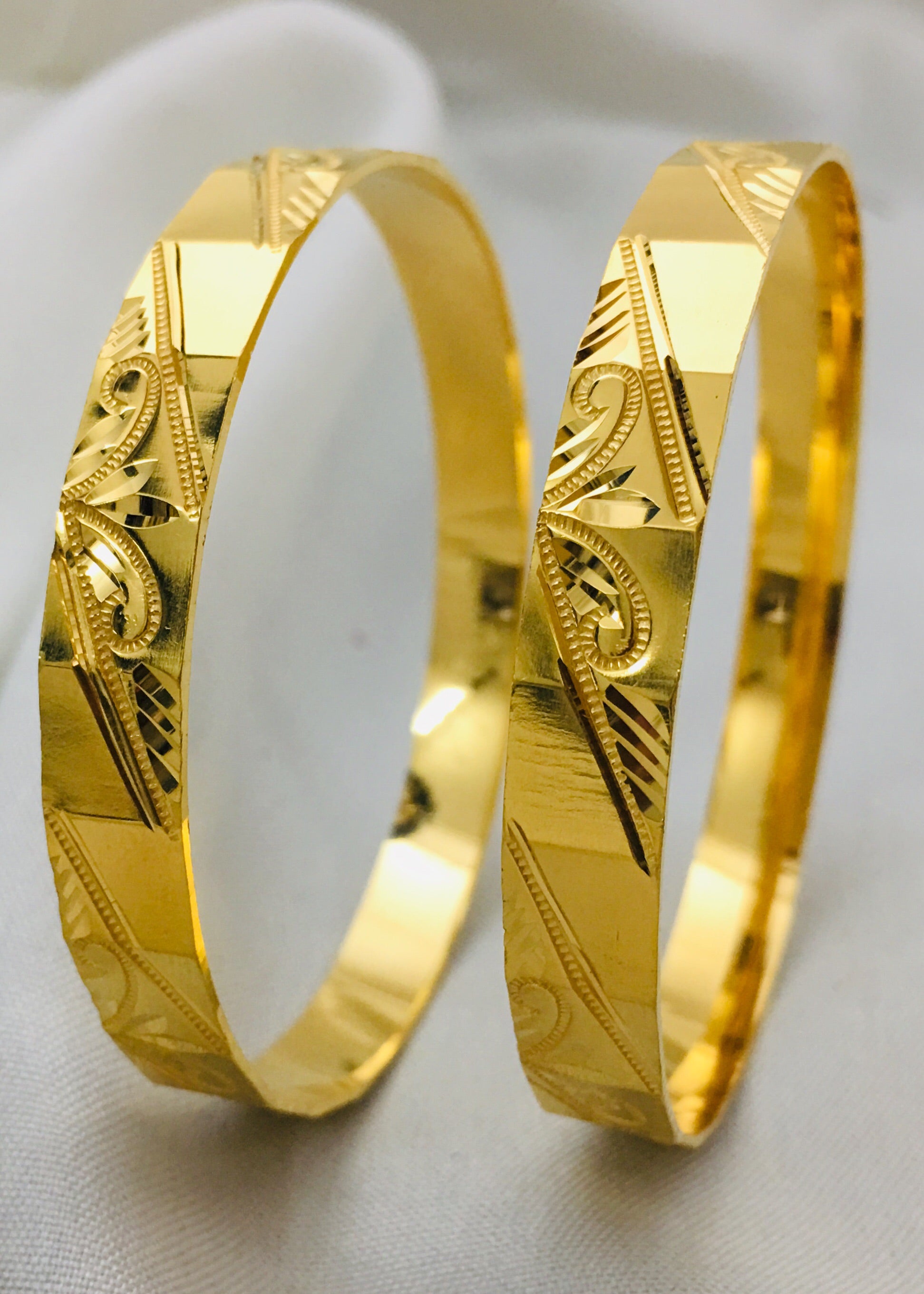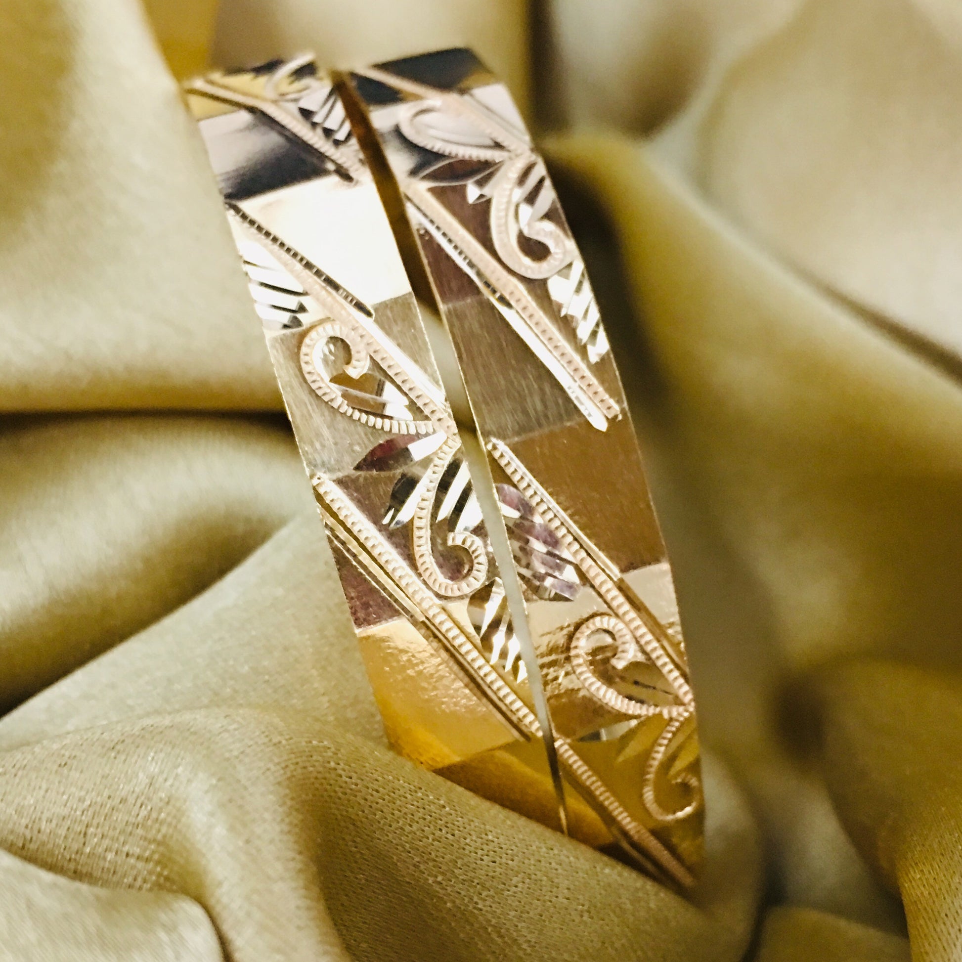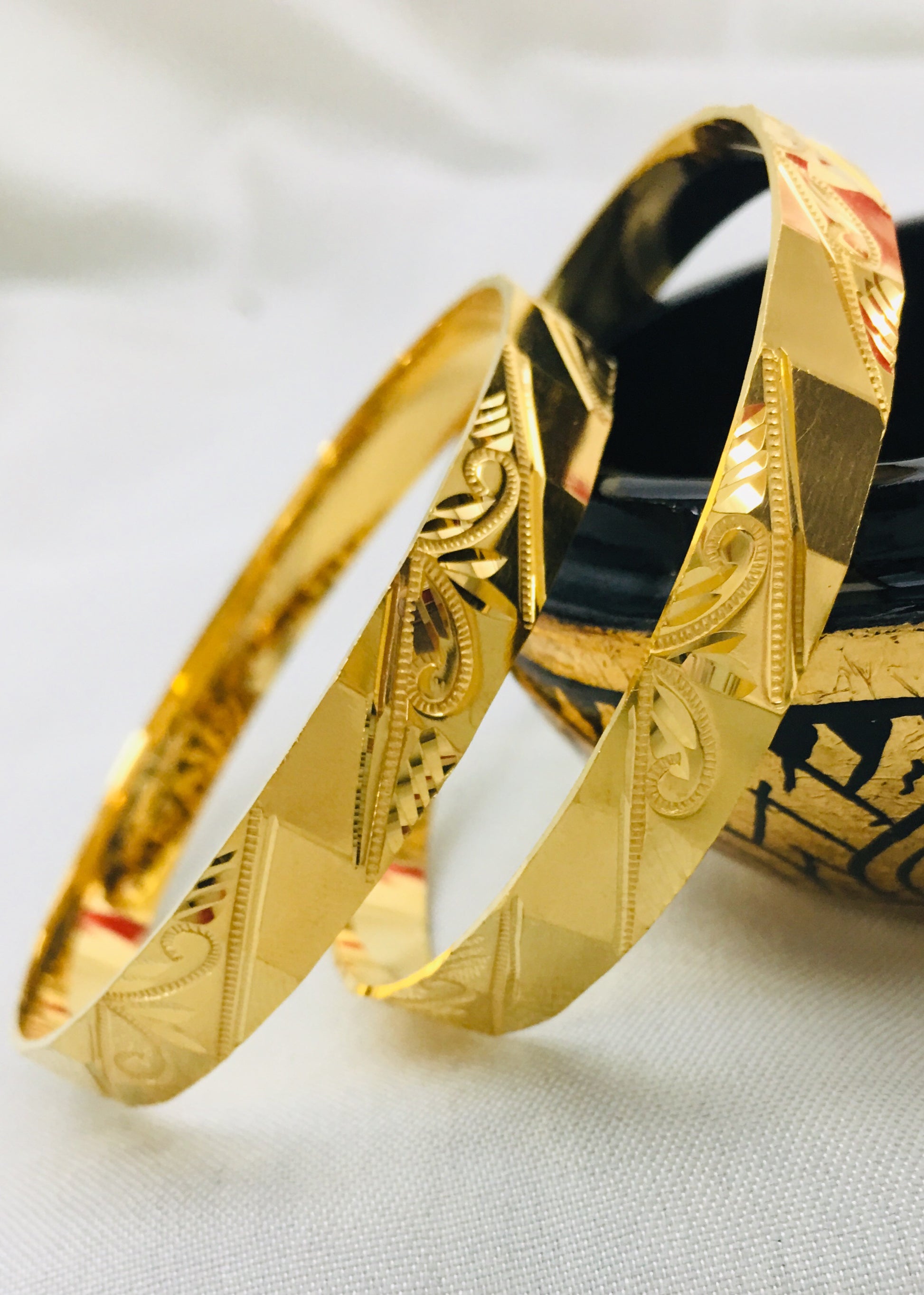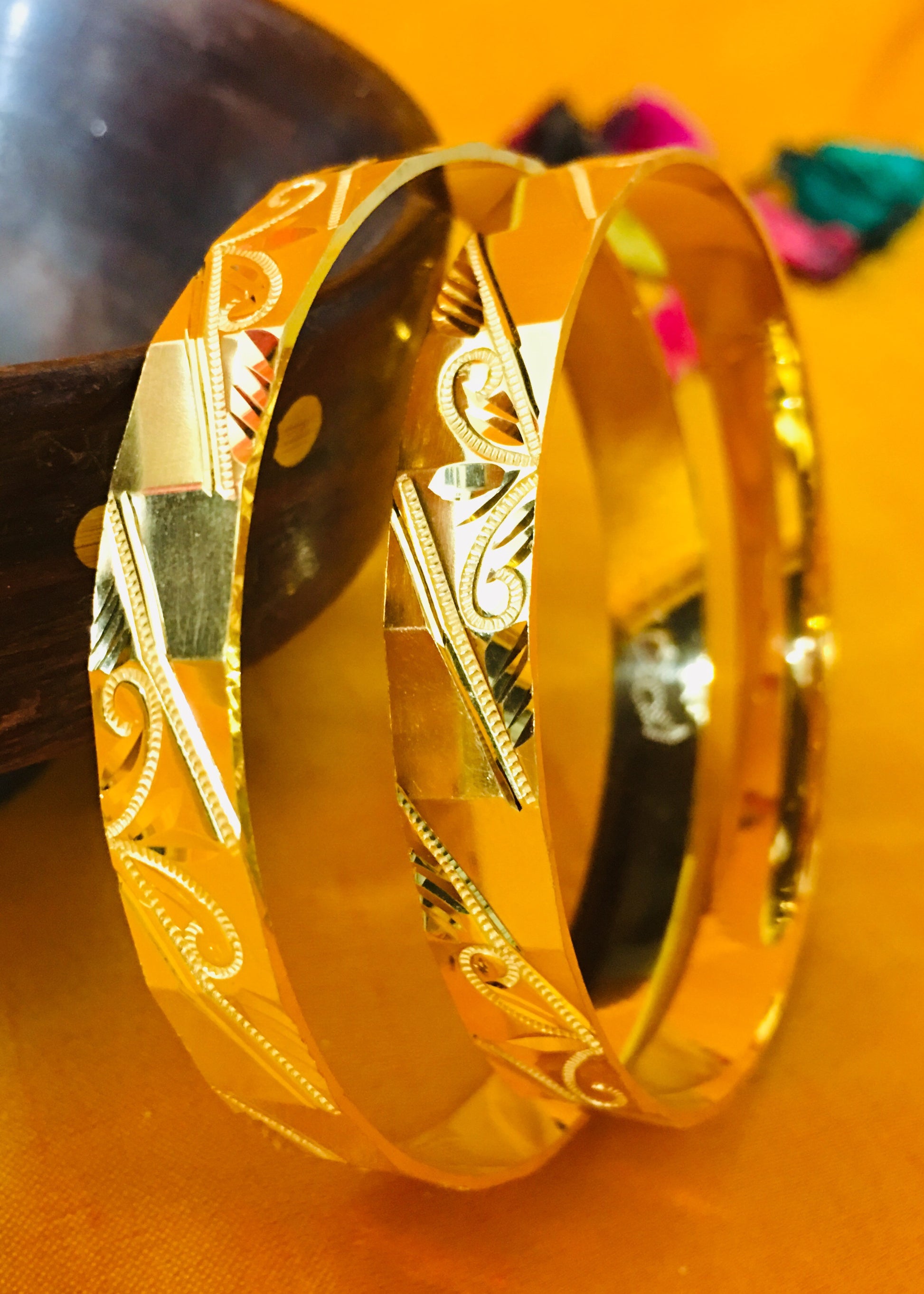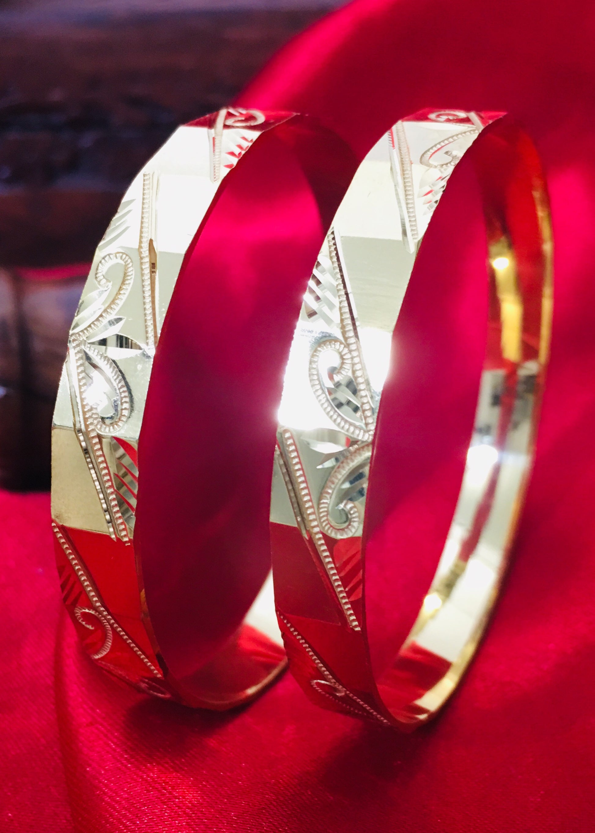 If you wish to get that perfect maharashtrian look then you must pick this pair of pailu patli 1 gram gold plated appealing bangles from Sonchafa Jewellery. They feature wonderful intricate carving design and made from golden finish metal.
